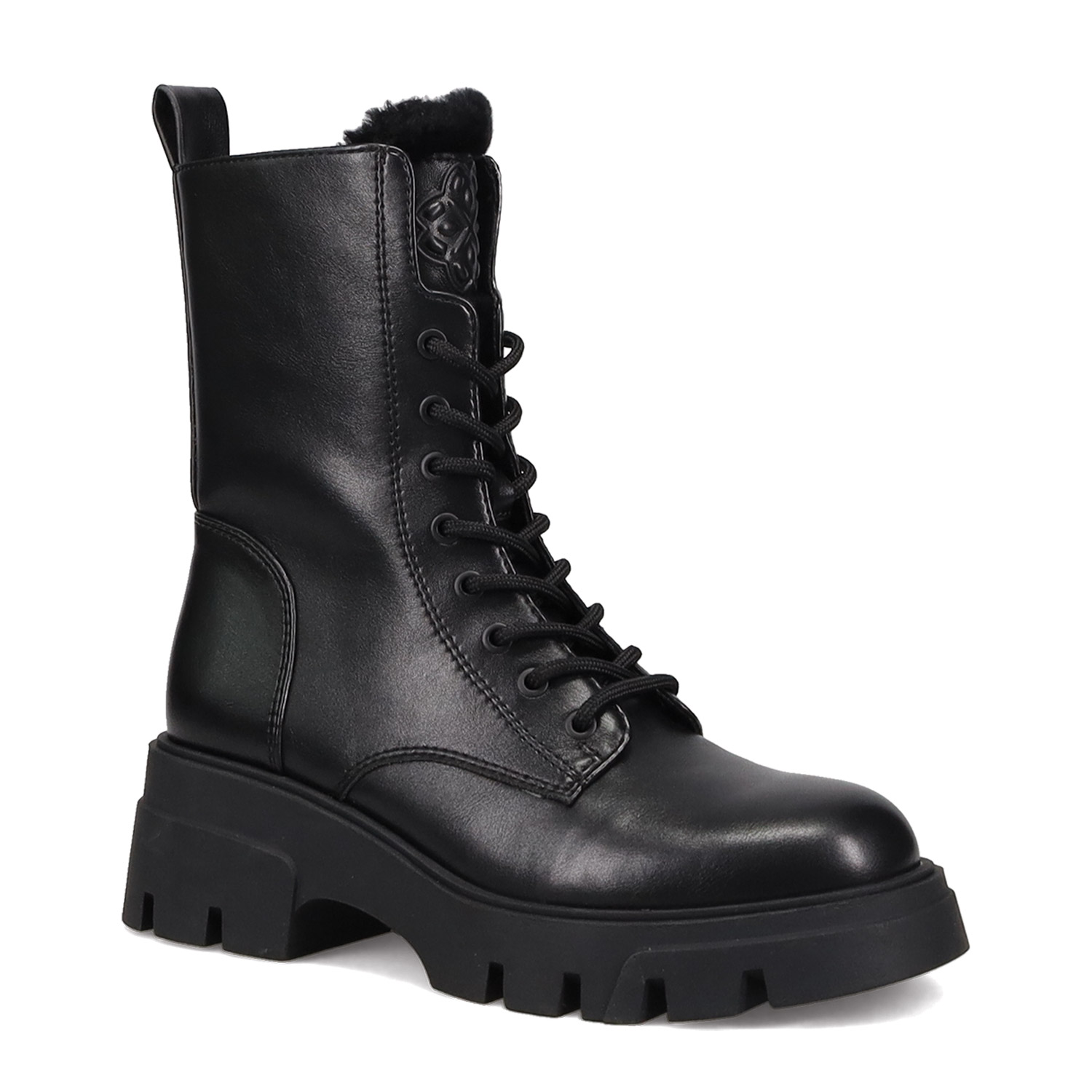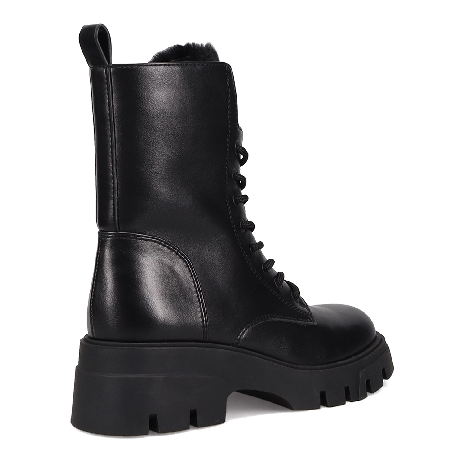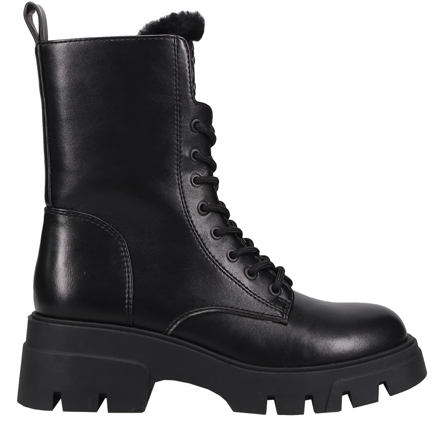 Migato γυναικείο μποτάκι, σε μαύρο χρώμα, κατασκευασμένο από οικολογικό δέρμα. Ύψος σόλας 5.8εκ.