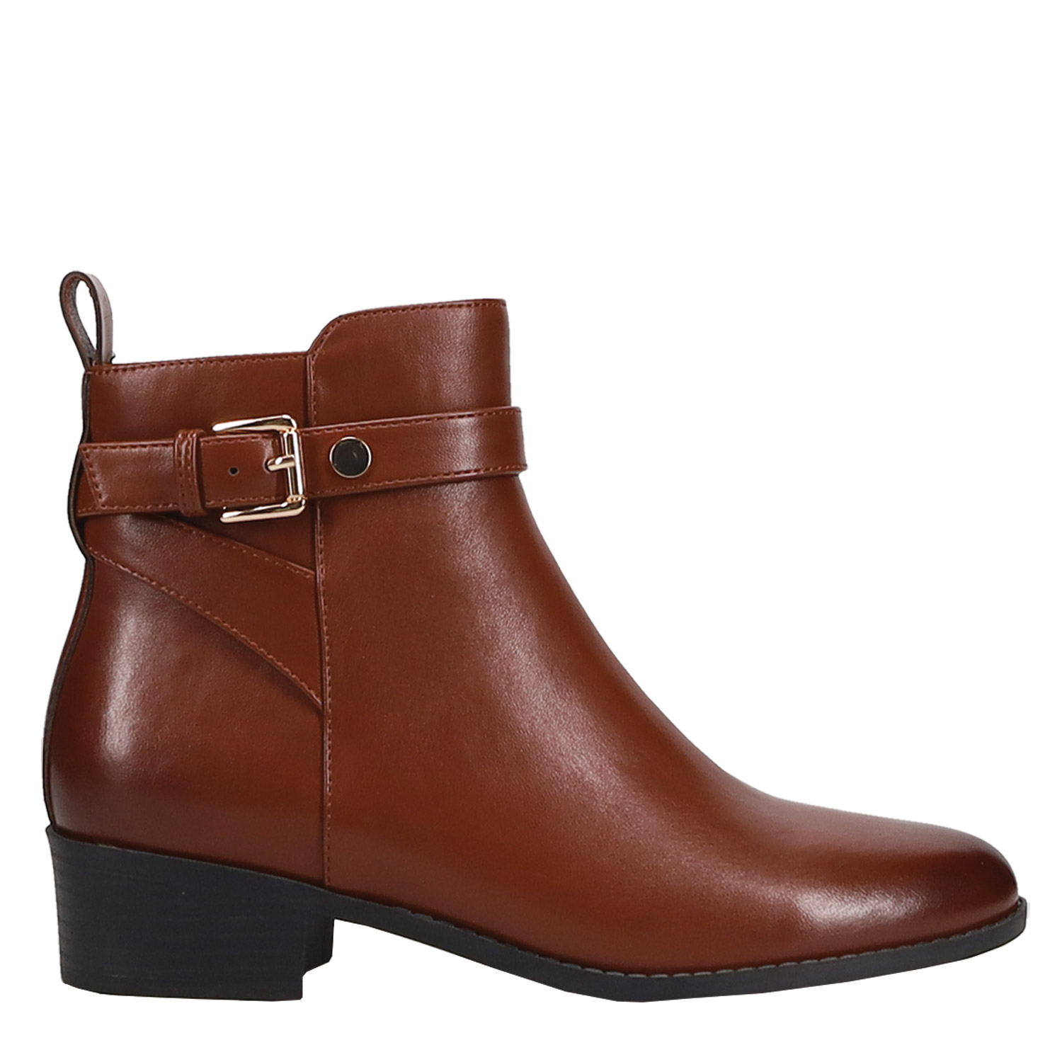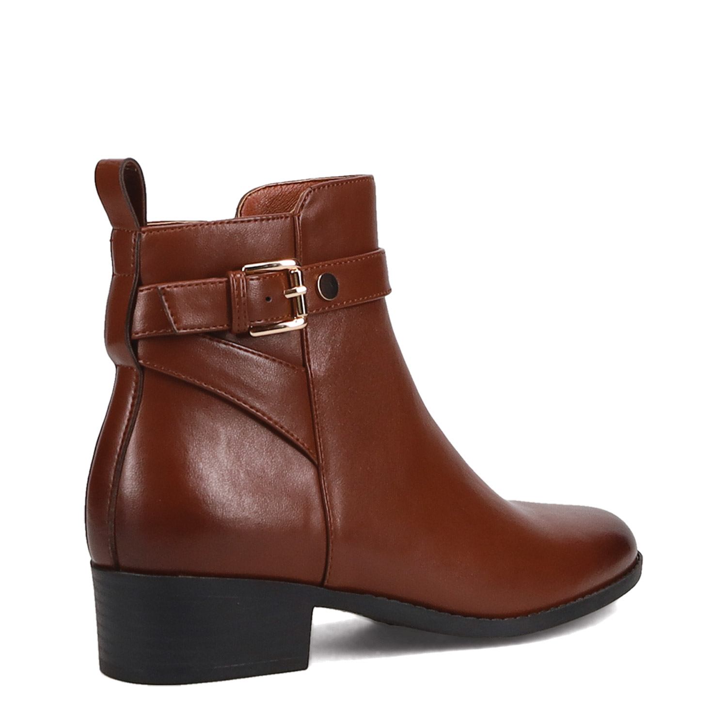 Migato γυναικείο μποτάκι, σε ταμπά χρώμα, κατασκευασμένο από οικολογικό δέρμα. Ύψος τακουνιού 3.8εκ.