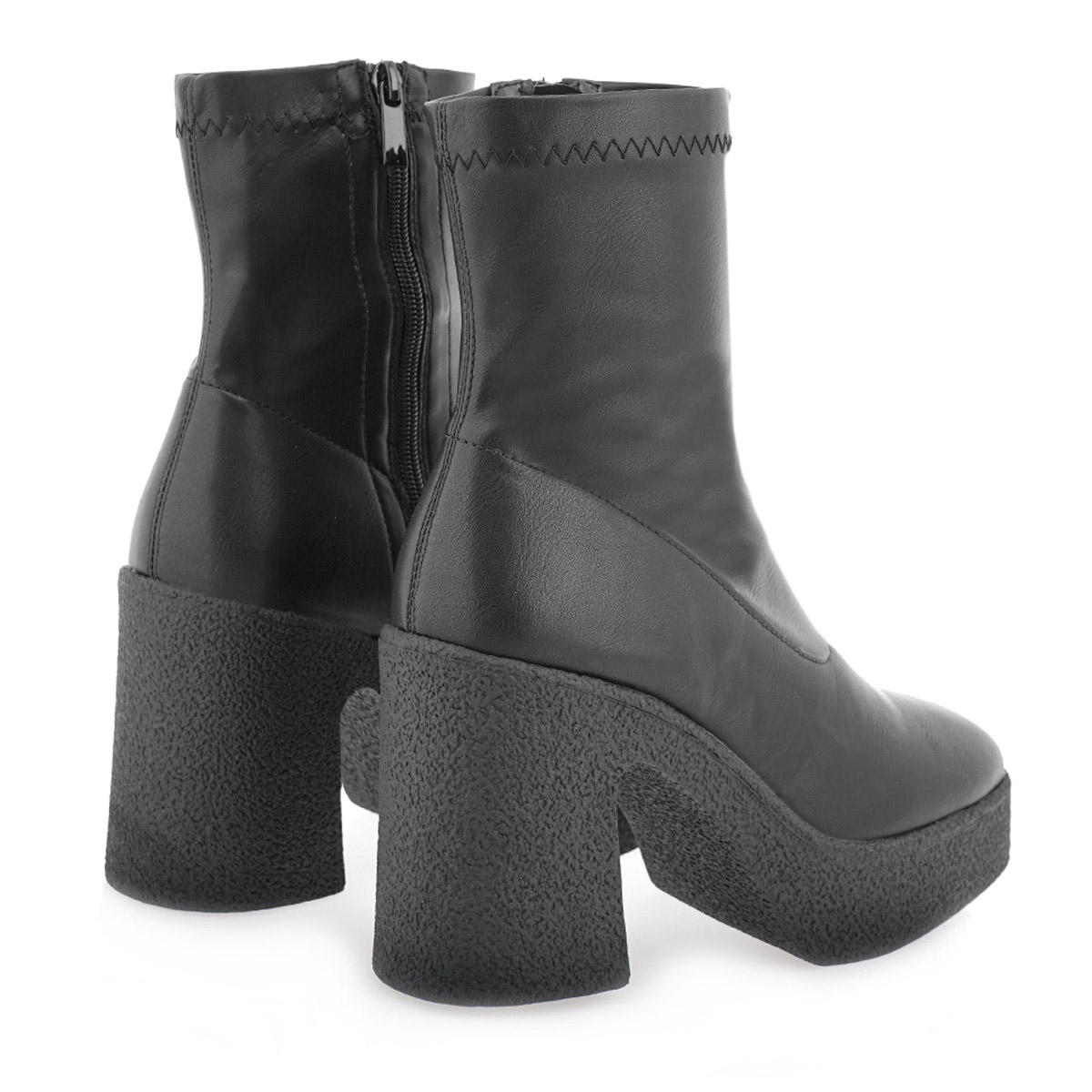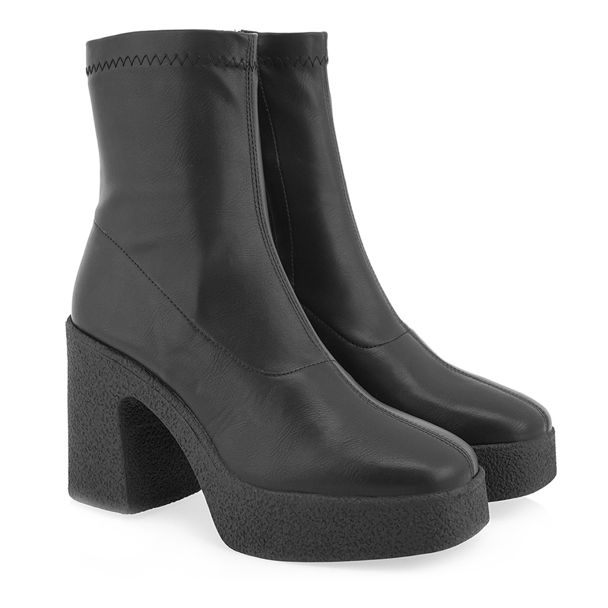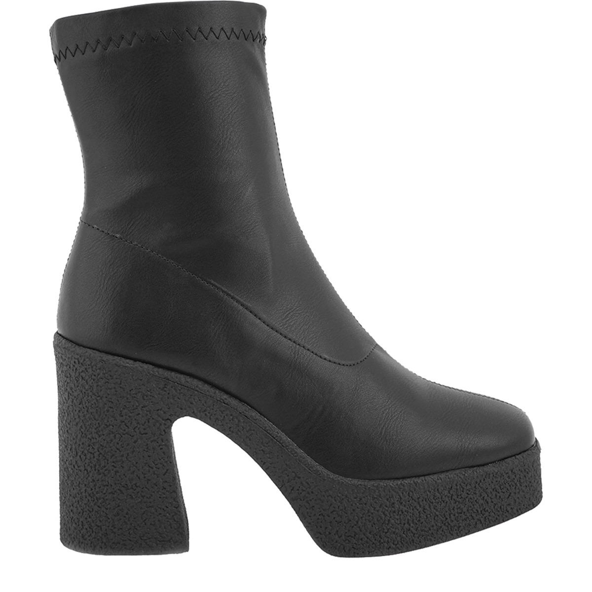 Seven γυναικείο μποτάκι σε μαύρο χρώμα κατασκευασμένο από οικολογικό δέρμα. Ύψος τακουνιού 10εκ.