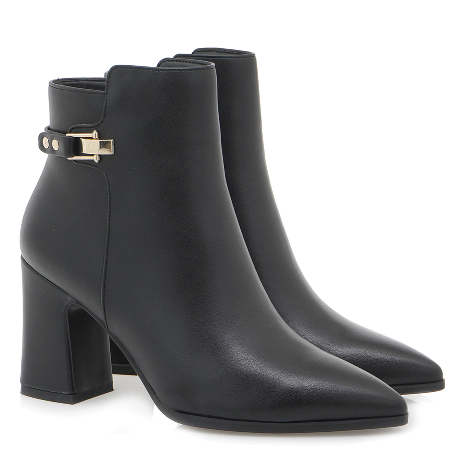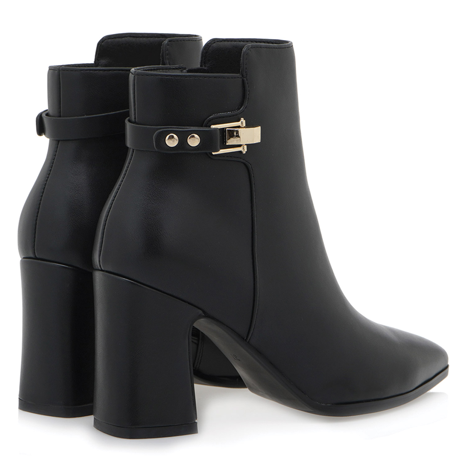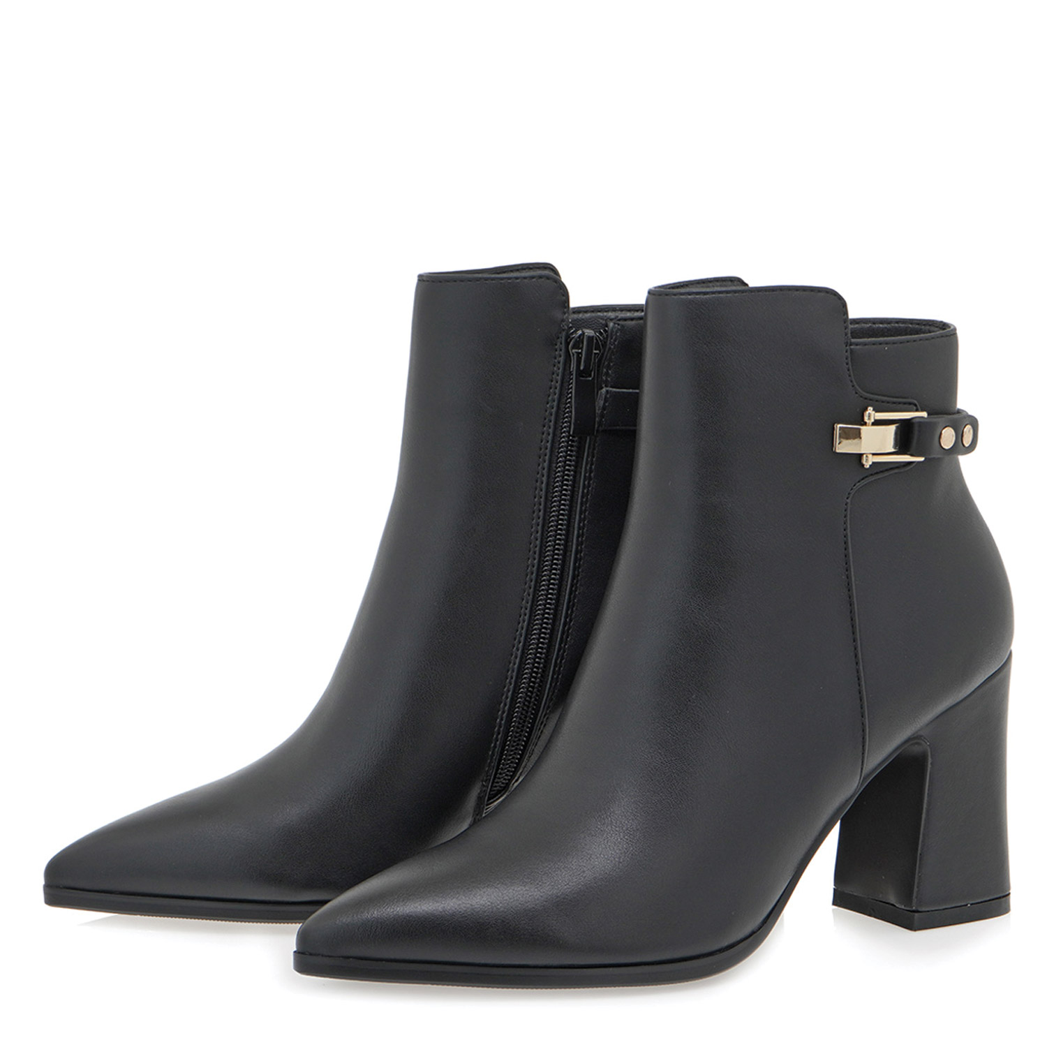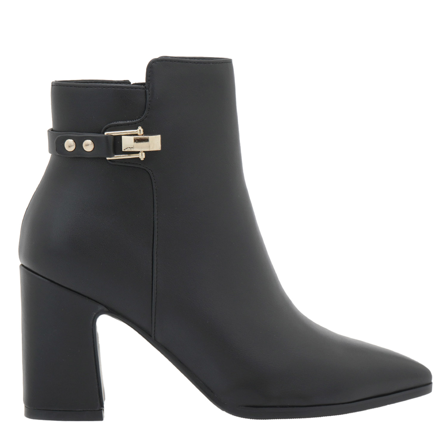 Exe γυναικείο μποτάκι, σε μαύρο χρώμα, κατασκευασμένο από οικολογικό δέρμα. Ύψος τακουνιού 8.5εκ.