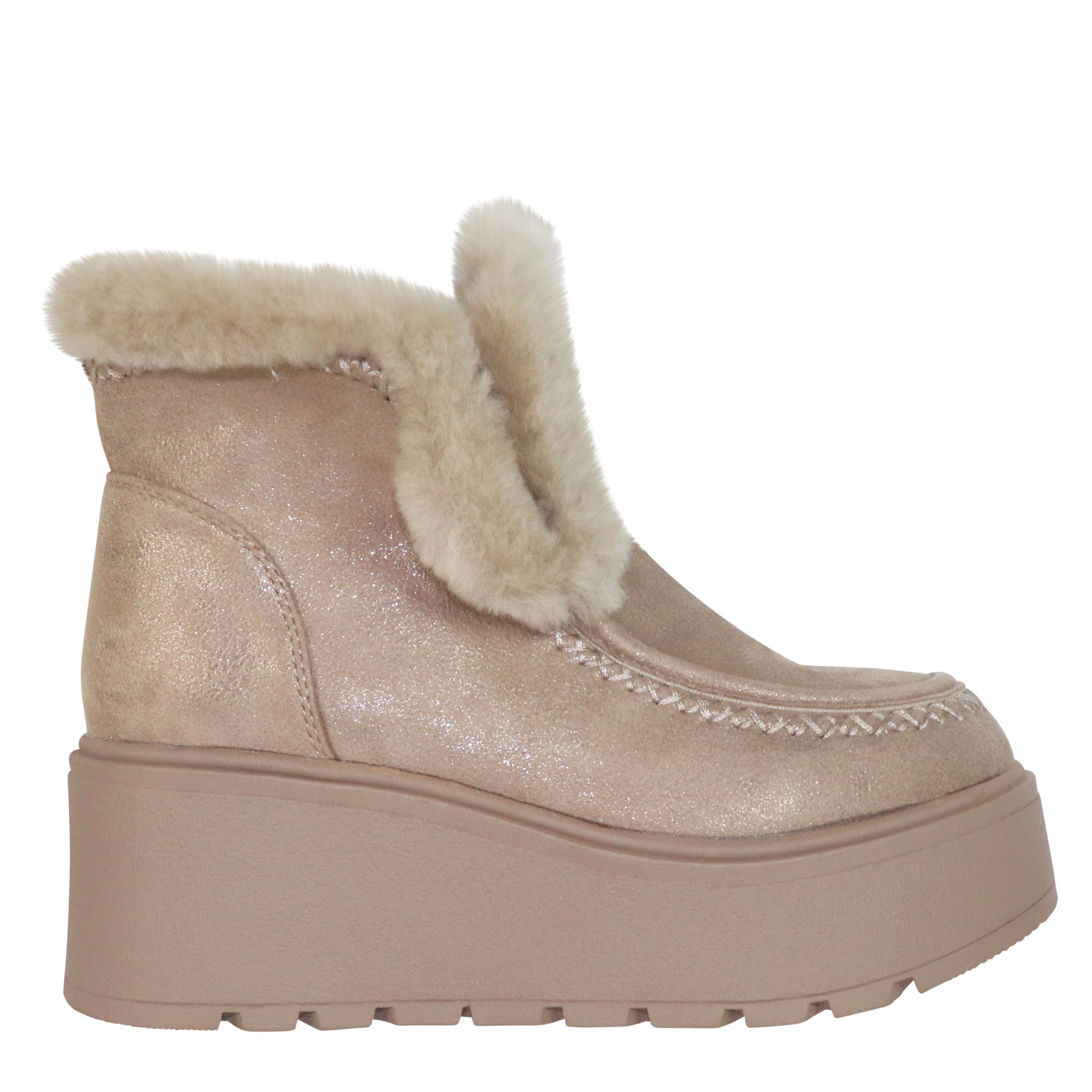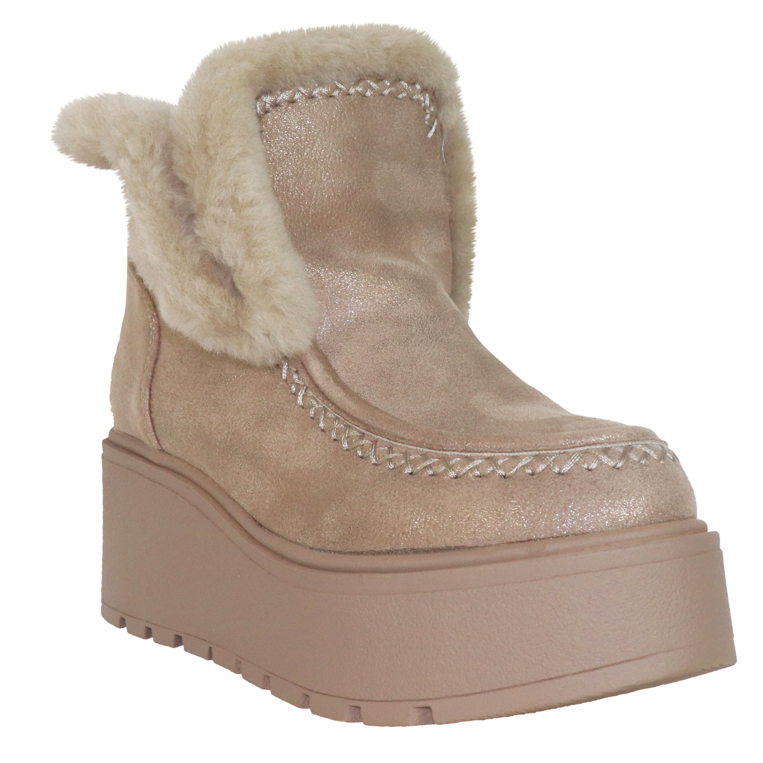 Exe γυναικείο μποτάκι χιονιού, σε πούρο χρώμα, κατασκευασμένο από οικολογικό δέρμα. Ύψος σόλας 6εκ.