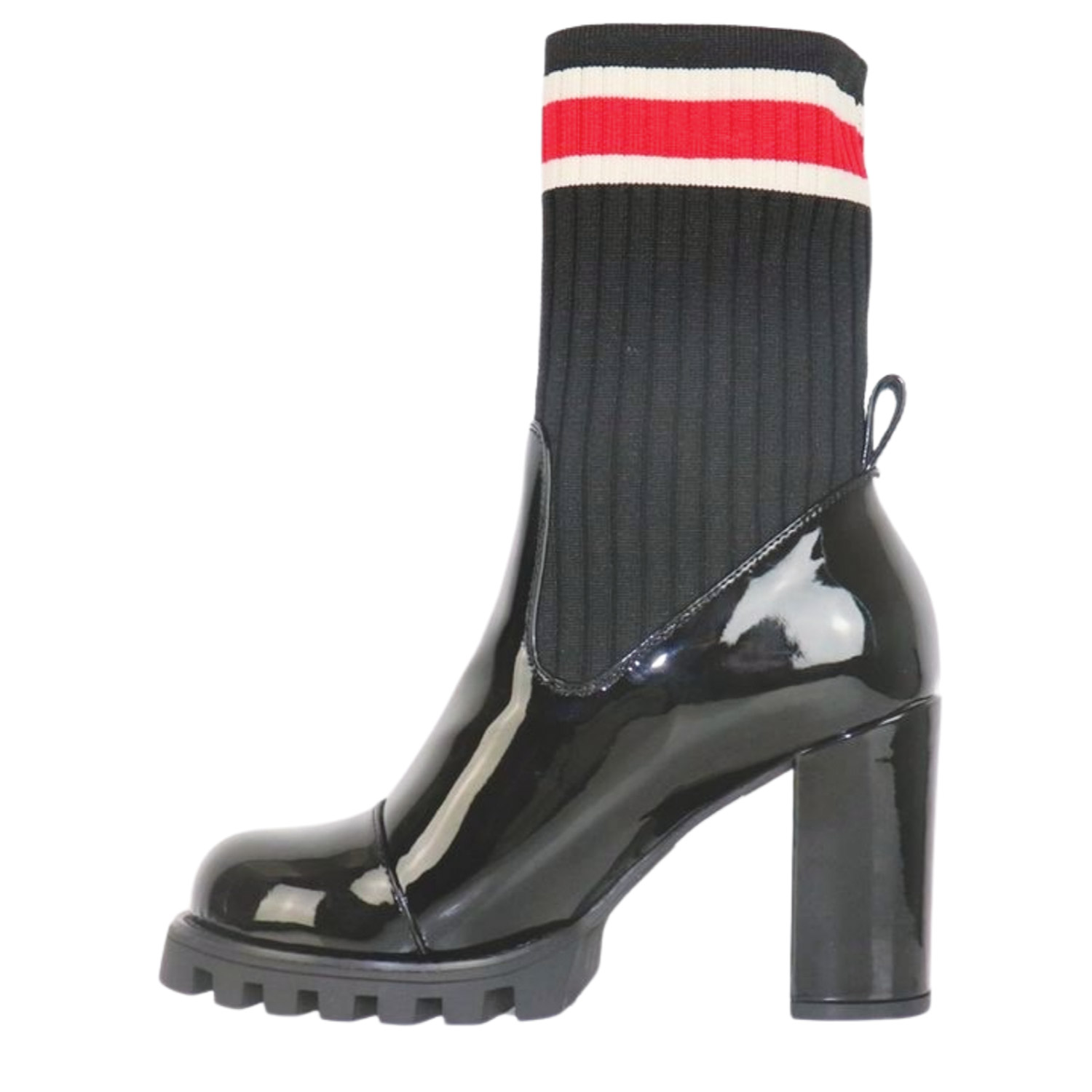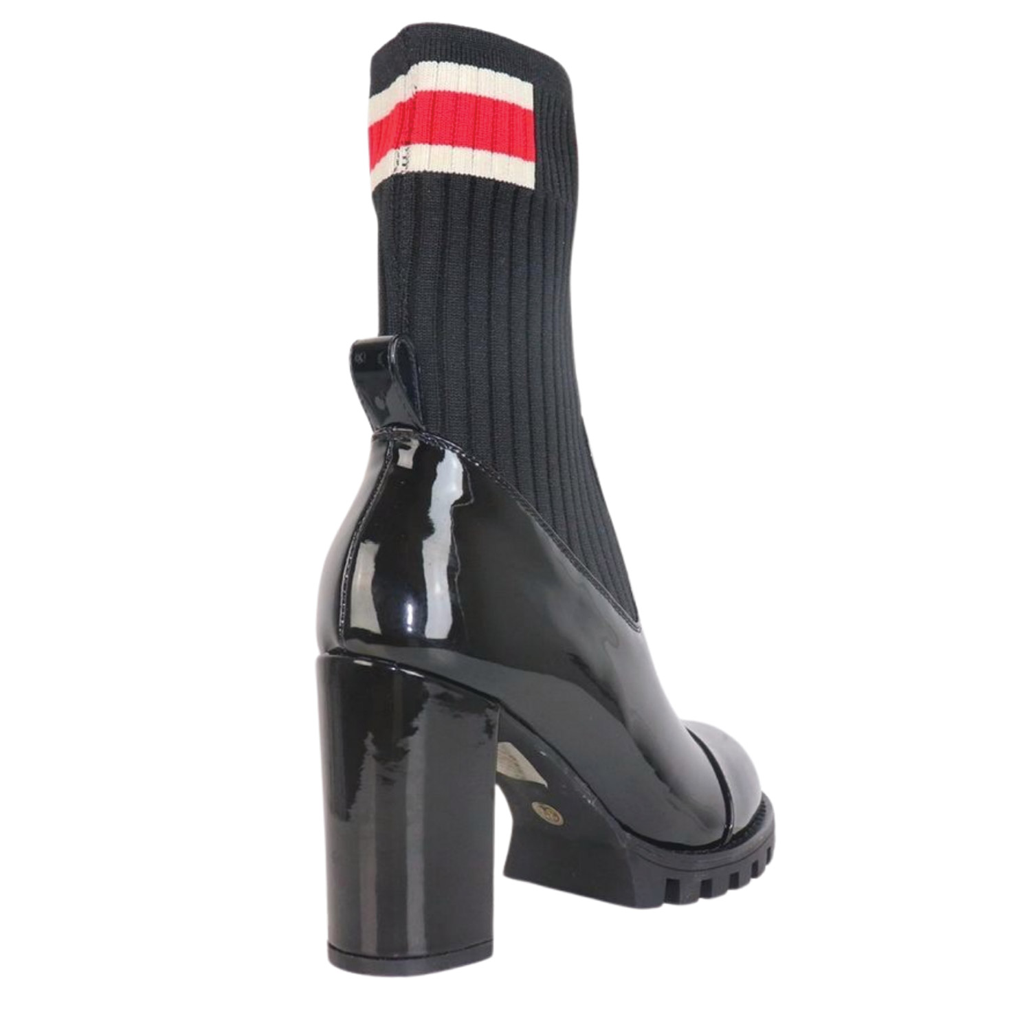 Gianna Kazakou γυναικείο μποτάκι, σε μαύρο χρώμα, κατασκευασμένο από οικολογικό δέρμα. Ύψος τακουνιού 9.5εκ.