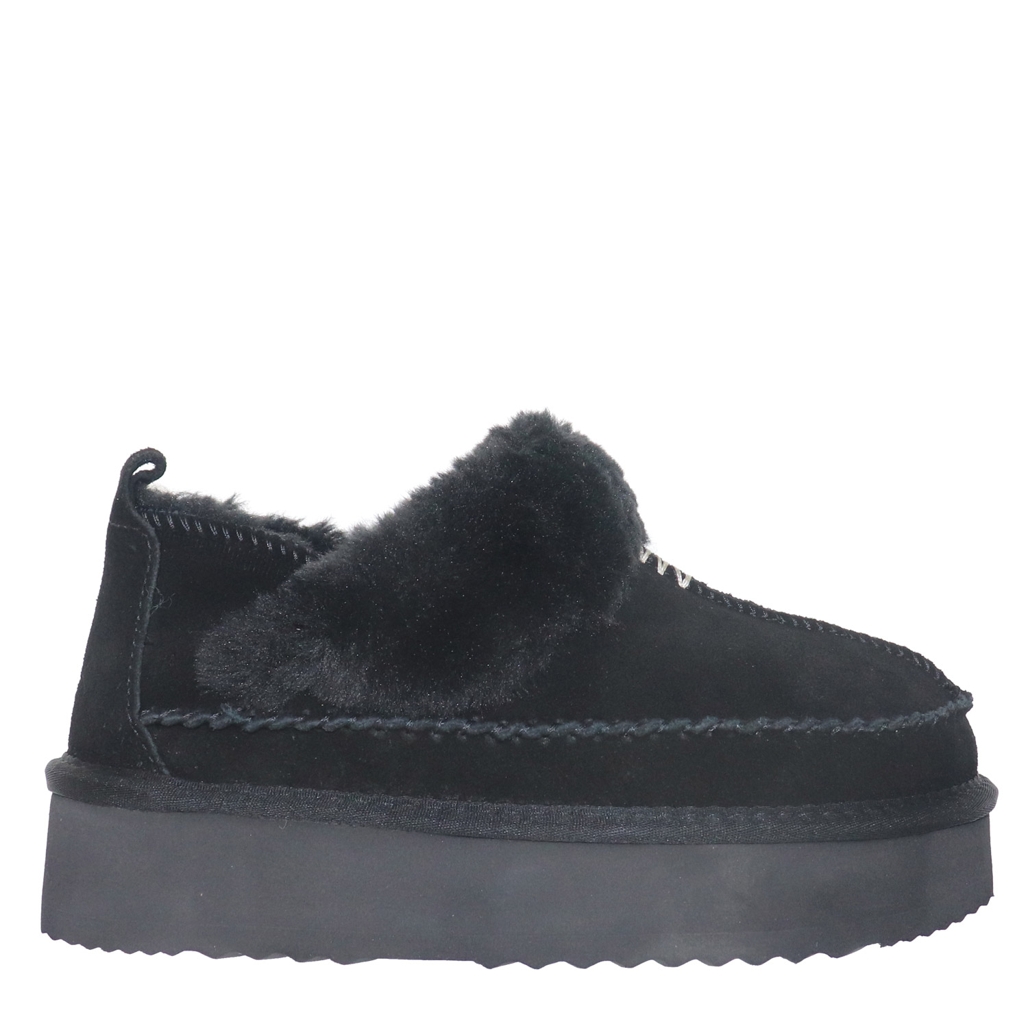 Gianna Kazakou γυναικείο μποτάκι χιονιου, σε μαύρο χρώμα, κατασκευασμένο απο δέρμα καστόρι. Ύψος σόλας 5εκ.