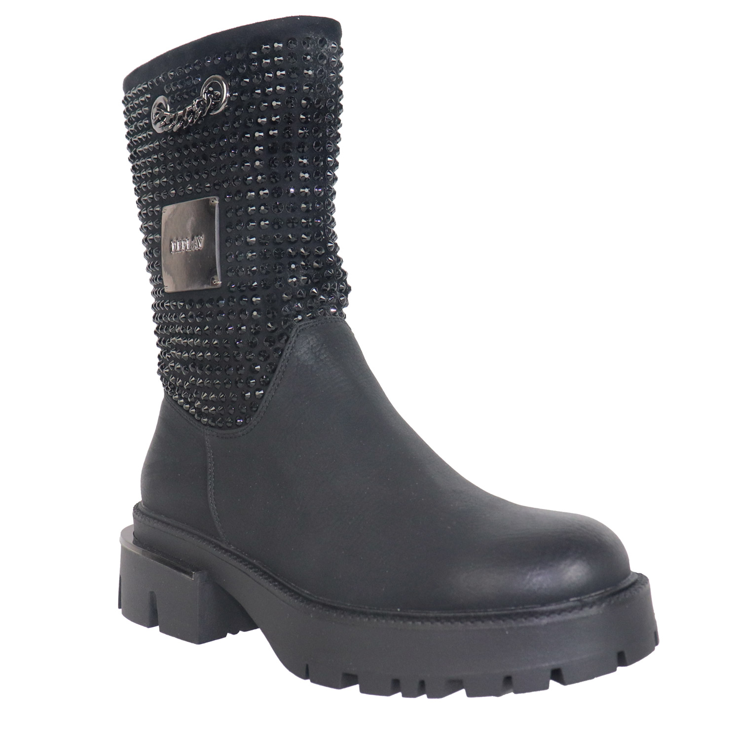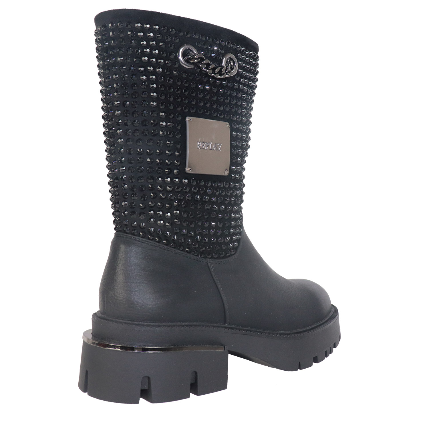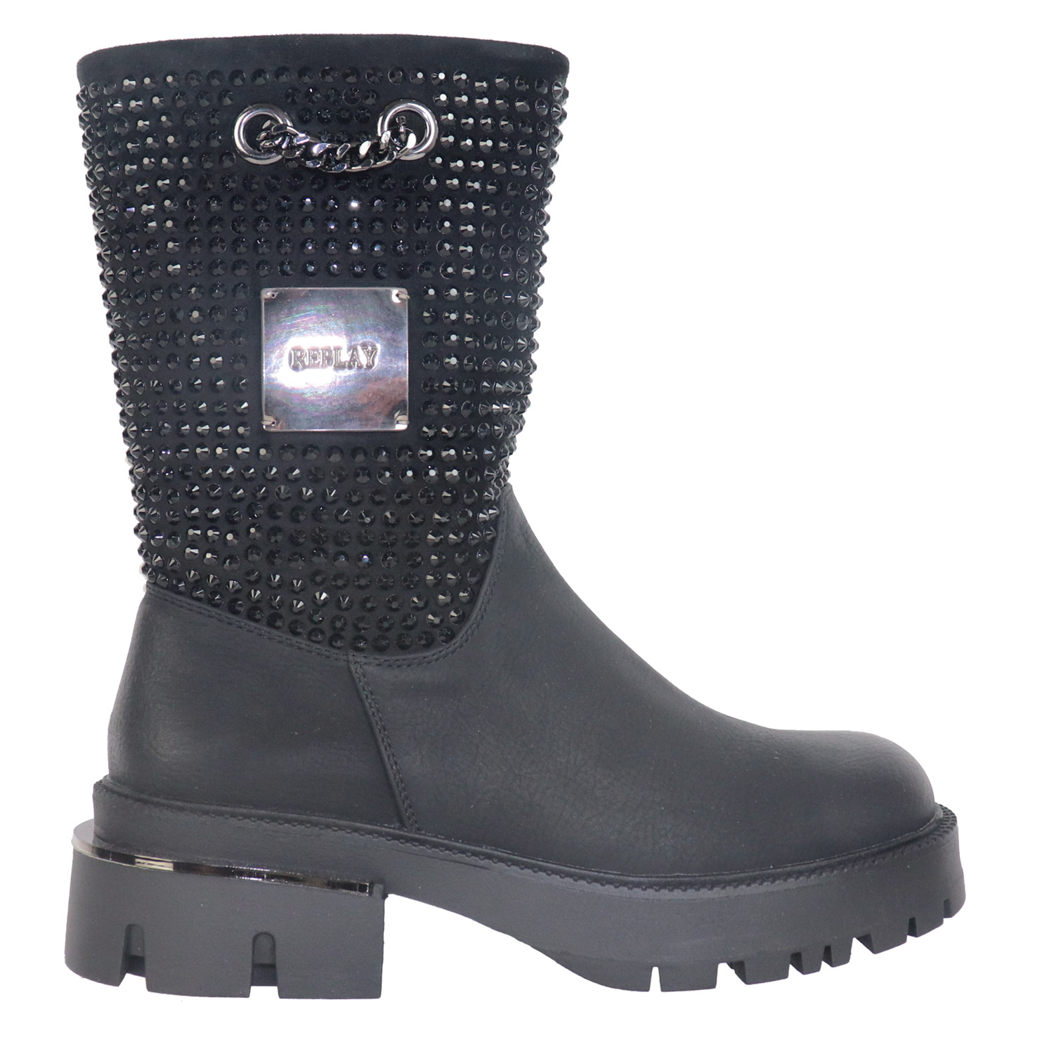 Replay γυναικείο μποτάκι, σε μαύρο χρώμα, κατασκευασμένο από οικολογικό δέρμα. Ύψος σόλας 4εκ.