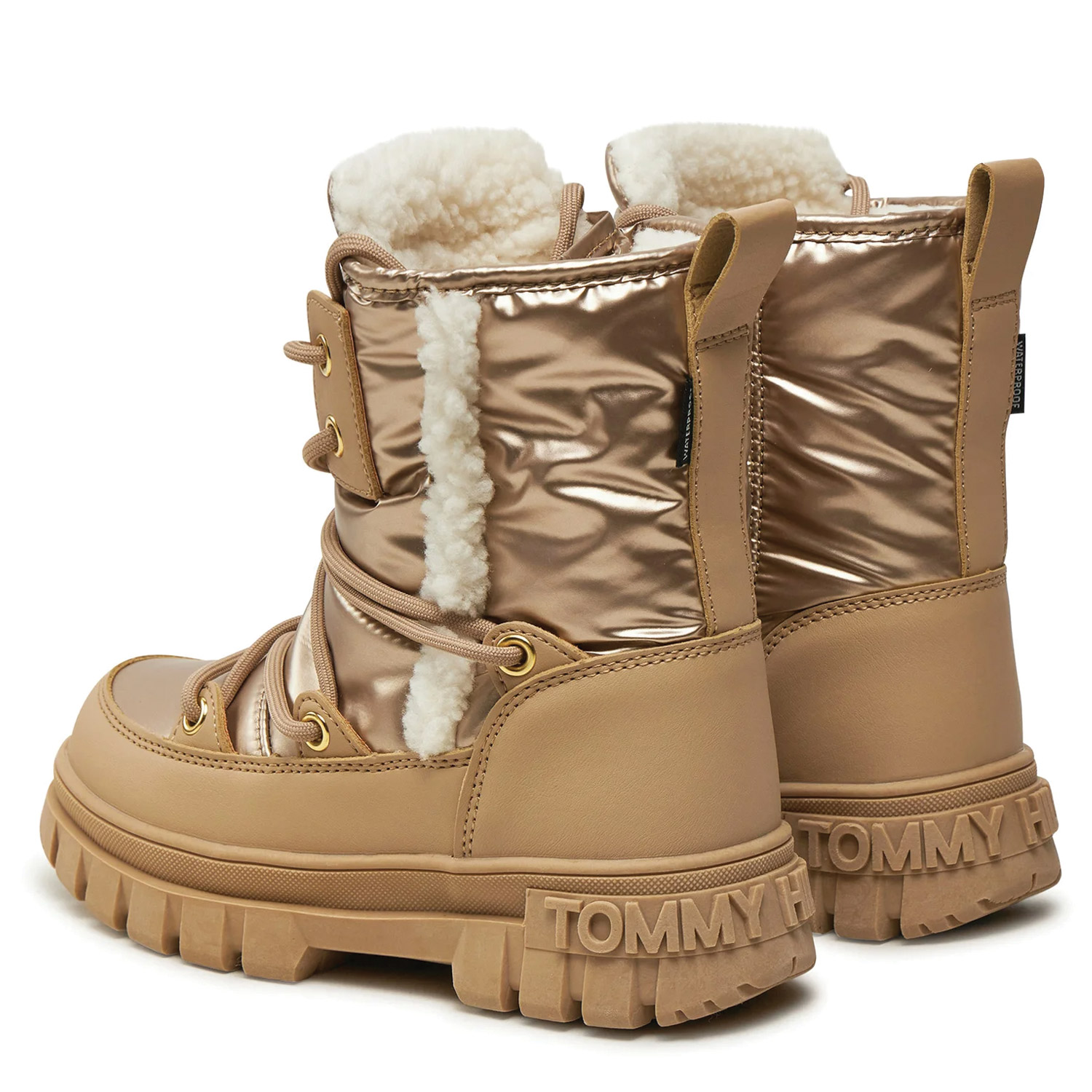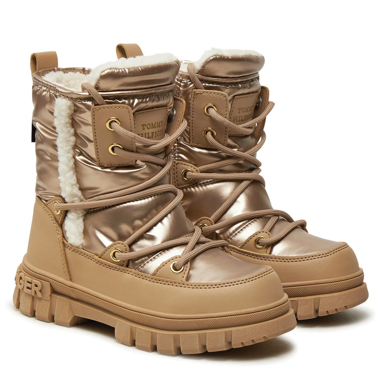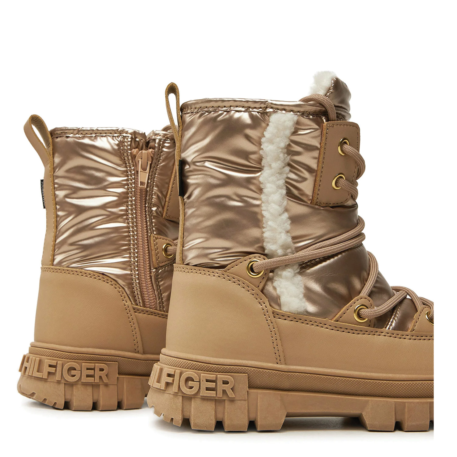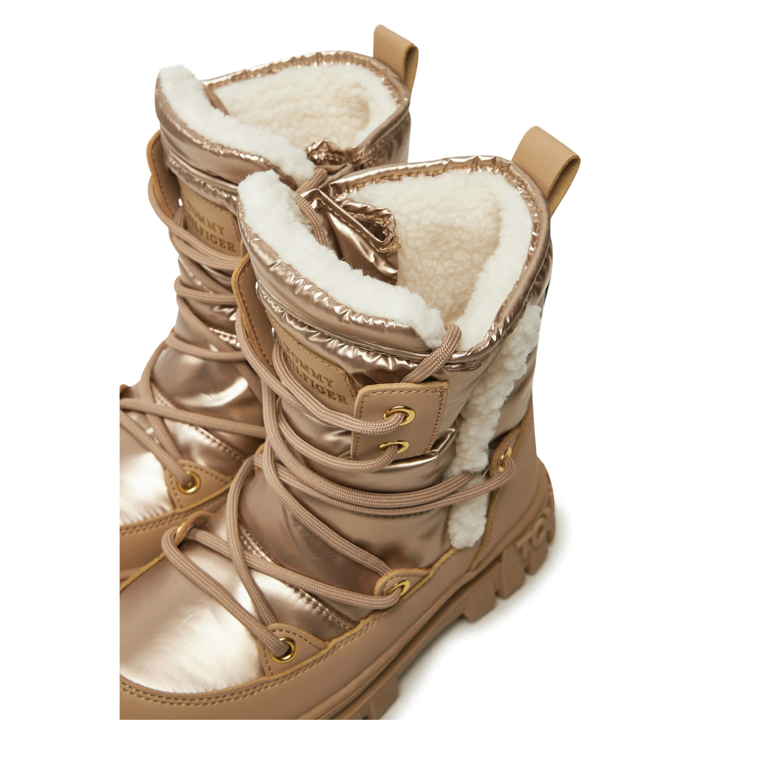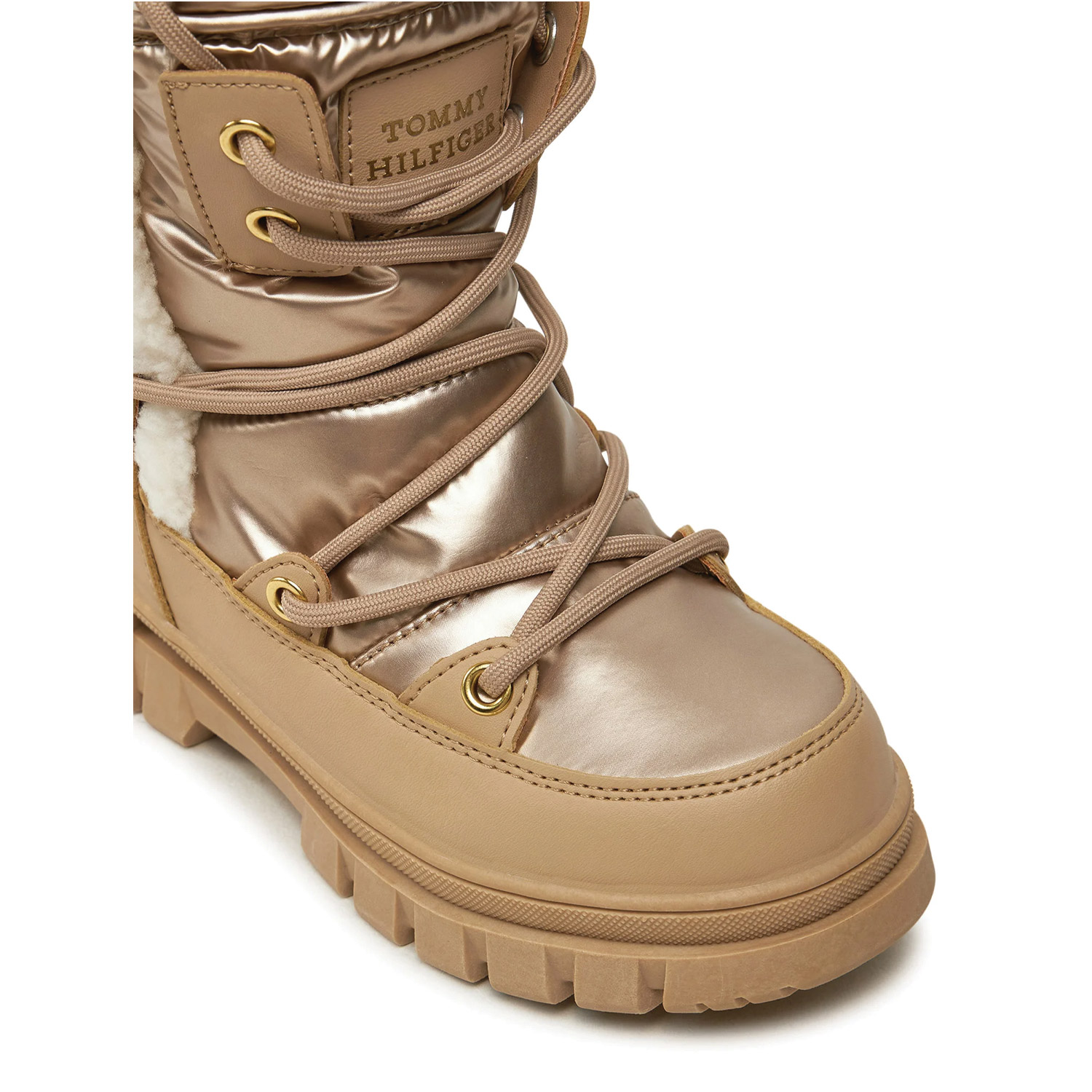 Tommy Hilfiger γυναικείο μποτάκι χιονιού, σε μπρονζέ χρώμα, κατασκευασμένο από ύφασμα. Ύψος τακουνιού 4εκ.