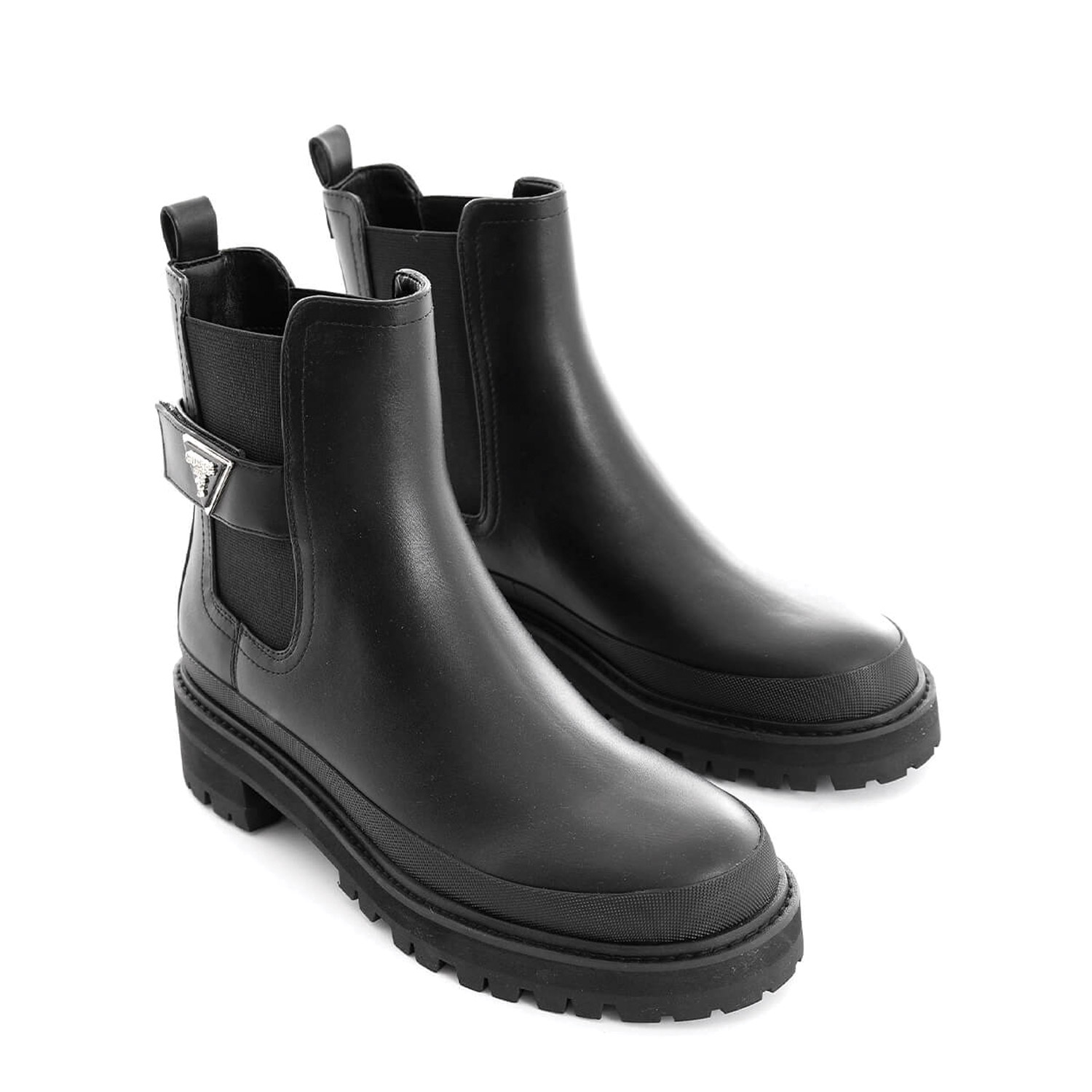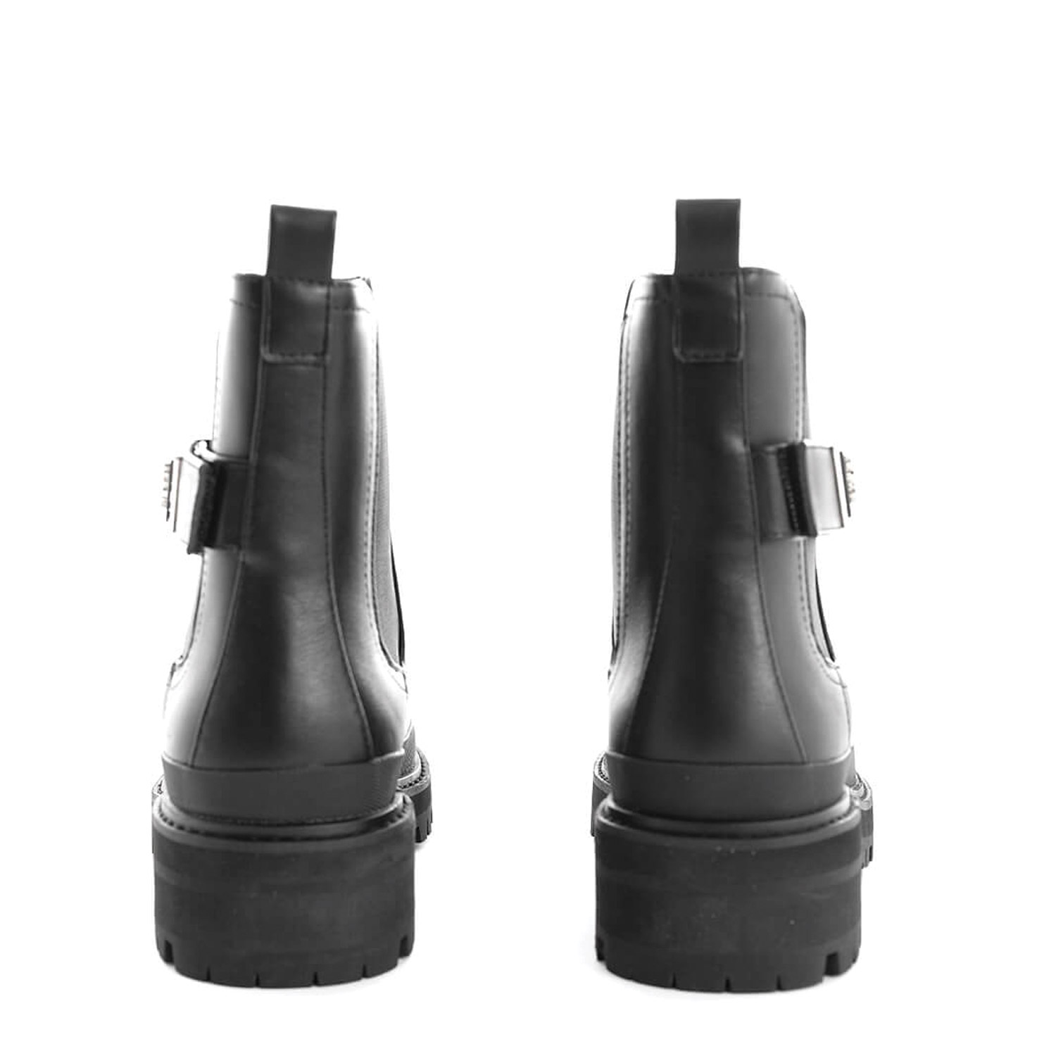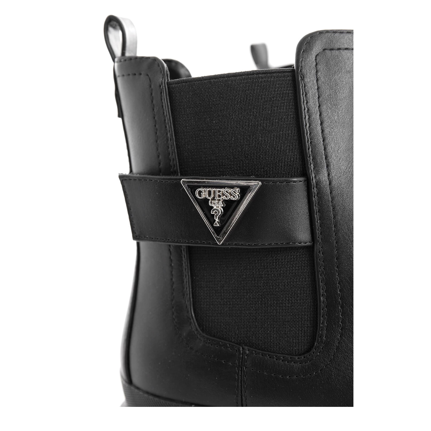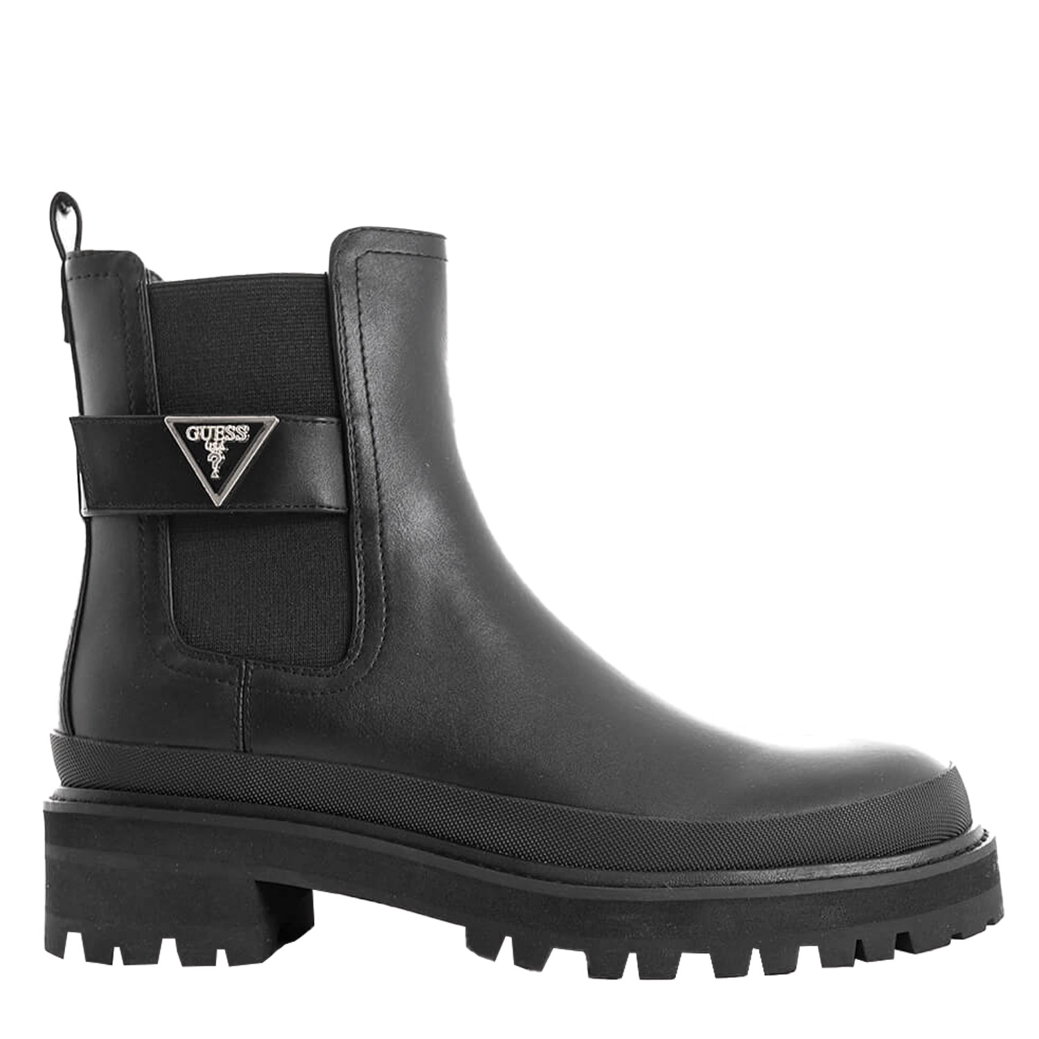 Guess γυναικείο μποτάκι, σε μαύρο χρώμα, κατασκευασμένο από οικολογικό δέρμα. Ύψος τακουνιού 4εκ.