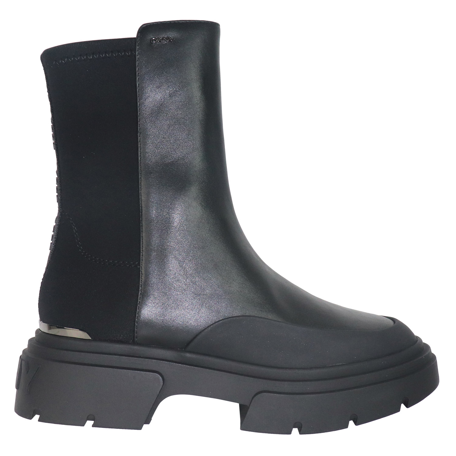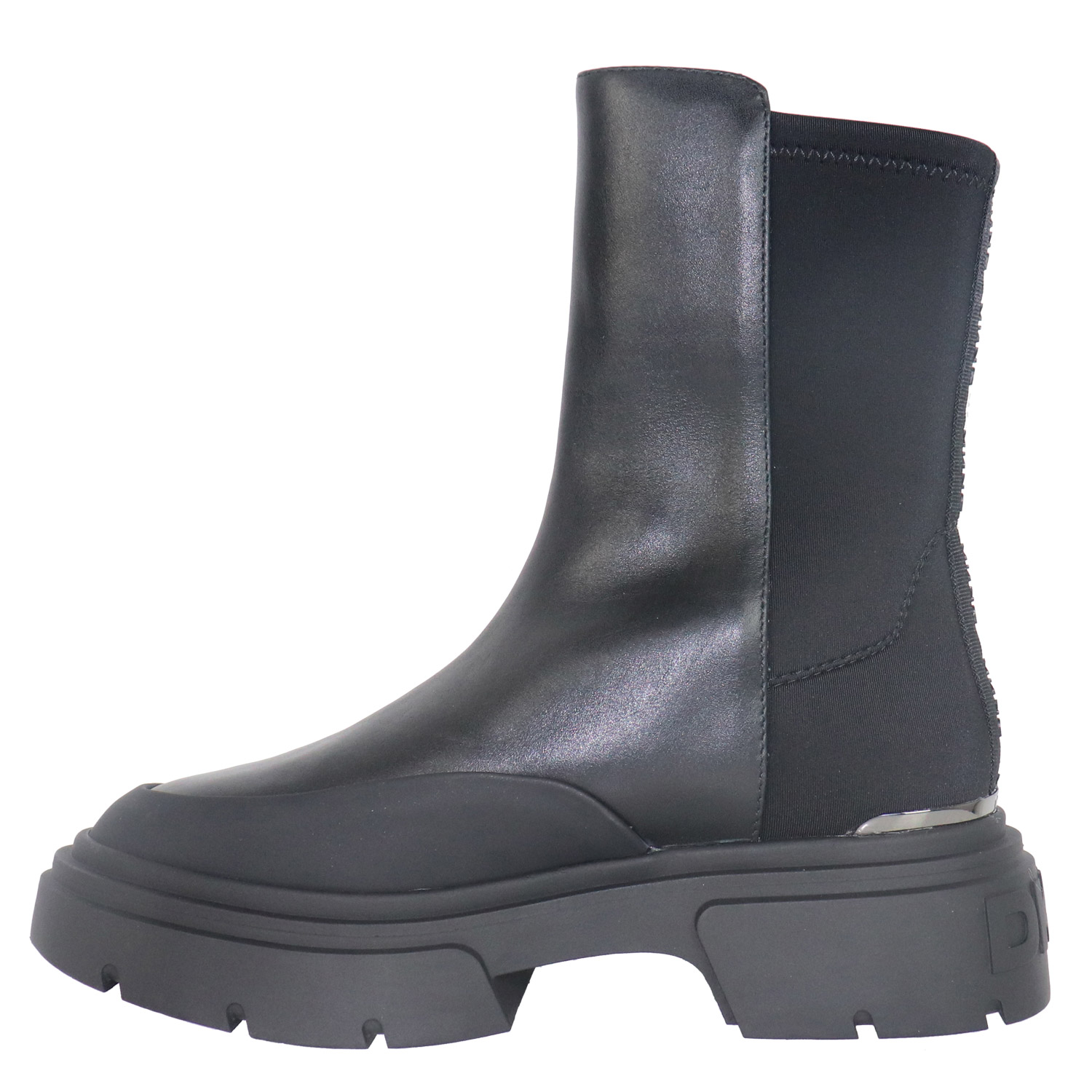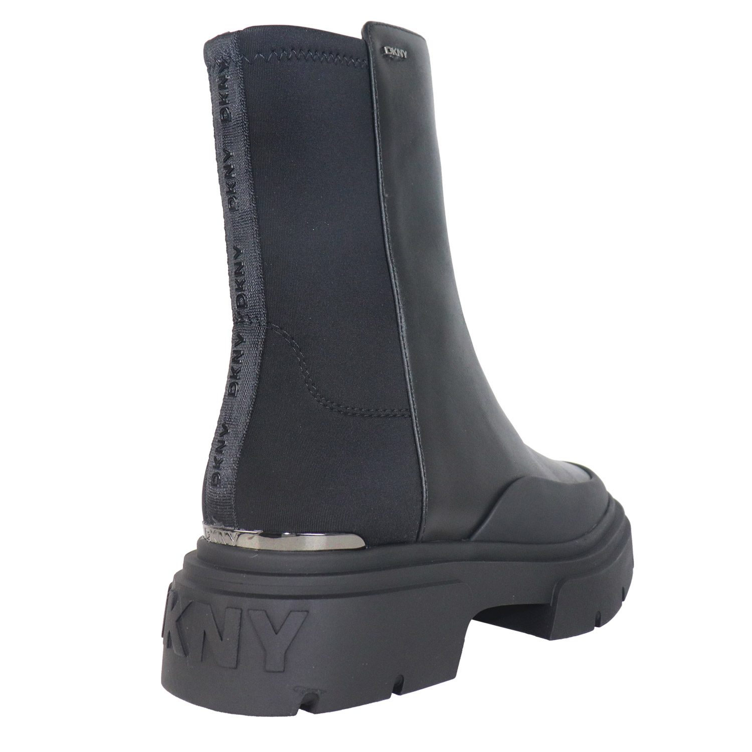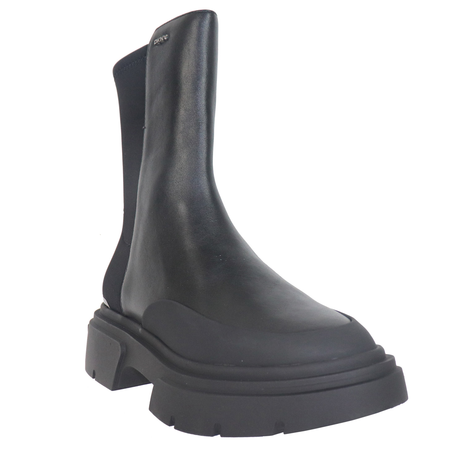 DKNY γυναικείο μποτάκι, σε μαύρο χρώμα, κατασκευασμένο από δέρμα. Ύψος τακουνιού 4.5εκ.