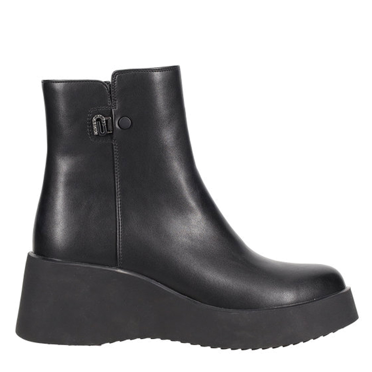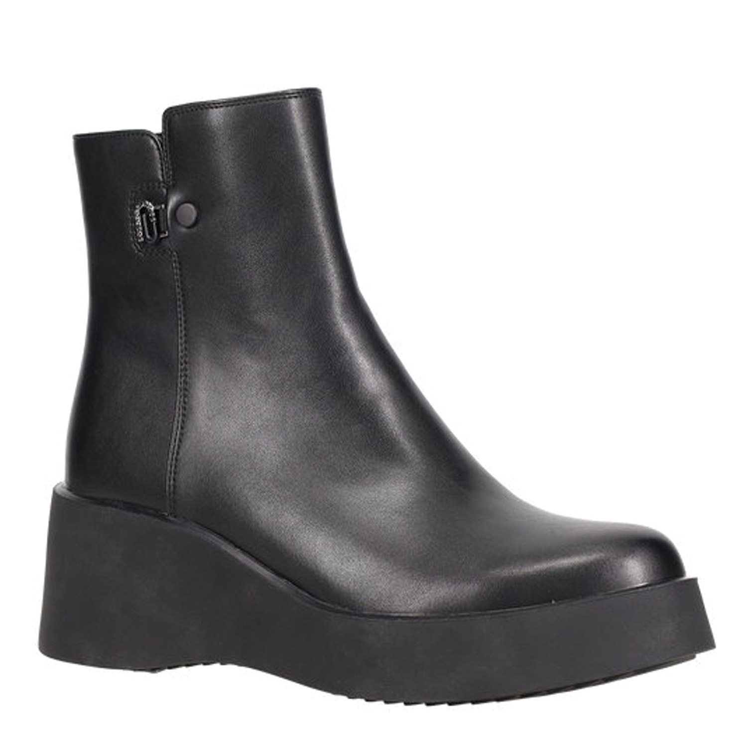 Μαύρο μποτάκι με σόλα πλατφόρμα. Κλείνει με φερμουάρ στο πλάι.