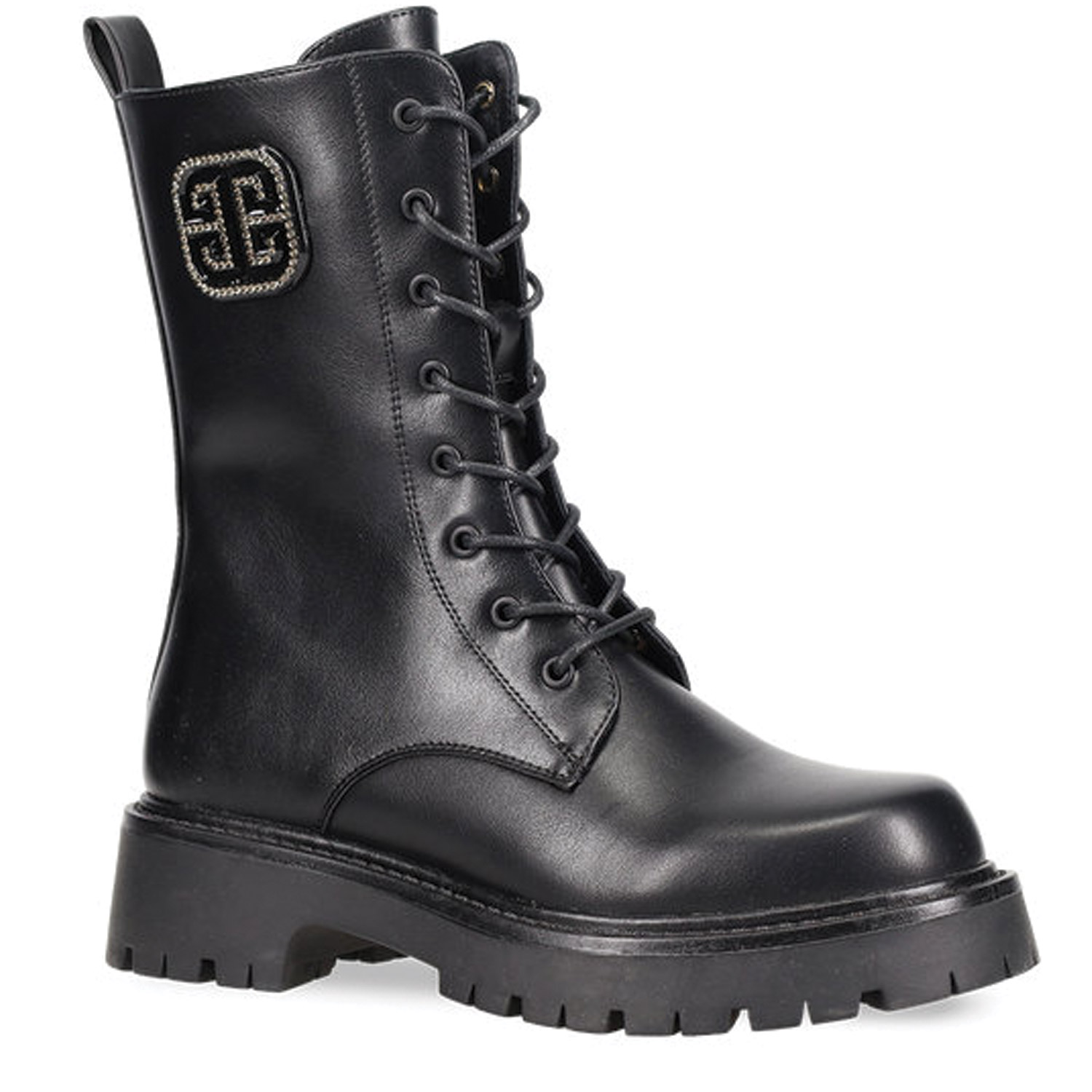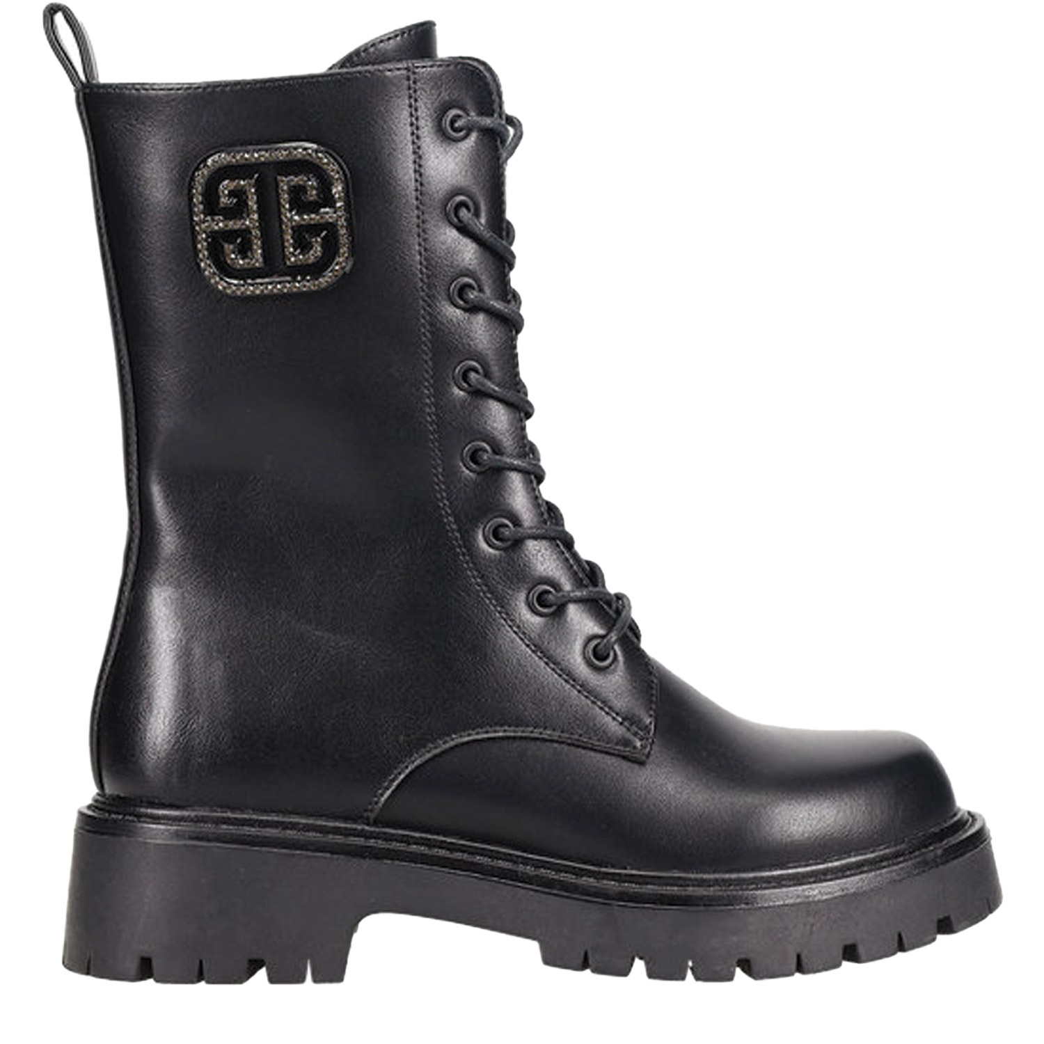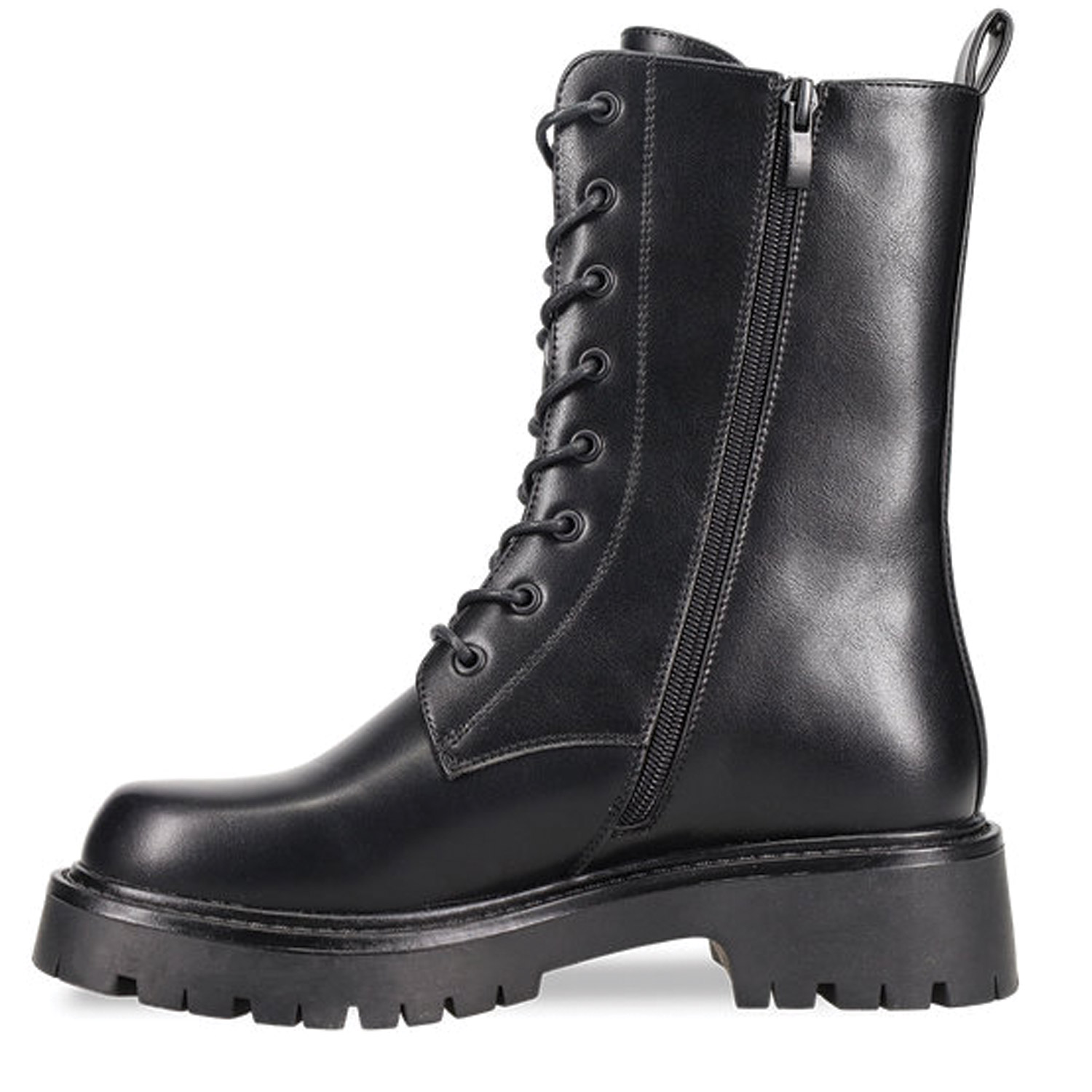 Migato γυναικείο μποτάκι, σε μαύρο χρώμα, κατασκευασμένο από οικολογικό δέρμα. Ύψος 5εκ.