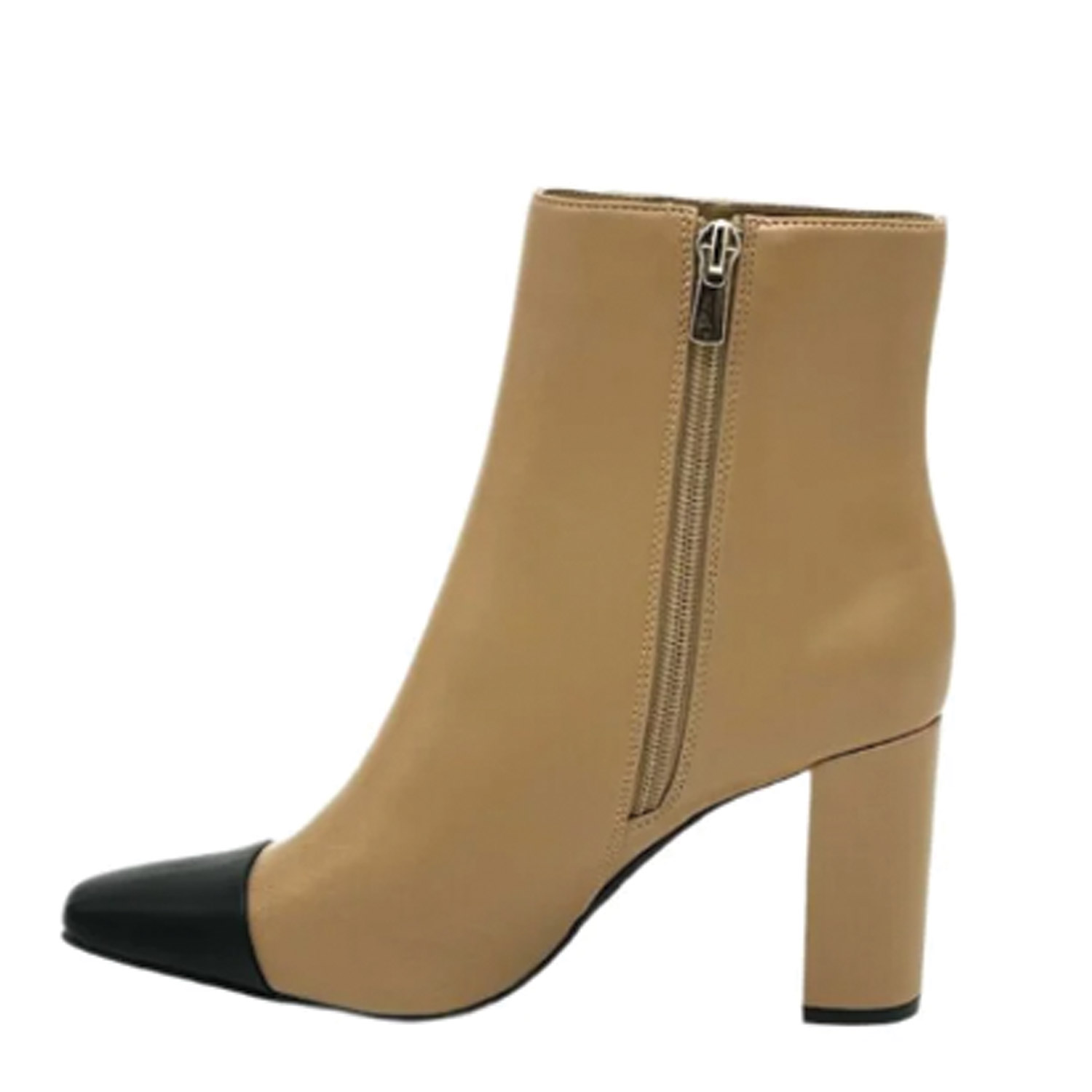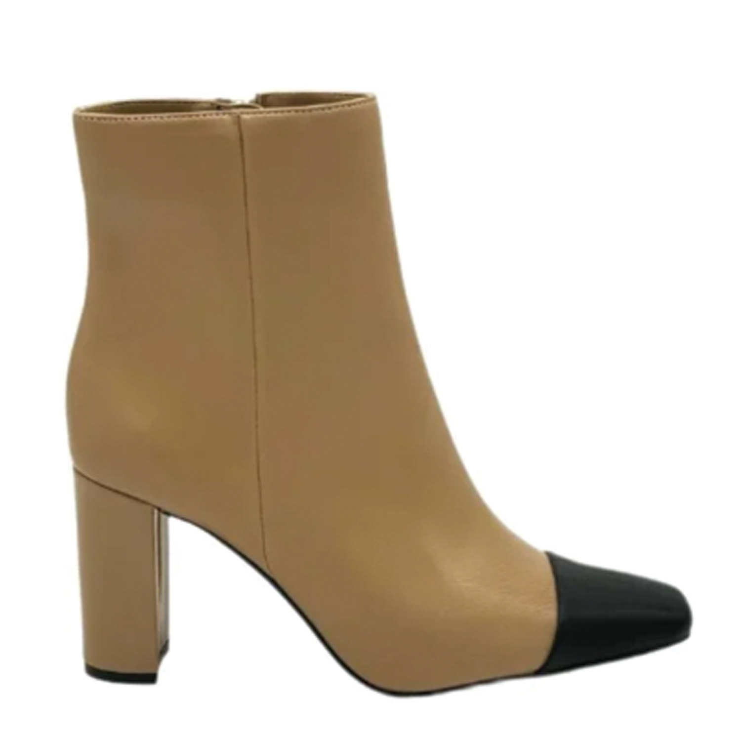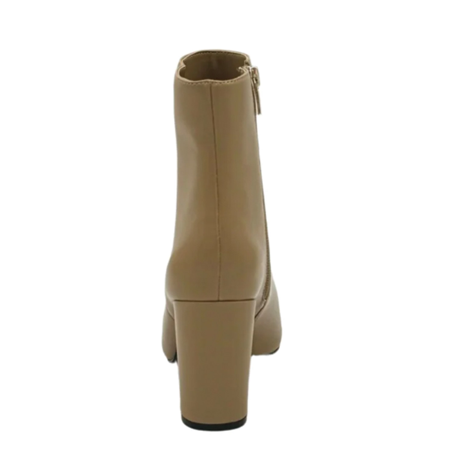 Exe γυναικείο μποτάκι, σε καμηλό χρώμα, κατασκευασμένο από οικολογικό δέρμα. Ύψος τακουνιού 8εκ.