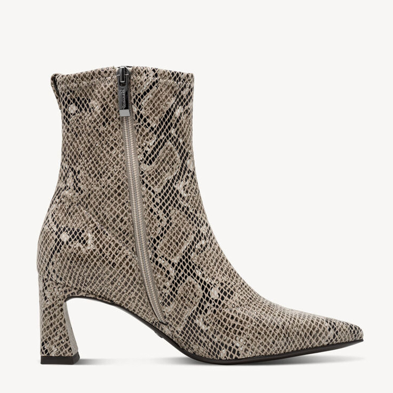 Δώσε νέο αέρα στις εμφανίσεις σου με τα Tamaris μποτάκια. Ο κομψός banana τακούνι 6,5cm προσθέτει ύψος και αυτοπεποίθηση, ενώ η τεχνολογία Antislide και Antishokk φροντίζουν να νιώθεις πάντα σιγουριά. Η έντονη, μοντέρνα γραμμή με μυτερή φόρμα, σταθερή σόλα και πρακτικό φερμουάρ ταιριάζει ιδανικά σε κάθε περίσταση—γραφείο, πάρτι ή λαμπερή βραδιά, αναδεικνύοντας τη μοναδικότητά σου σε κάθε στιγμή.