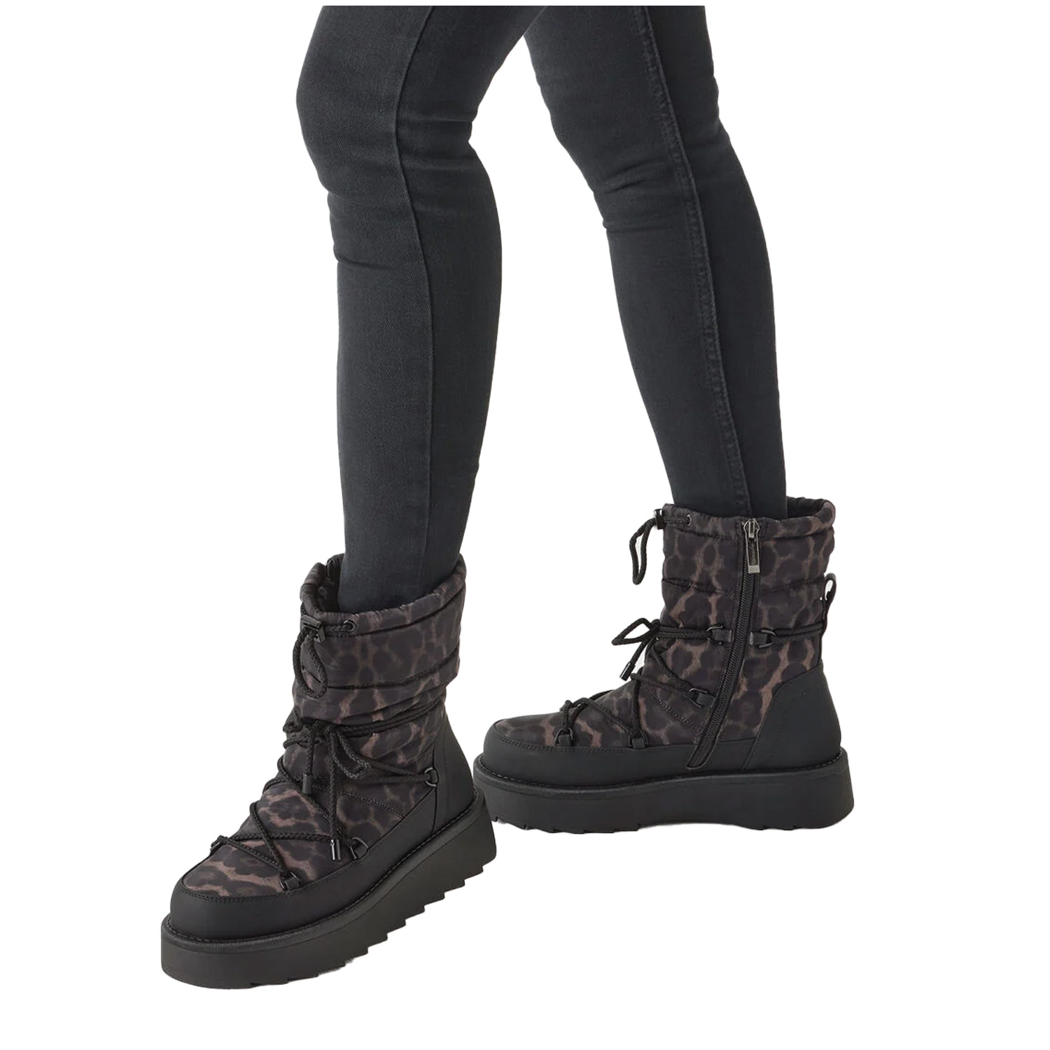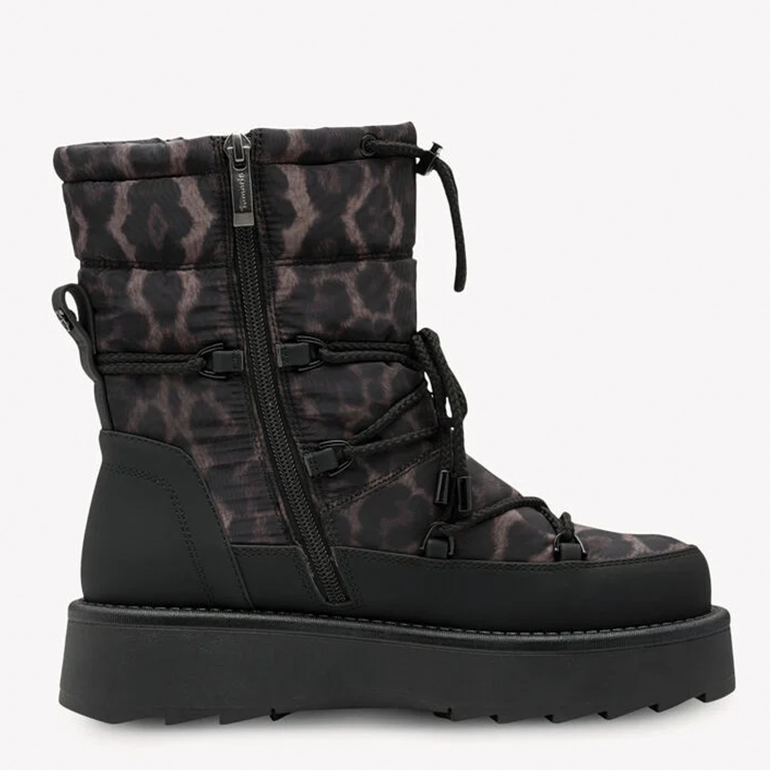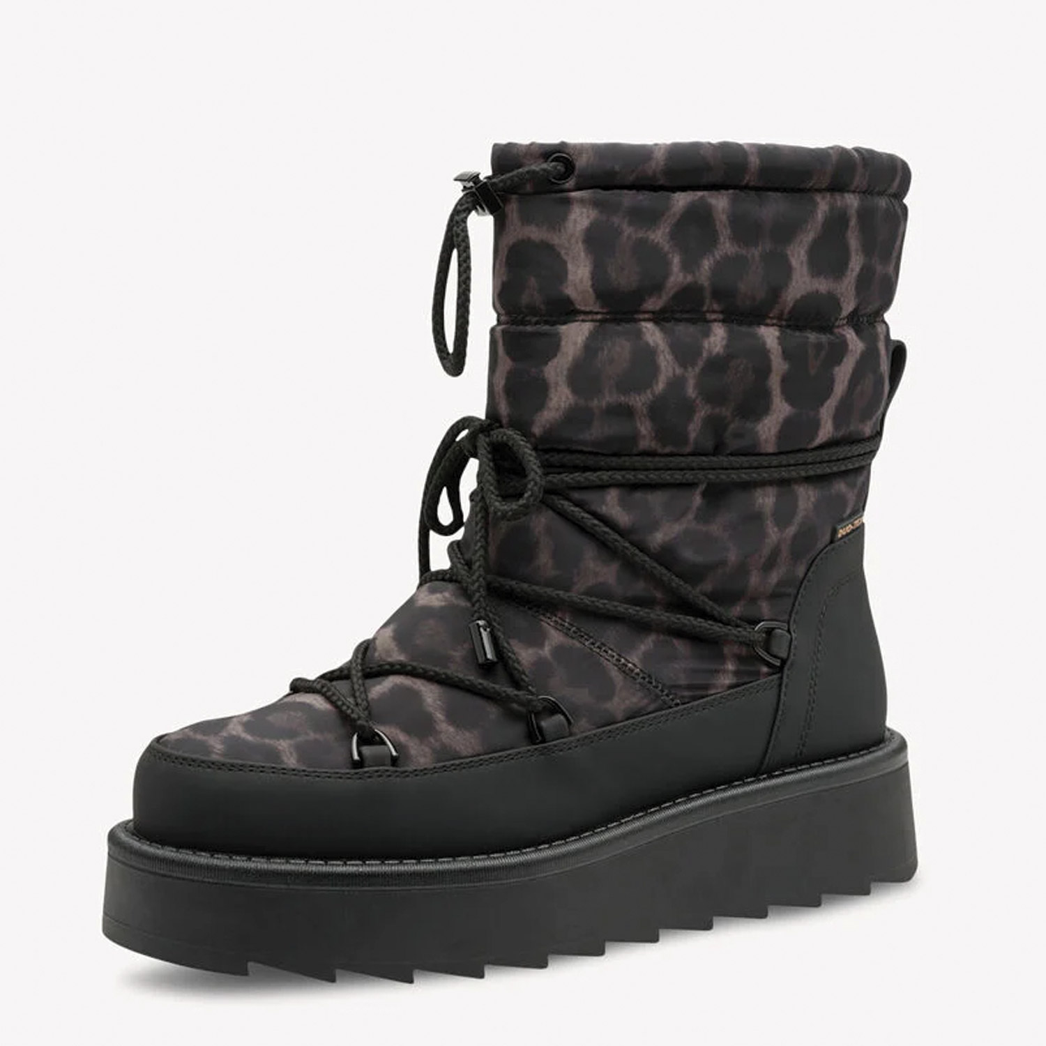 Το λεοπάρ σχέδιο και η ζεστή μεμβράνη Duotex σας προσφέρουν στυλ και στεγνά, ζεστά πόδια – είτε κάνετε βόλτες στην πόλη είτε απολαμβάνετε χειμερινές βόλτες. Το αφαιρούμενο πέλμα προσφέρει εξατομικευμένη άνεση, ενώ ο σπορ σχεδιασμός της πλατφόρμας κάνει την εμφάνισή σας μοναδική. Το φερμουάρ τα κάνει εύκολα στην εφαρμογή και το επενδεδυμένο ύψος του κορμού εξασφαλίζει επιπλέον άνεση. Για έναν αστικό χειμώνα γεμάτο ενέργεια, ατομικότητα και άνεση.