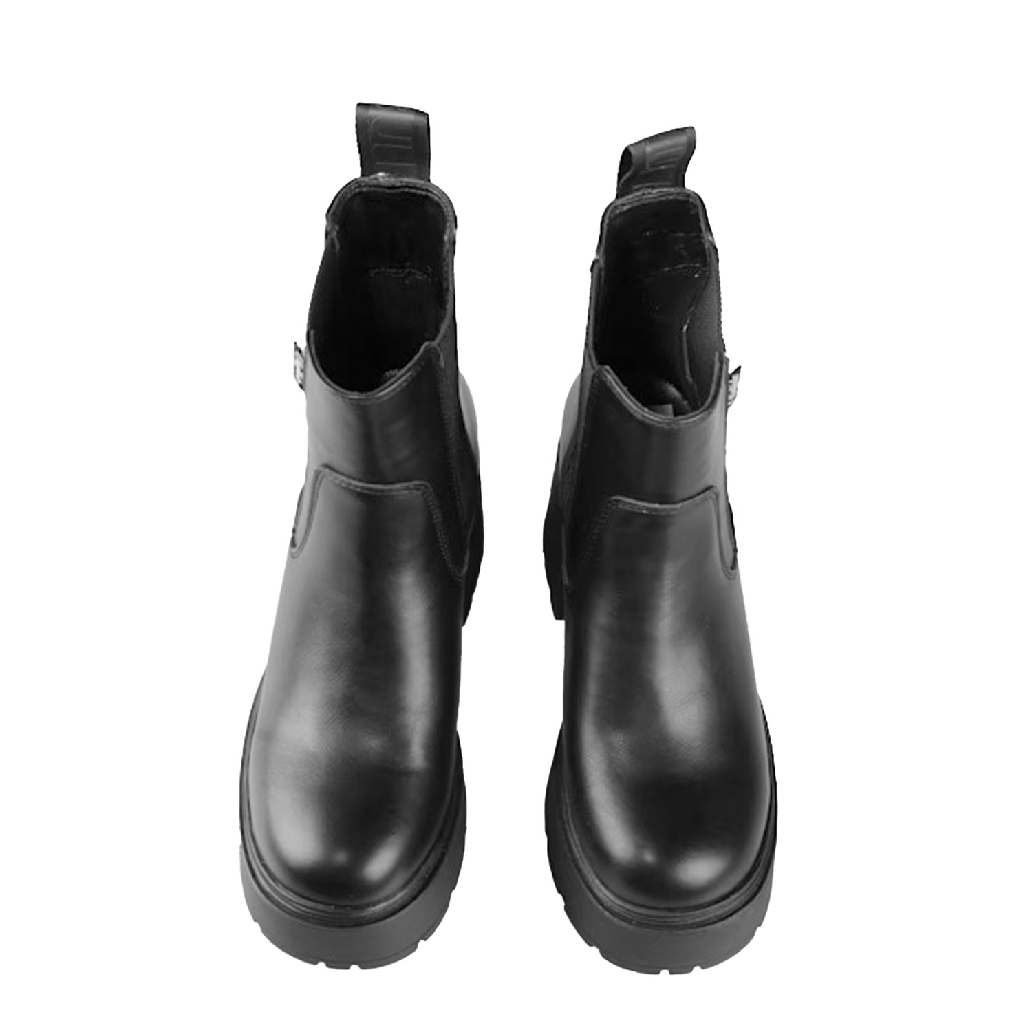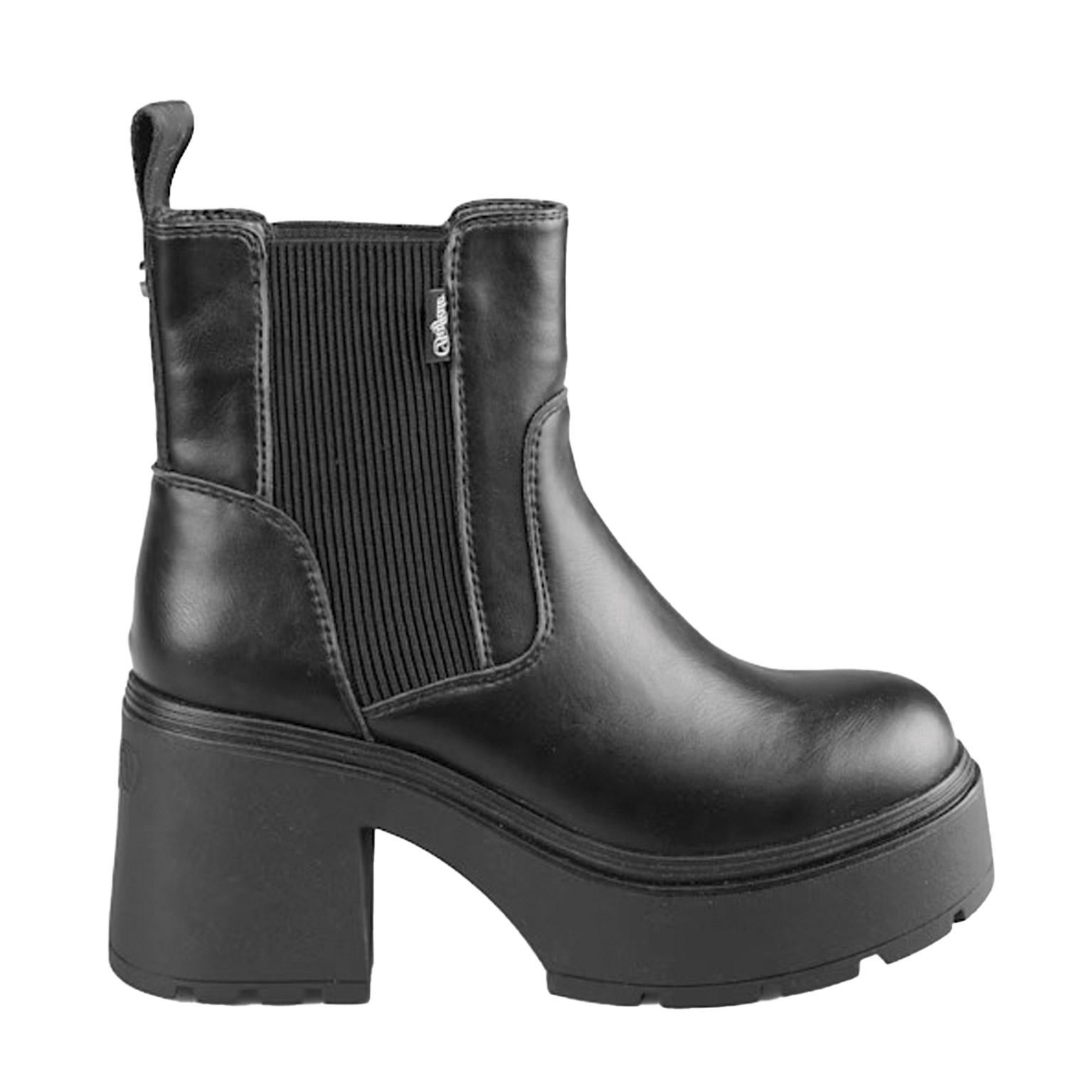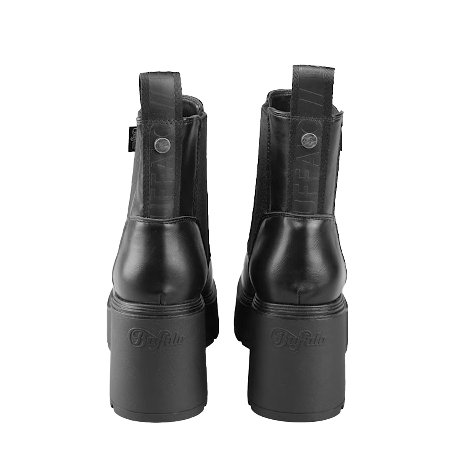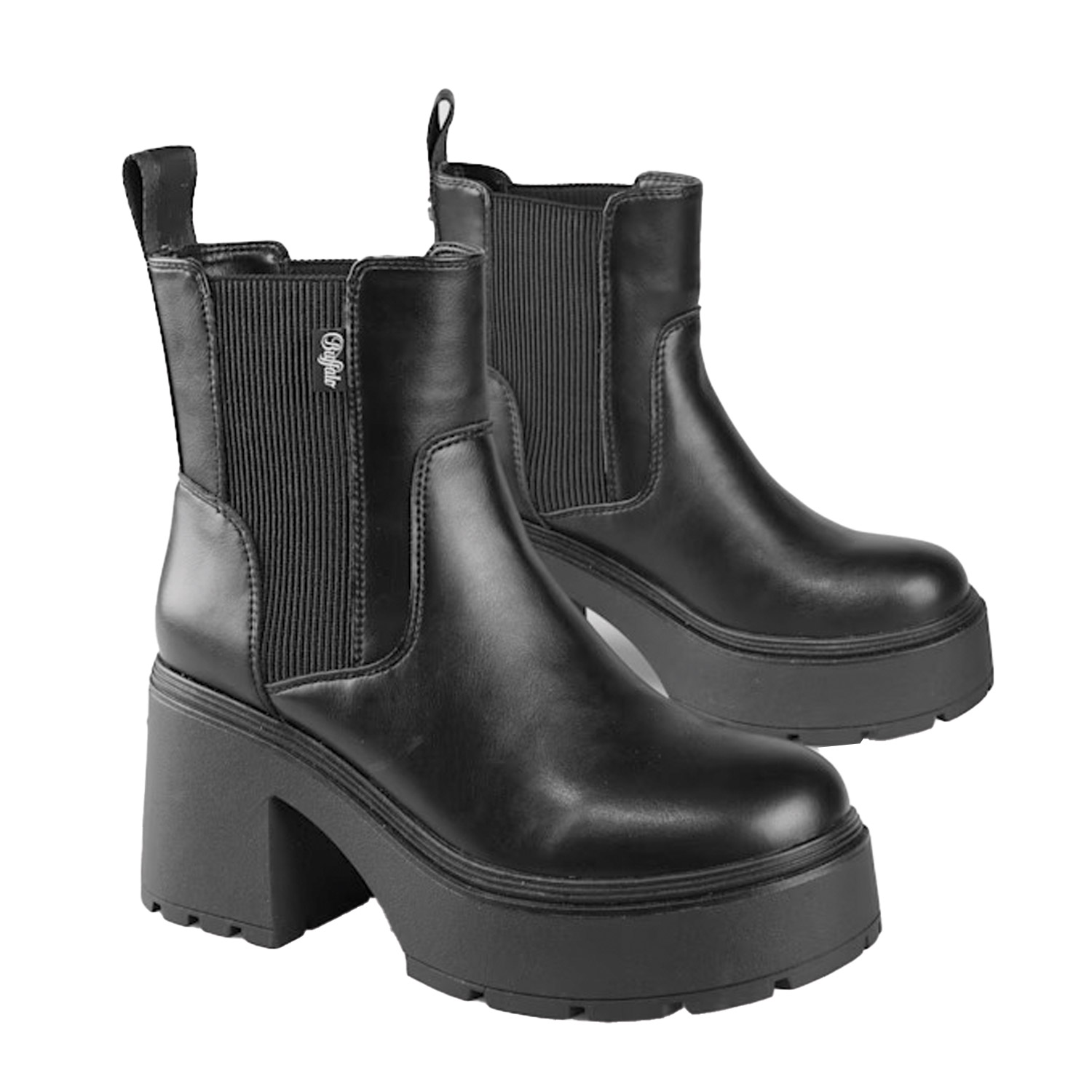 Buffalo γυναικείο μποτάκι, σε μαύρο χρώμα, κατασκευασμένο από οικολογικό δέρμα, με ανατομικό πάτο από memory foam. Ύψος τακουνιού 7εκ.