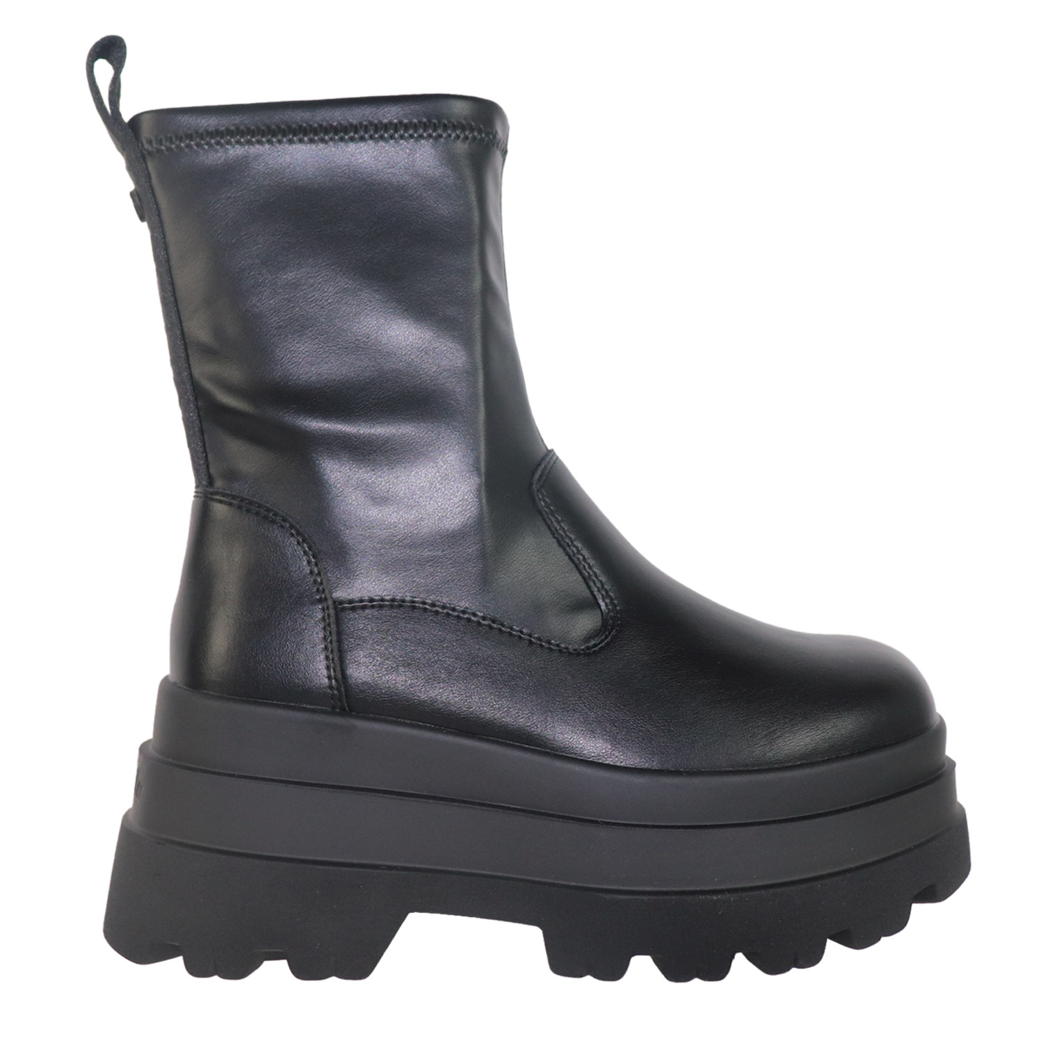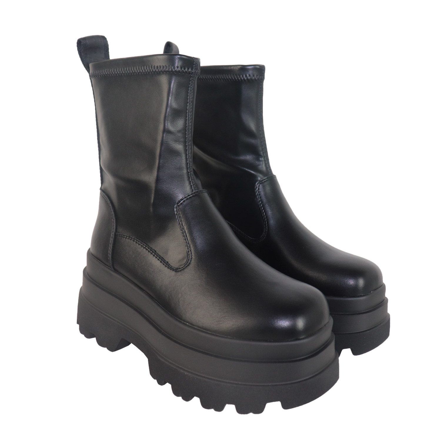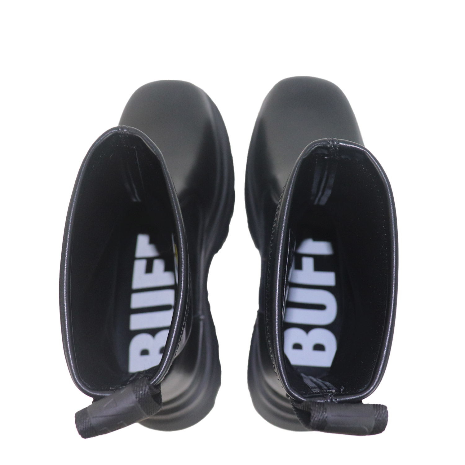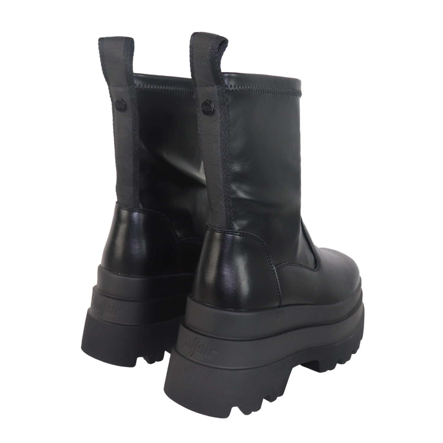 Buffalo γυναικείο μποτάκι, σε μαύρο χρώμα, κατασκευασμένο από οικολογικό δέρμα, με ανατομικό πάτο από memory foam. Ύψος τακουνιού 8εκ.