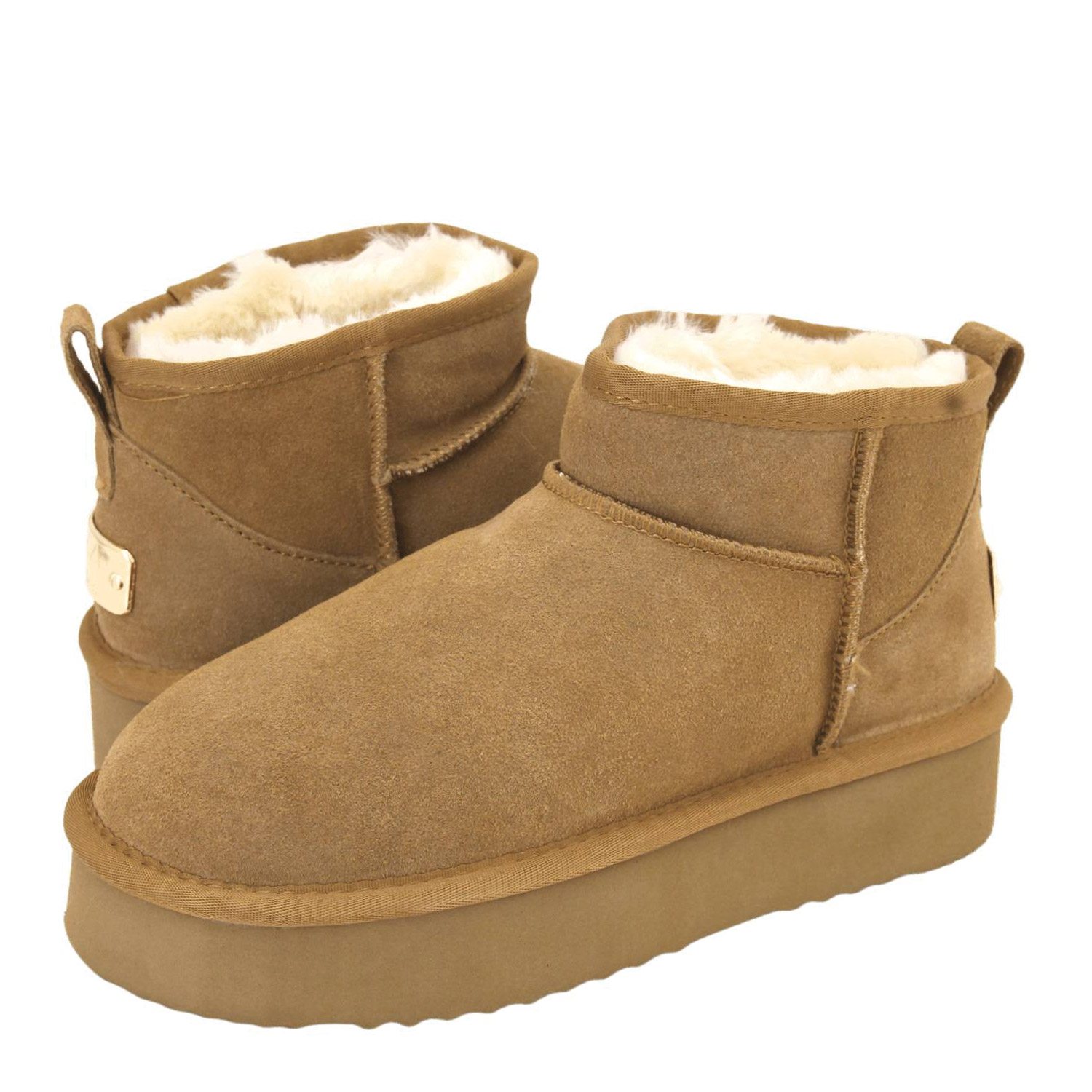 Gianna Kazakou γυναικείο μποτάκι, σε ταμπά χρώμα, κατασκευασμένο από δέρμα καστορι με γούνινη φόδρα. Ύψος τακουνιού 4εκ.