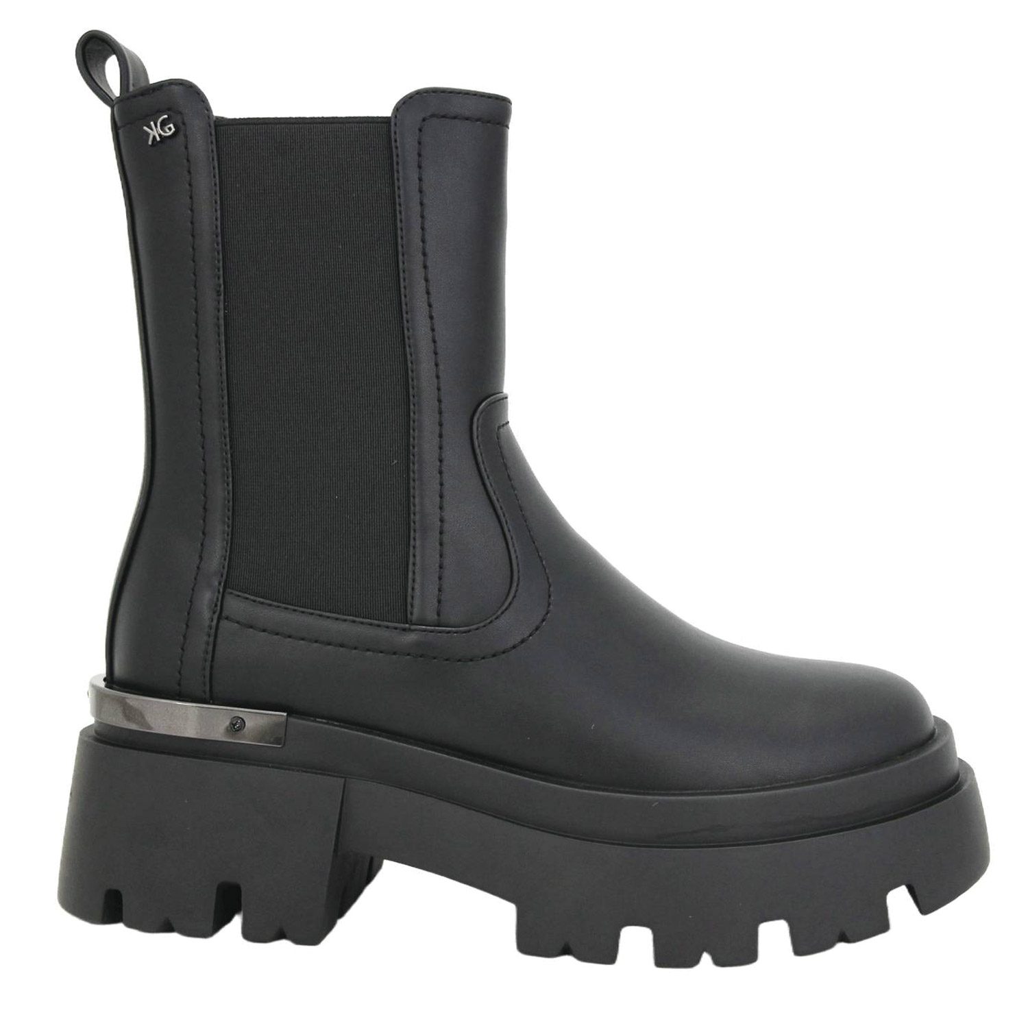 Gianna Kazakou γυναικείο μποτάκι, σε μαύρο χρώμα, κατασκευασμένο από οικολογικό δέρμα, με υφασμάτινη φόδρα. Ύψος τακουνιού 7εκ.