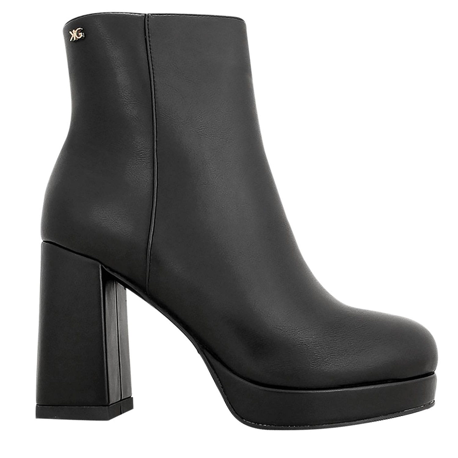 Gianna Kazakou γυναικείο μποτάκι, σε μαύρο χρώμα, κατασκευασμένο από οικολογικό δέρμα, με υφασμάτινη φόδρα. Ύψος τακουνιού 10εκ.