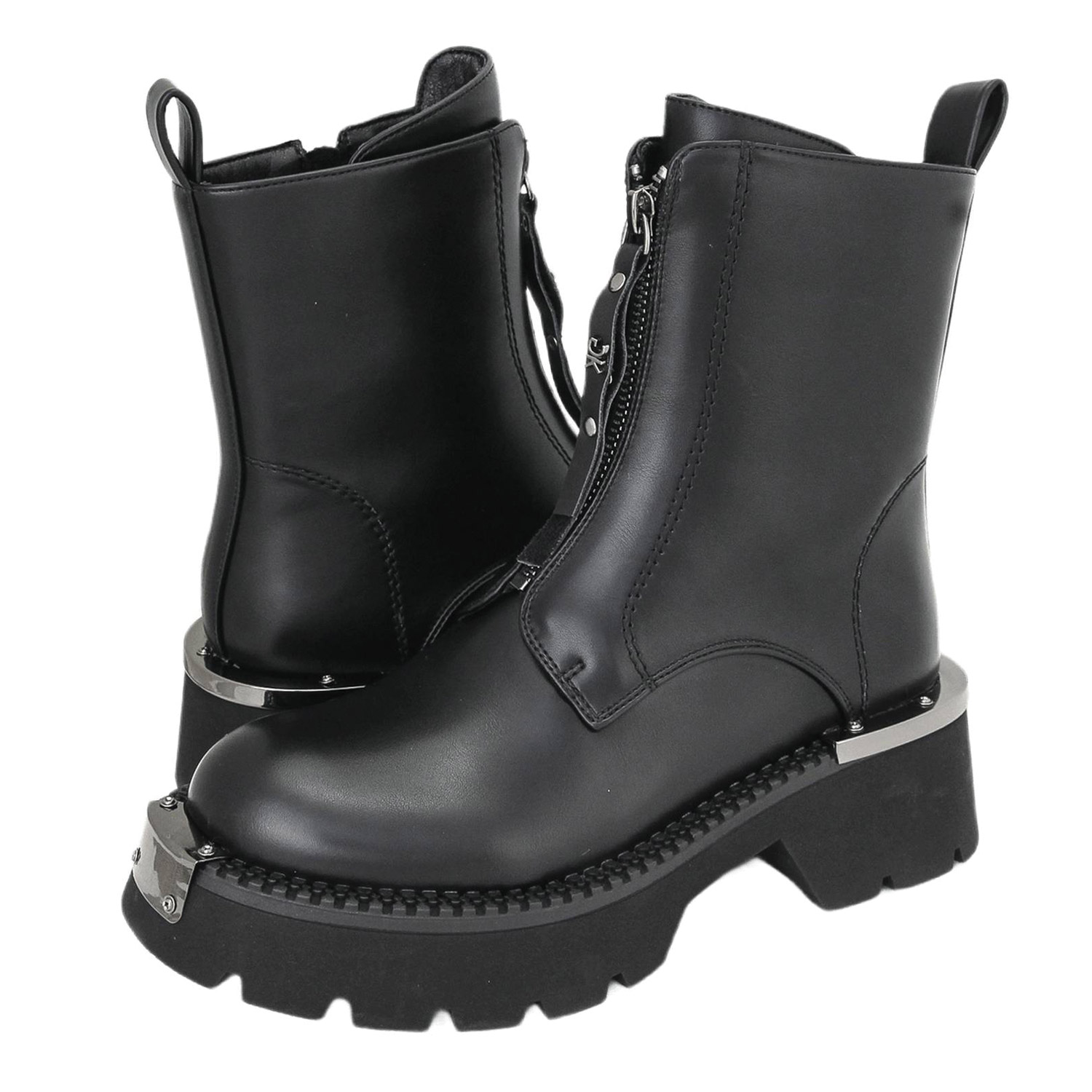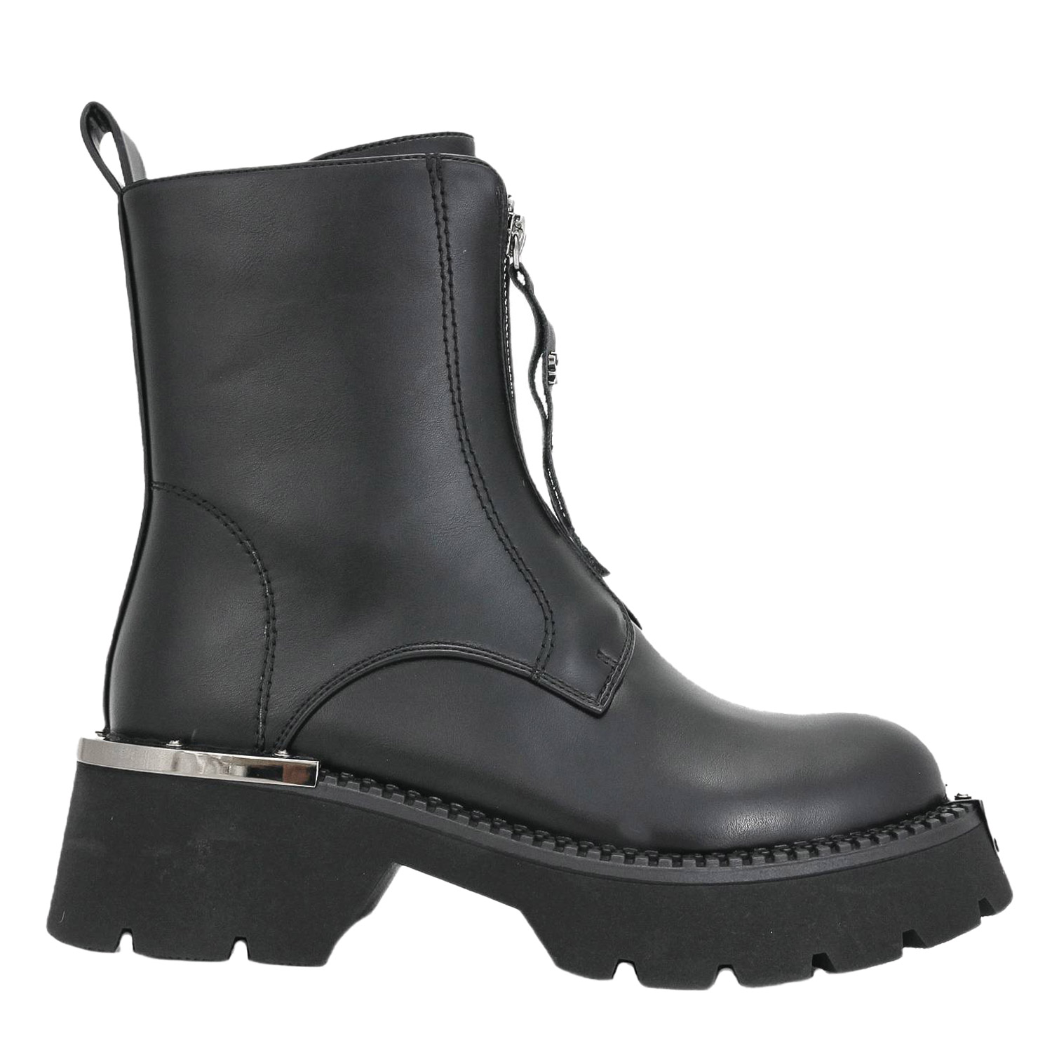 Gianna Kazakou γυναικείο μποτάκι, σε μαύρο χρώμα, κατασκευασμένο από οικολογικό δέρμα, με υφασμάτινη φόδρα. Ύψος τακουνιού 5.5εκ.