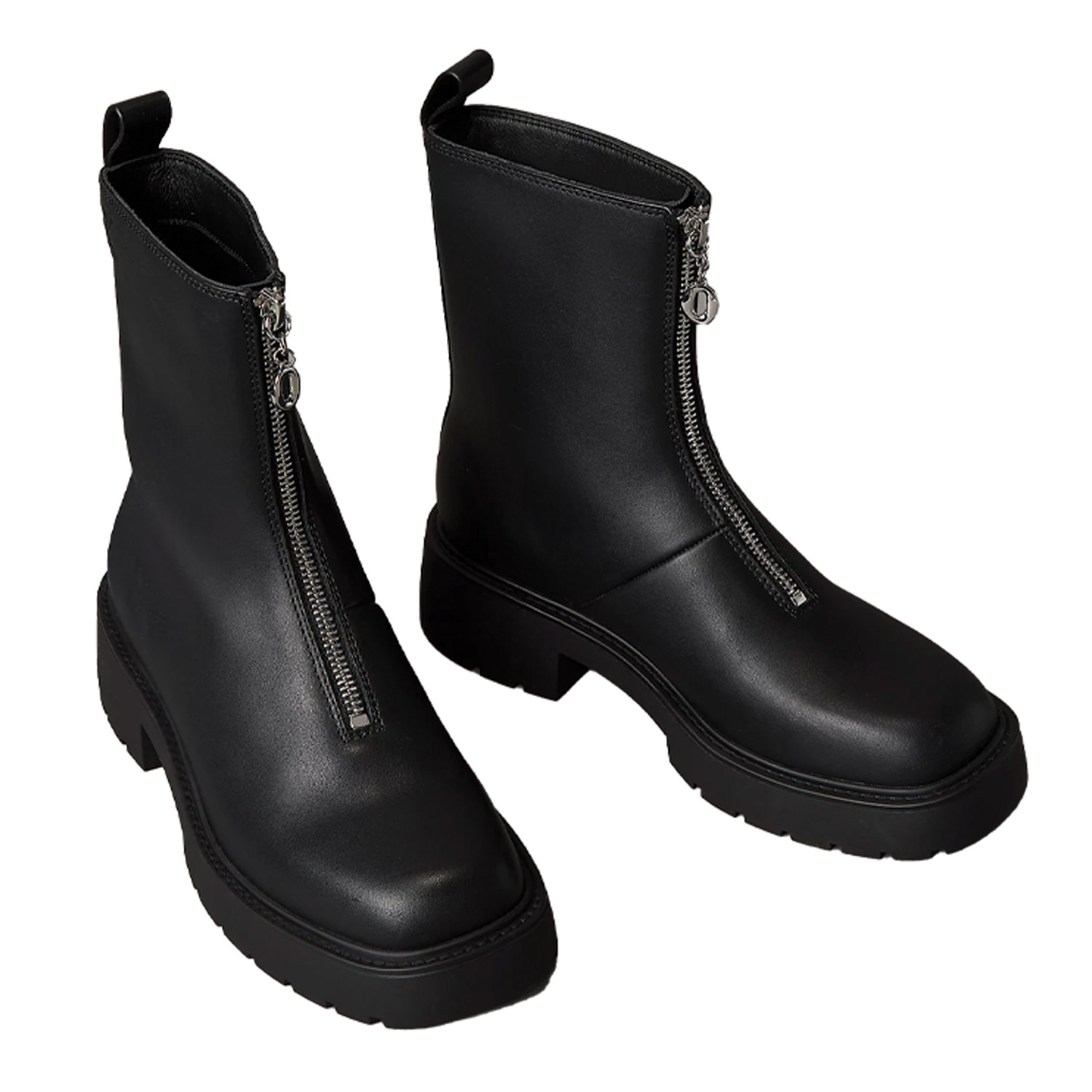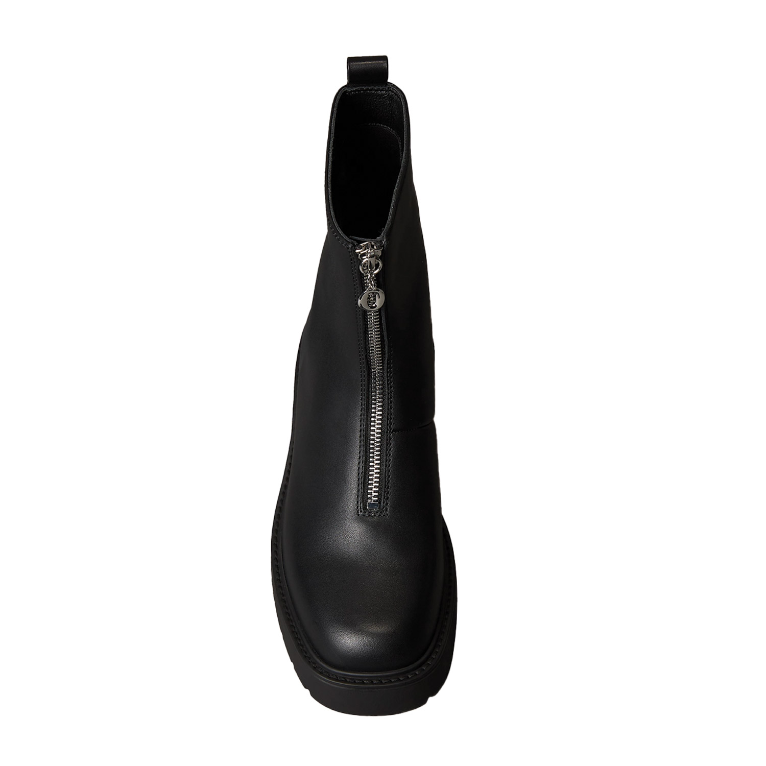 Calvin Klein γυναικείο μποτάκι, σε μαύρο χρώμα, κατασκευασμένο από δέρμα. Ύψος τακουνιού 5εκ.