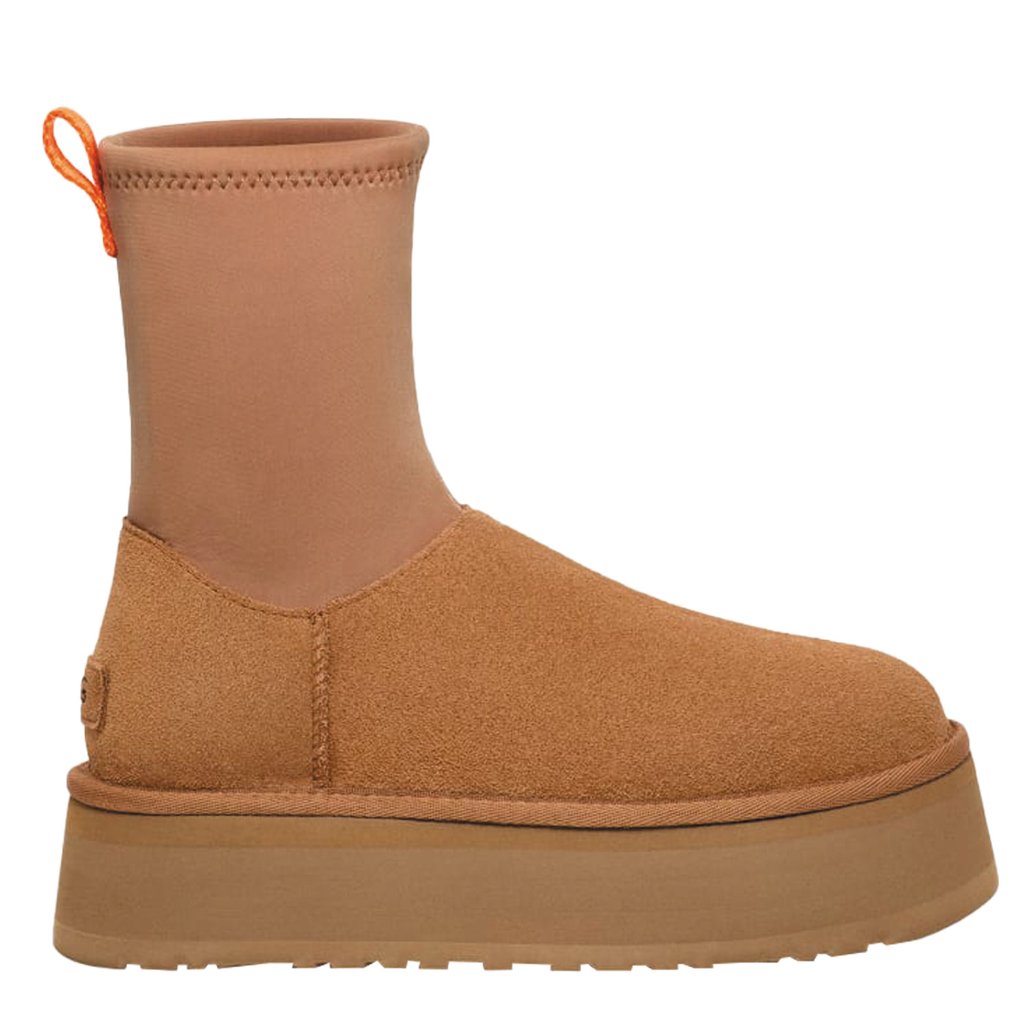 Ugg γυναικείο μποτάκι σε ταμπά χρώμα κατασκευασμένο από δέρμα καστόρι και λάστιχο. Ύψος σόλας 4εκ.