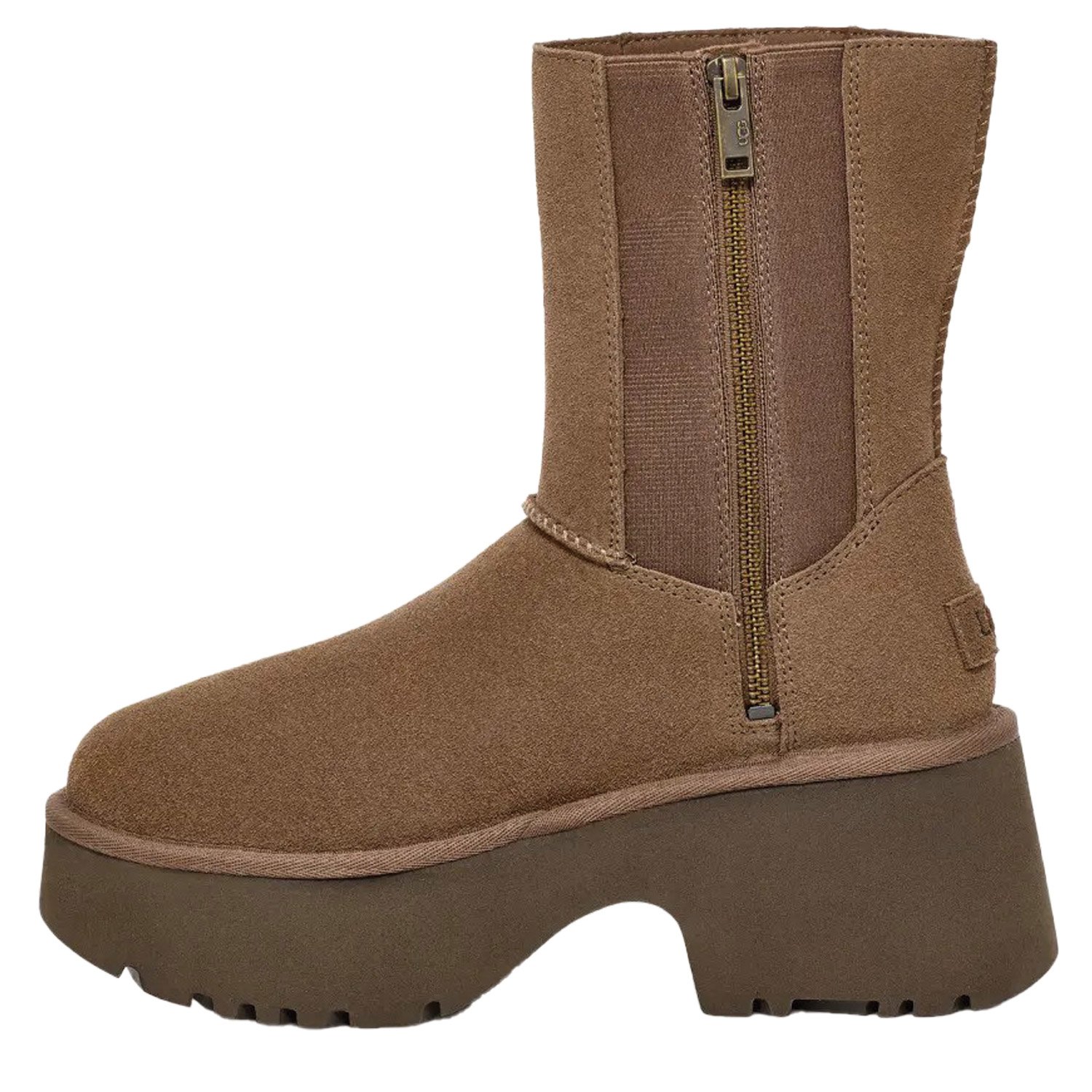Ugg γυναικείο μποτάκι, σε ταουπέ χρώμα, κατασκευασμένο από δέρμα καστόρι. Ύψος τακουνιού 7.5εκ.