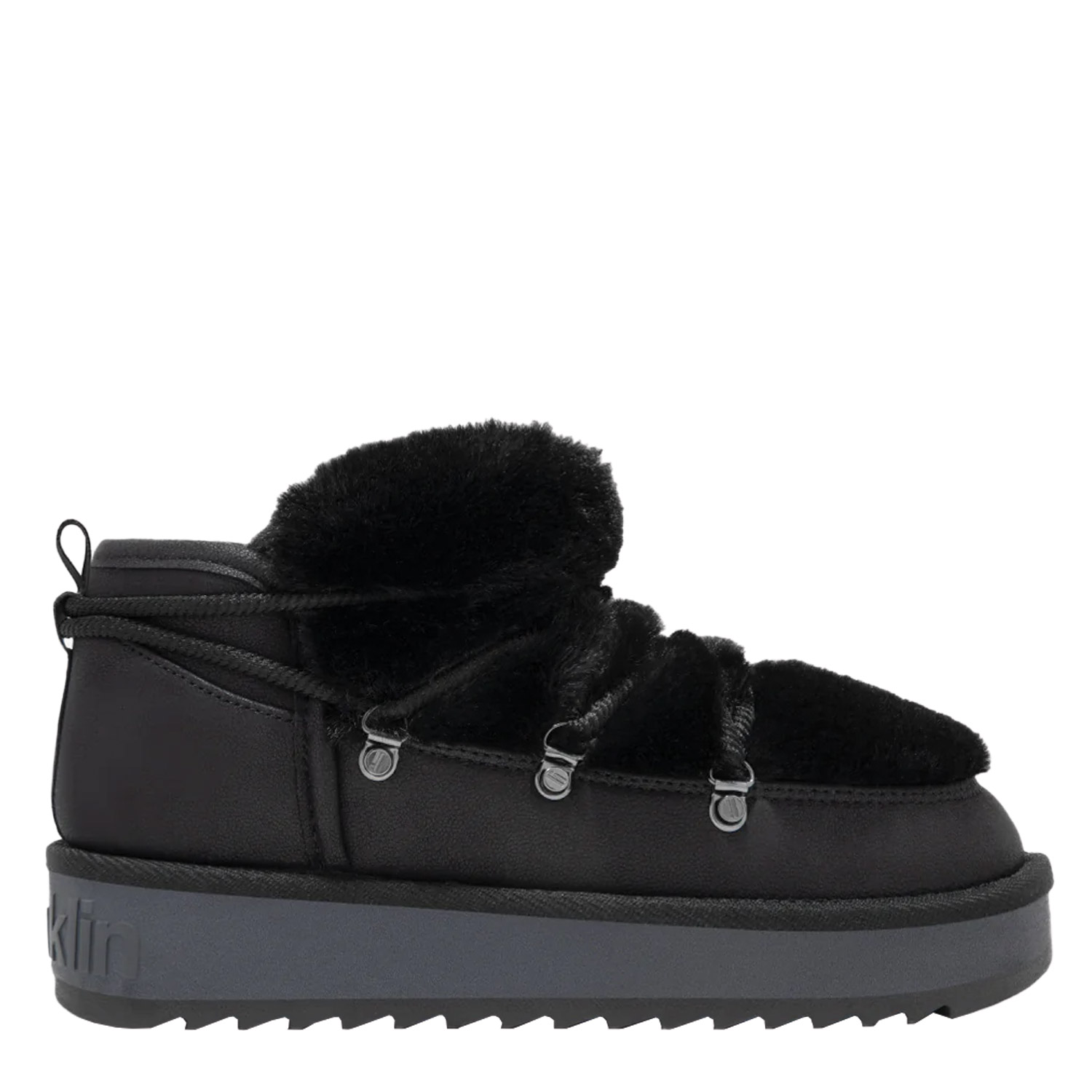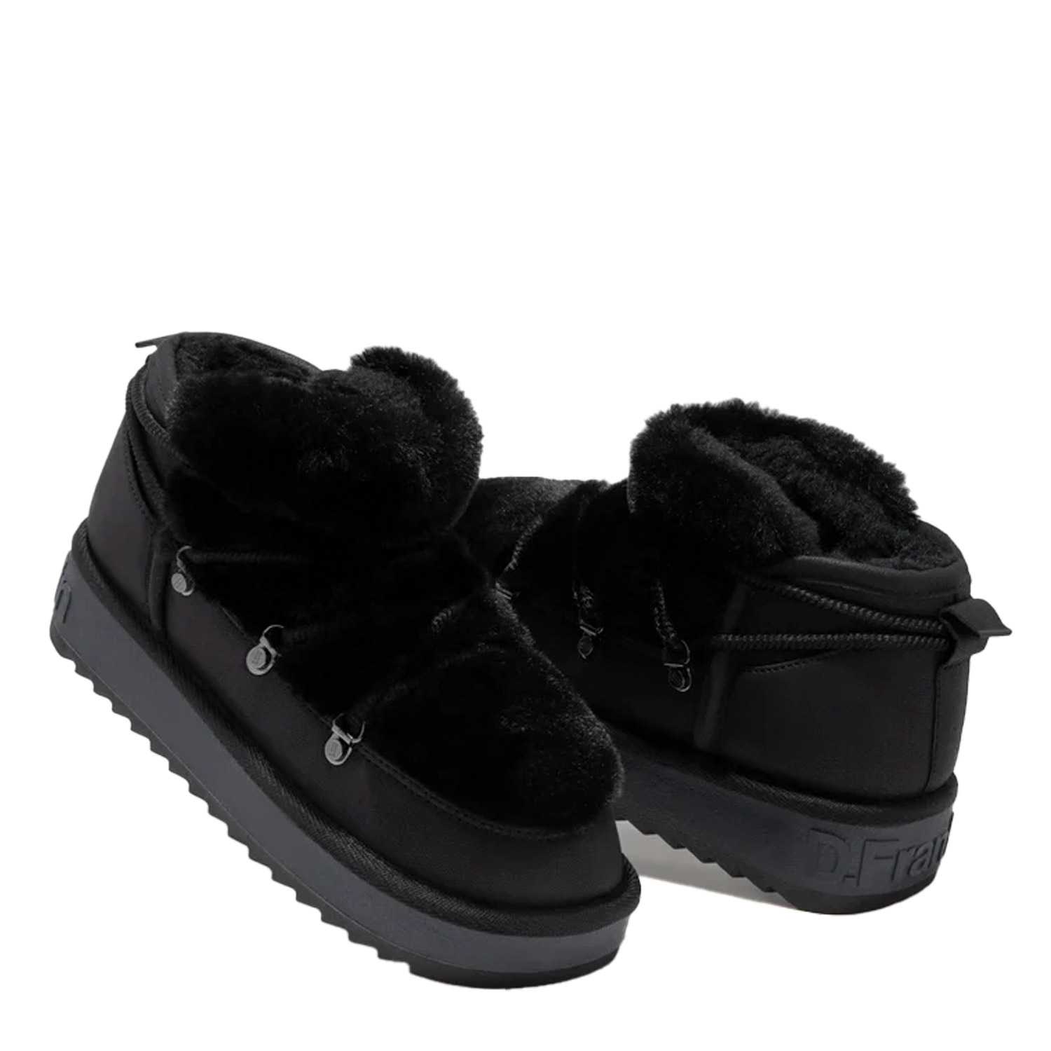 D.Franklin γυναικείο μποτάκι, σε μαύρο χρώμα, κατασκευασμένο από οικολογικό δέρμα και γούνα. Ύψος σόλας 3εκ.