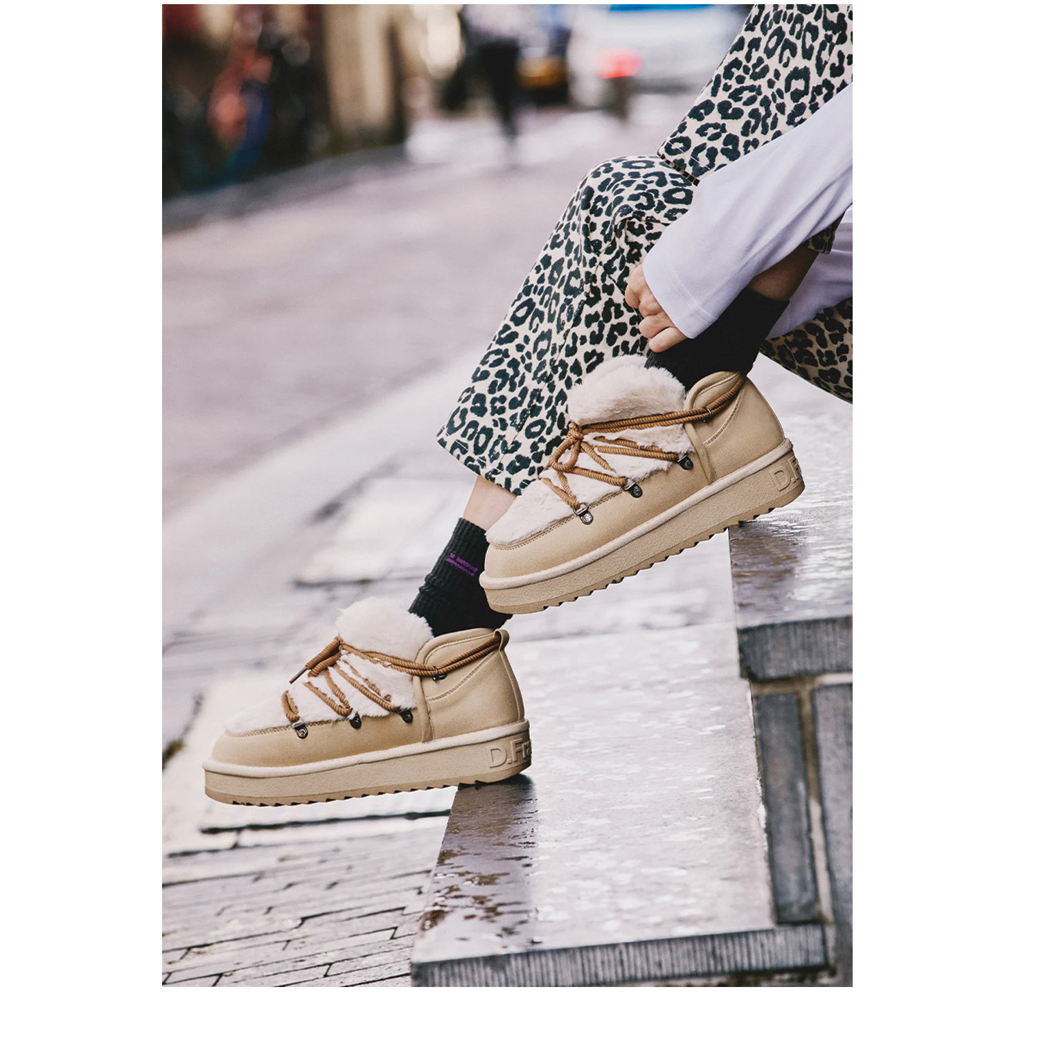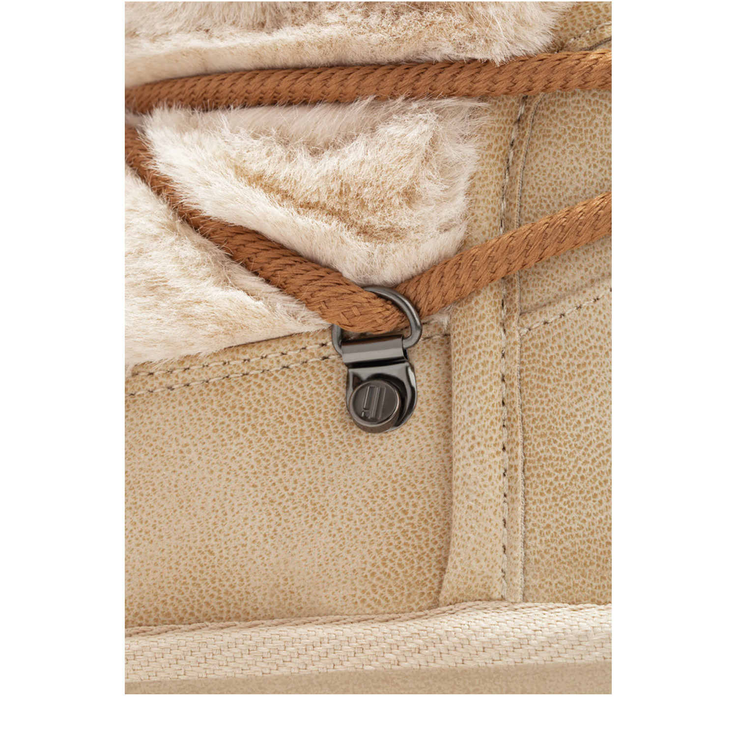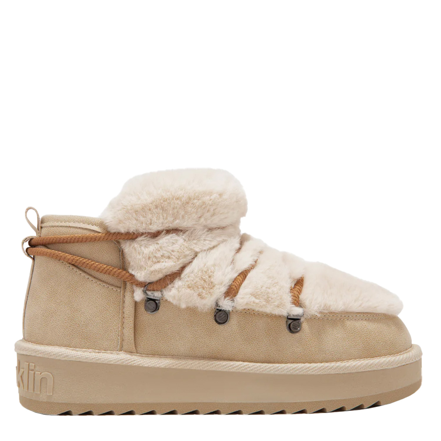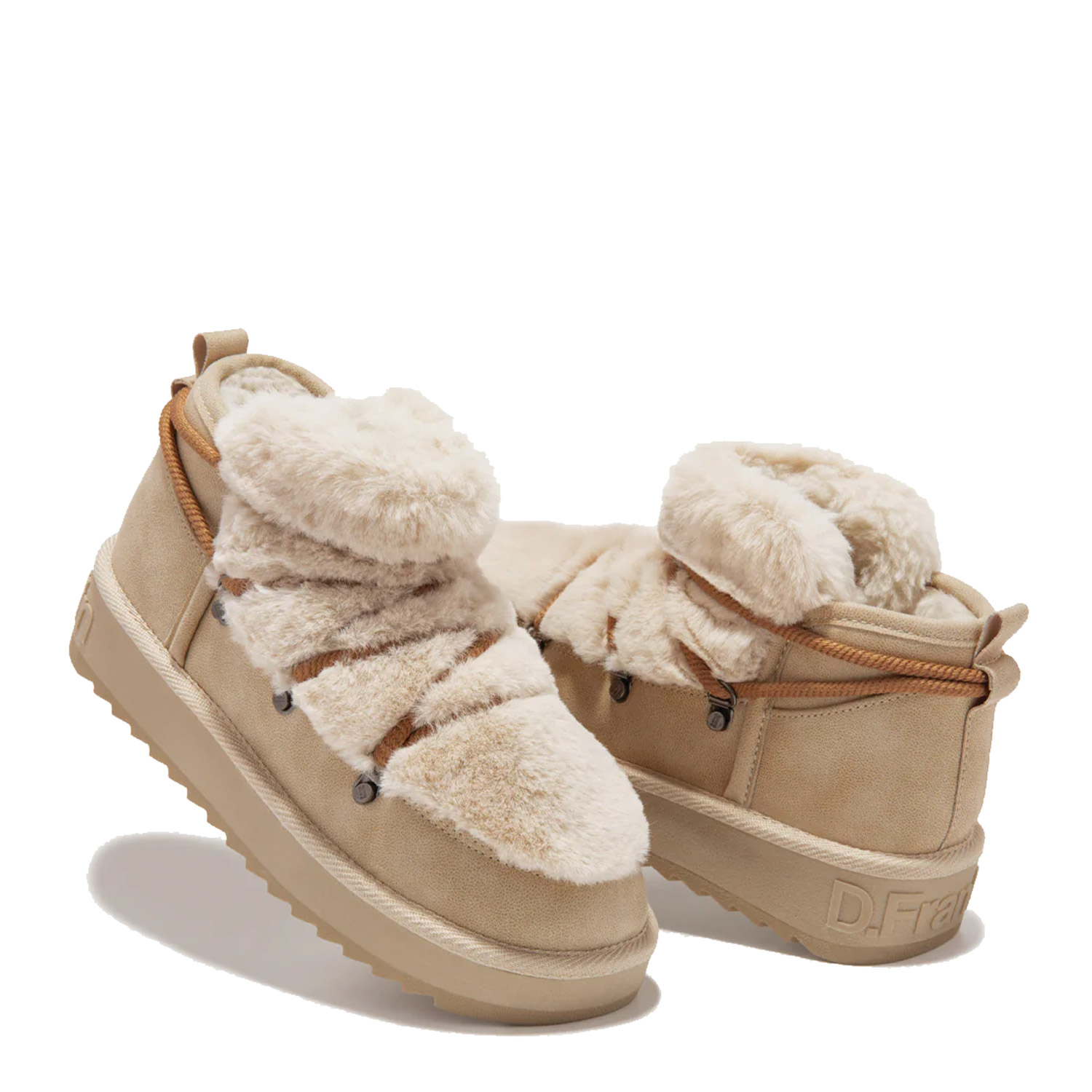 D.Franklin γυναικείο μποτάκι, σε μπεζ χρώμα, κατασκευασμένο από οικολογικό δέρμα και γούνα. Ύψος σόλας 3εκ.