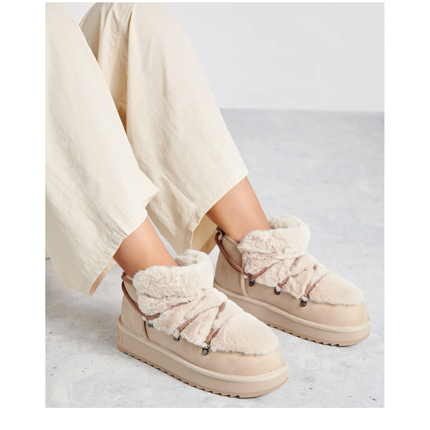 Σχεδιασμός μποτών αστραγάλου σε μπεζ αποχρώσεις με συνθετική εσωτερική επένδυση για ανώτερη ζεστασιά.