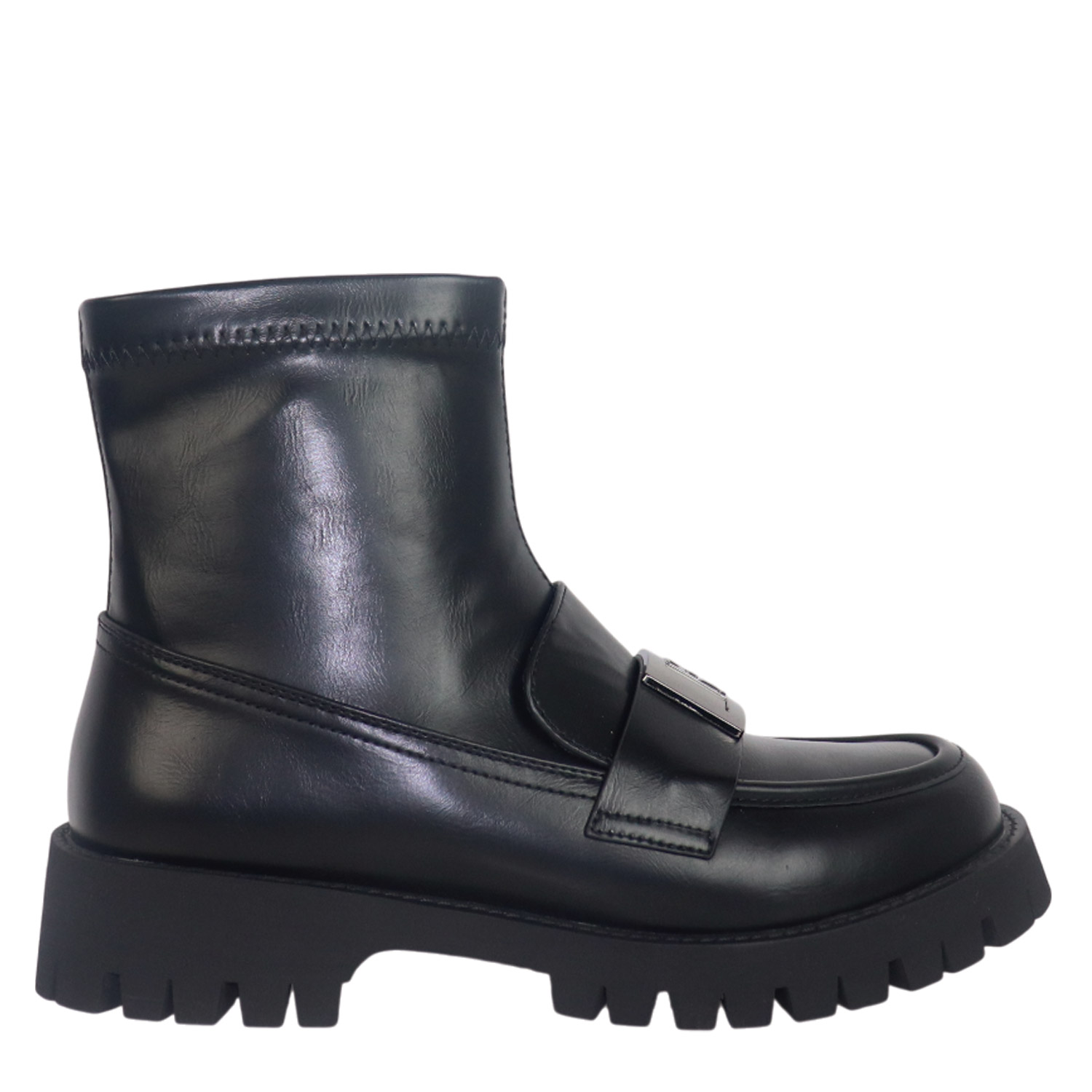 Loveberry γυναικείο μποτάκι, σε μαύρο χρώμα, κατασκευασμένο από οικολογικό δέρμα. Ύψος τακουνιού 4εκ.