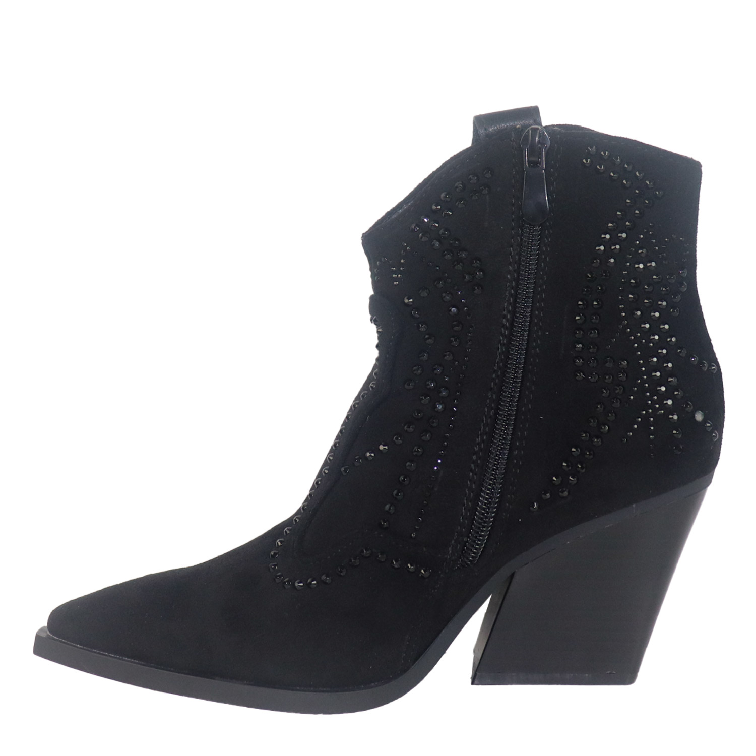 Koniarisshoes γυναικείο μποτάκι, σε μαύρο χρώμα, κατασκευασμένο από οικολογικό καστόρι. Ύψος τακουνιού 8εκ.