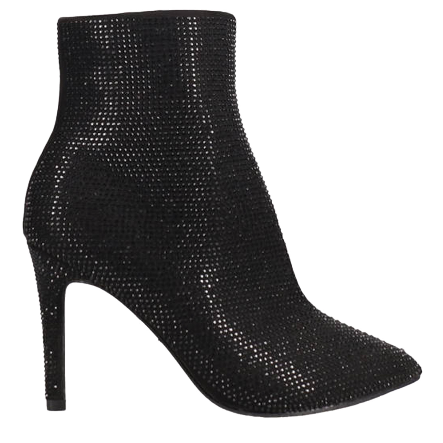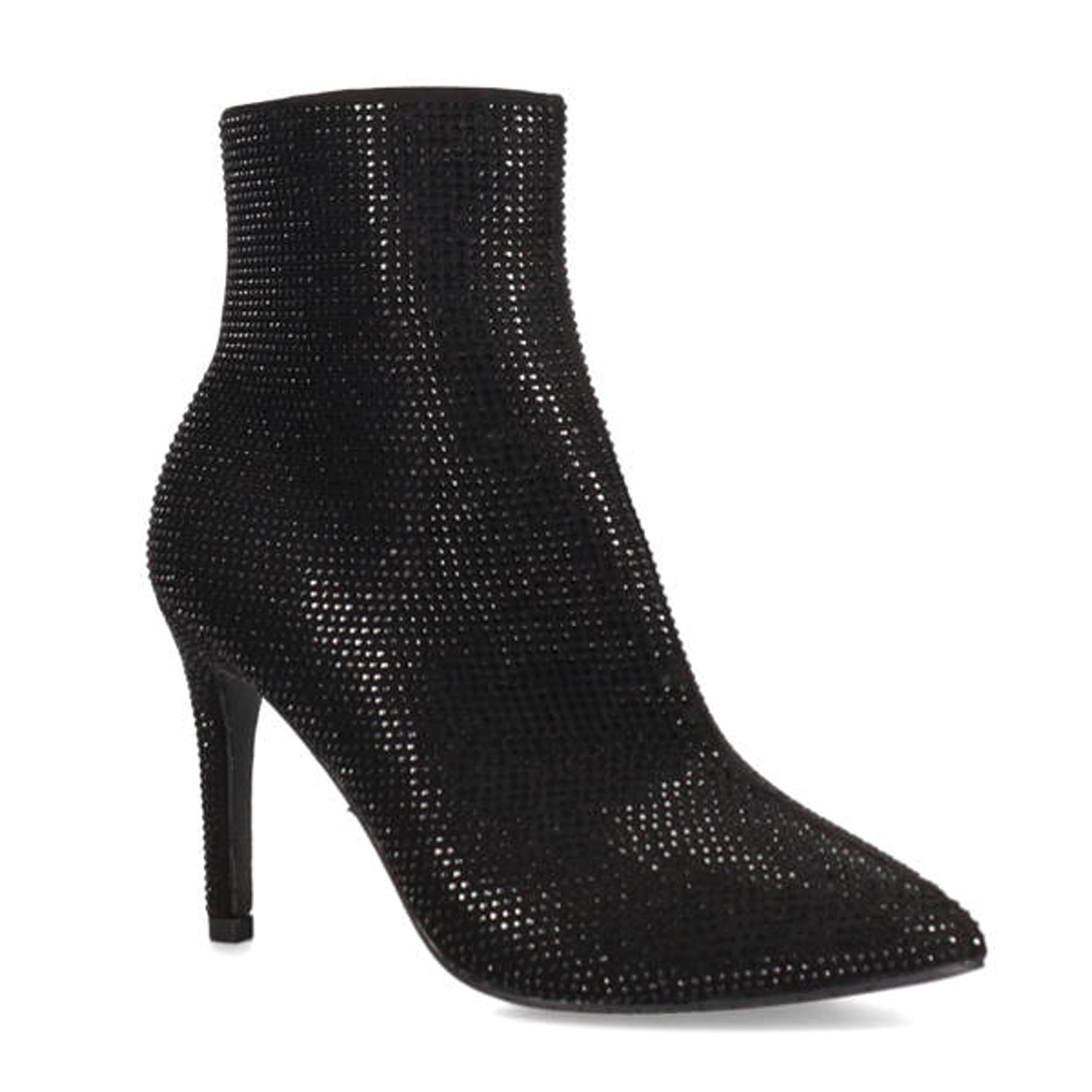 Μαύρο μποτάκι με στρας μέχρι πάνω από τον αστράγαλο. Κλείνει με φερμουάρ.