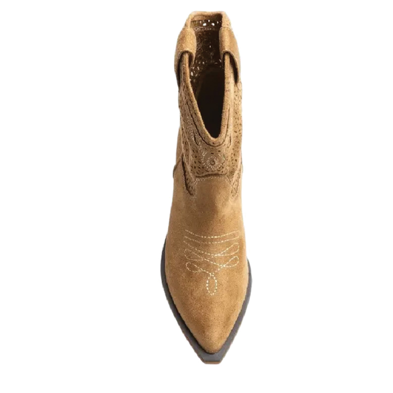 Μποτάκι σε στιλ καουμπόι με μοντέρνα αισθητική και κομψές λεπτομέρειες που κάνουν τη διαφορά. Οι κεντημένες λεπτομέρειες στη μύτη και στο στέλεχος αναδεικνύουν τον αυθεντικό western χαρακτήρα της. Ένα σχέδιο που μπορεί να φορεθεί από το πρωί έως το βράδυ, δίνοντας ξεχωριστό ύφος σε κάθε σου outfit — από jeans και φορέματα μέχρι φούστες.