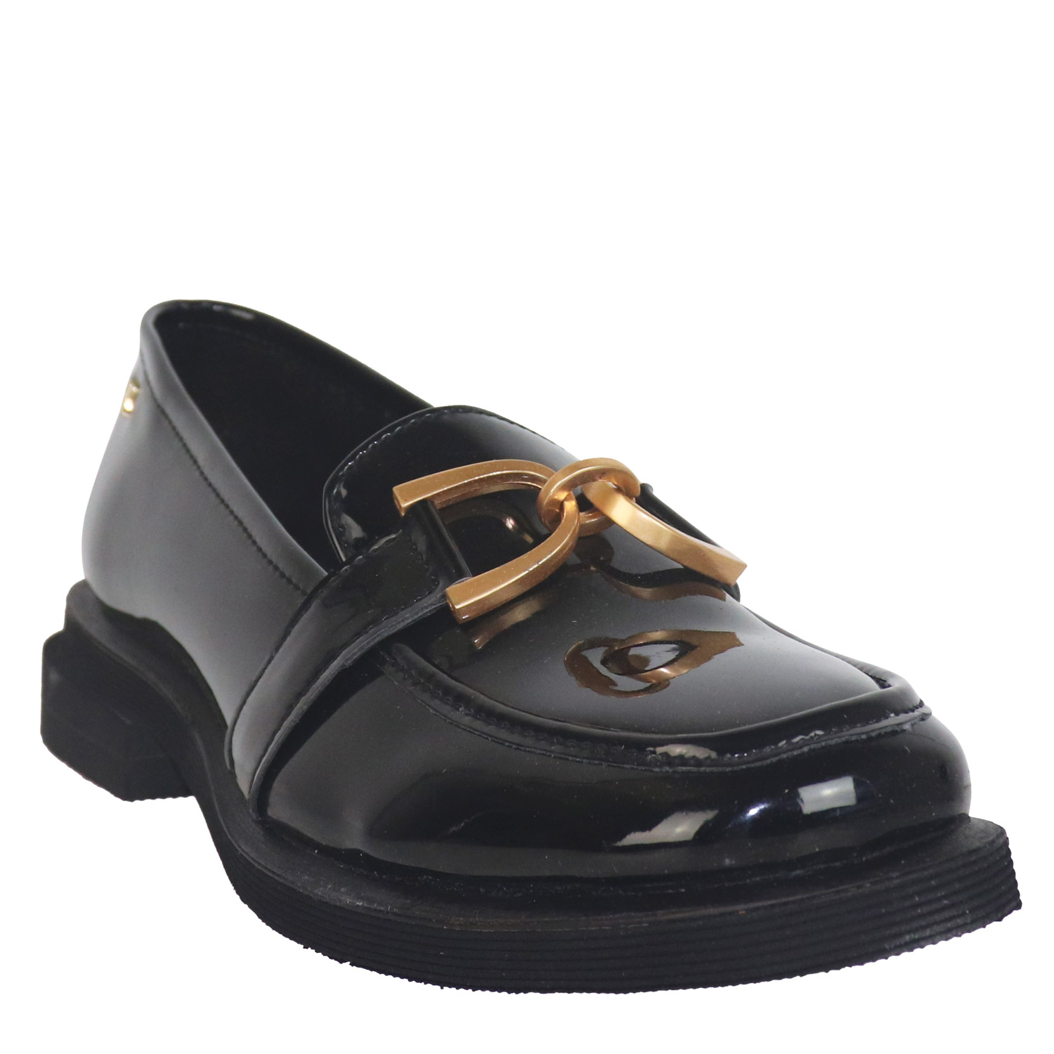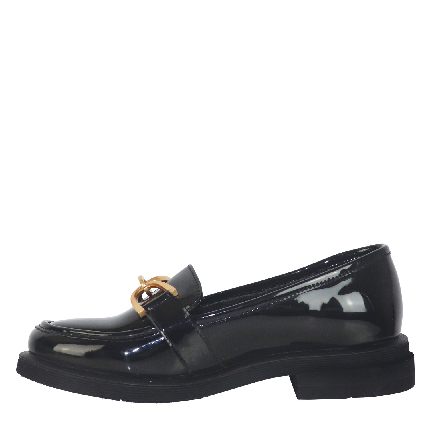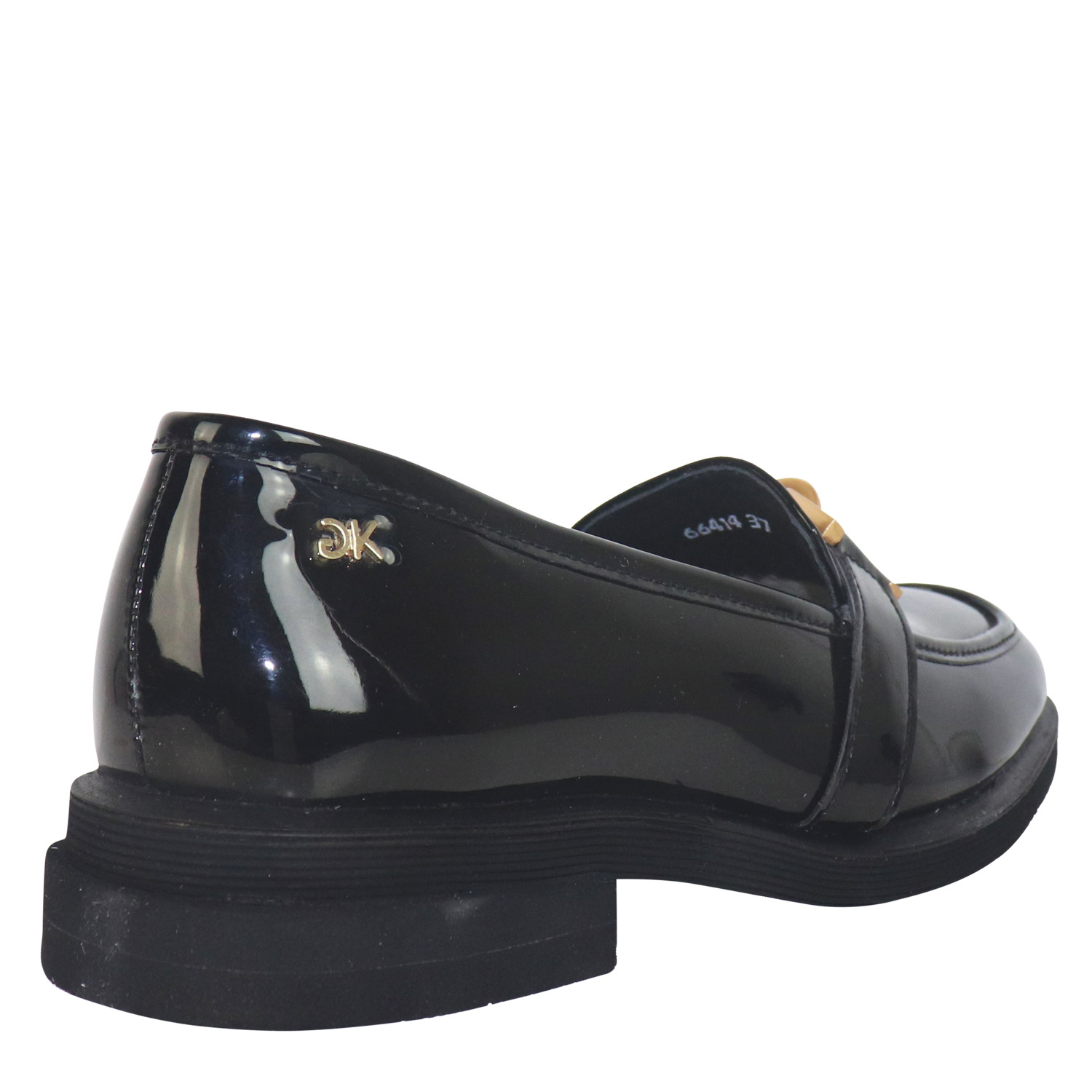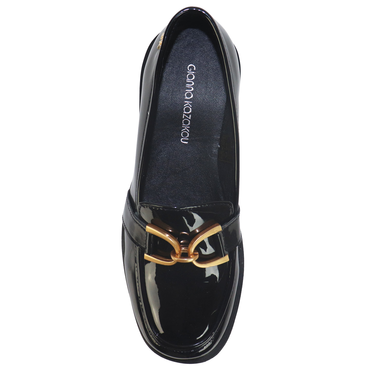 Gianna Kazakou γυναικείο μοκασίνι, σε μαύρο χρώμα, κατασκευασμένο από λουστρίνι. Υψος τακουνιού 3.5εκ.
