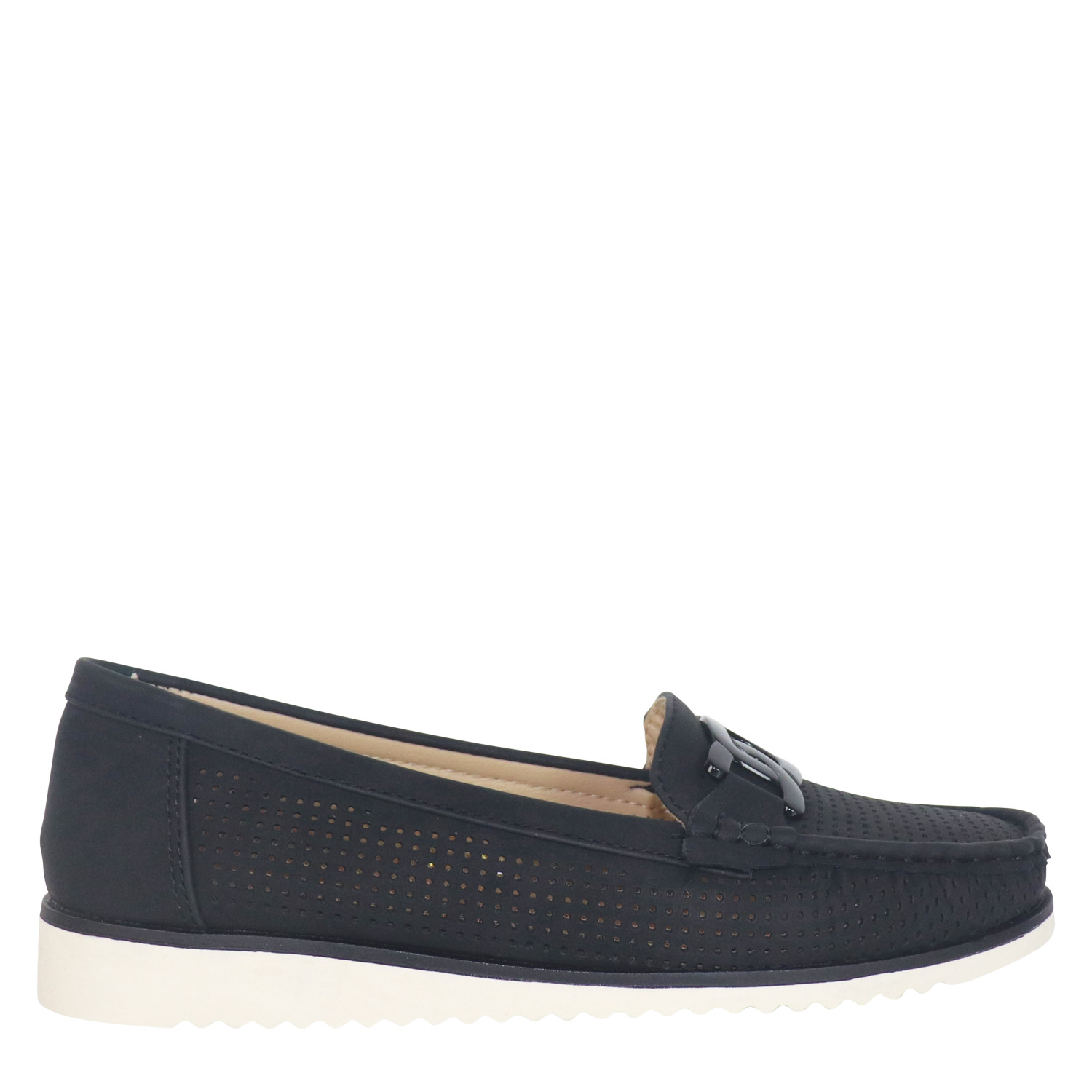 Migato γυναικείο μοκασίνι, σε μαύρο χρώμα, κατασκευασμένο από οικολογικό δέρμα. Ύψος τακουνιού 2εκ.