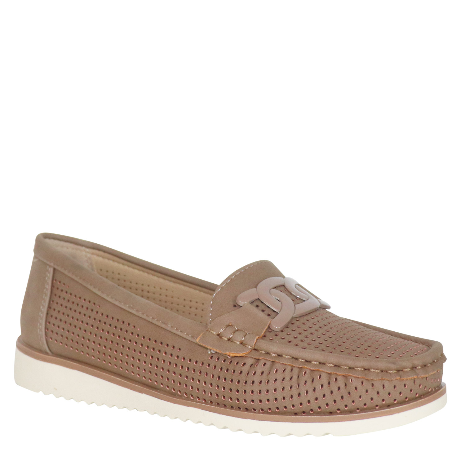 Migato γυναικείο μοκασίνι, σε ταουπέ χρώμα, κατασκευασμένο από οικολογικό δέρμα. Ύψος τακουνιού 2εκ.