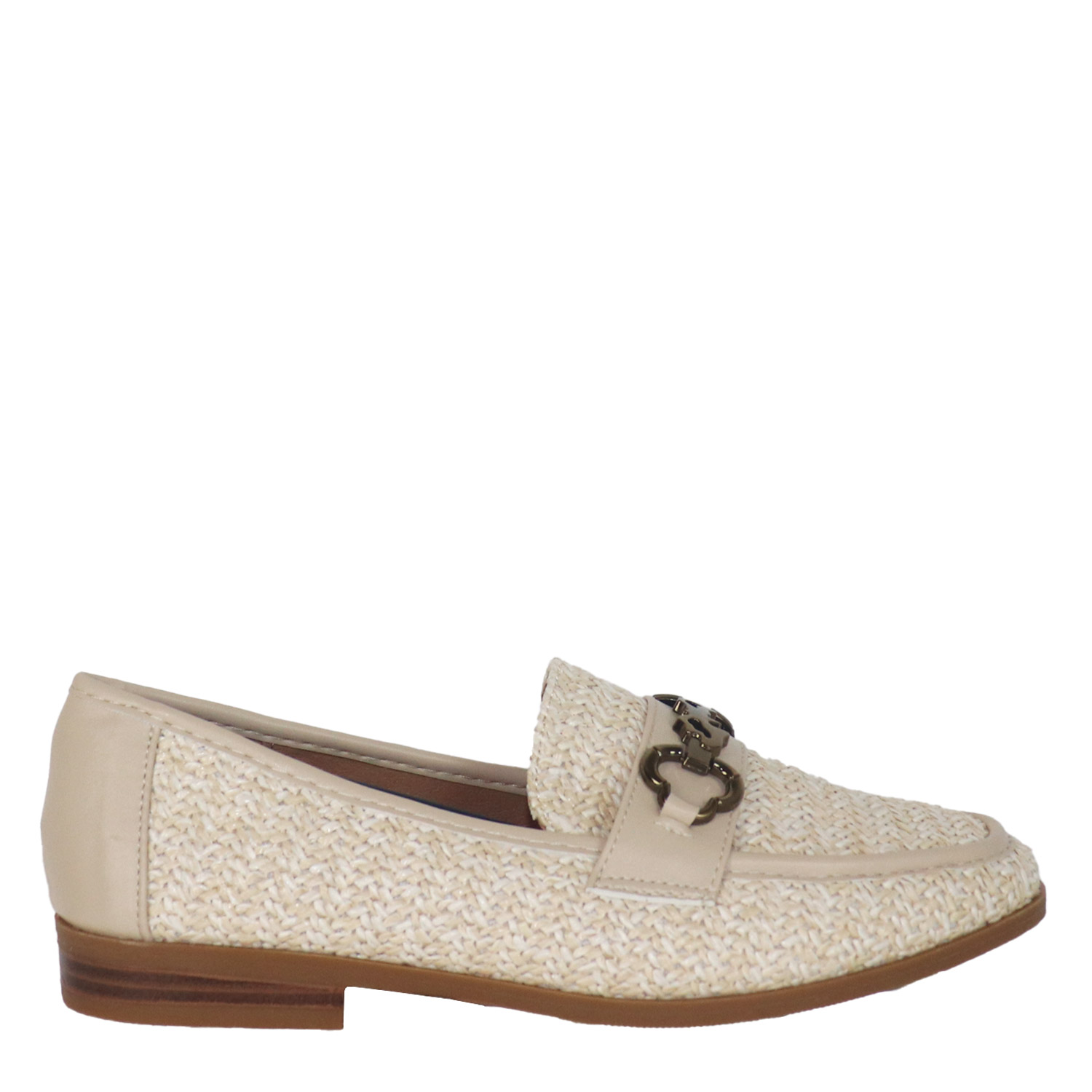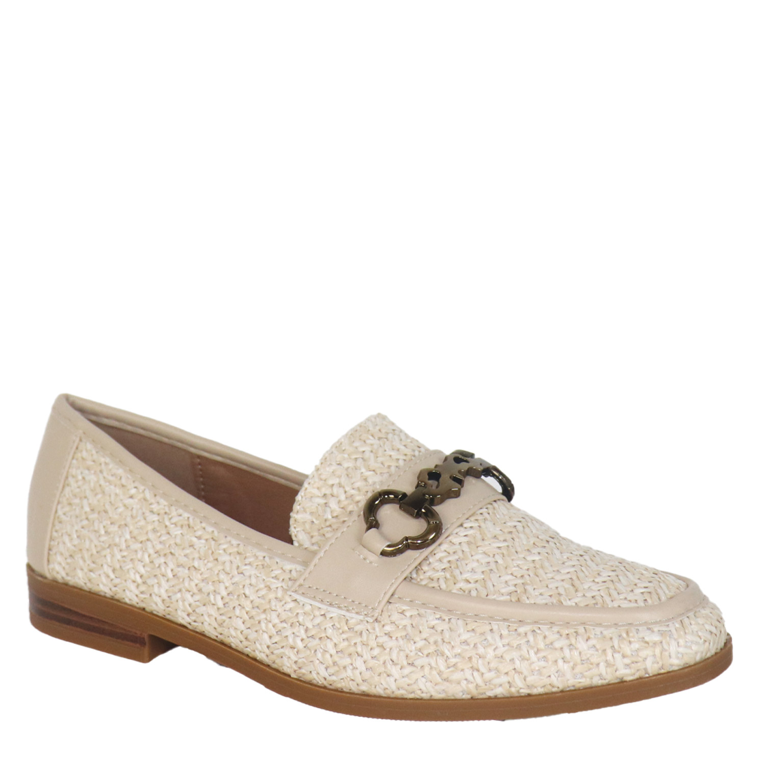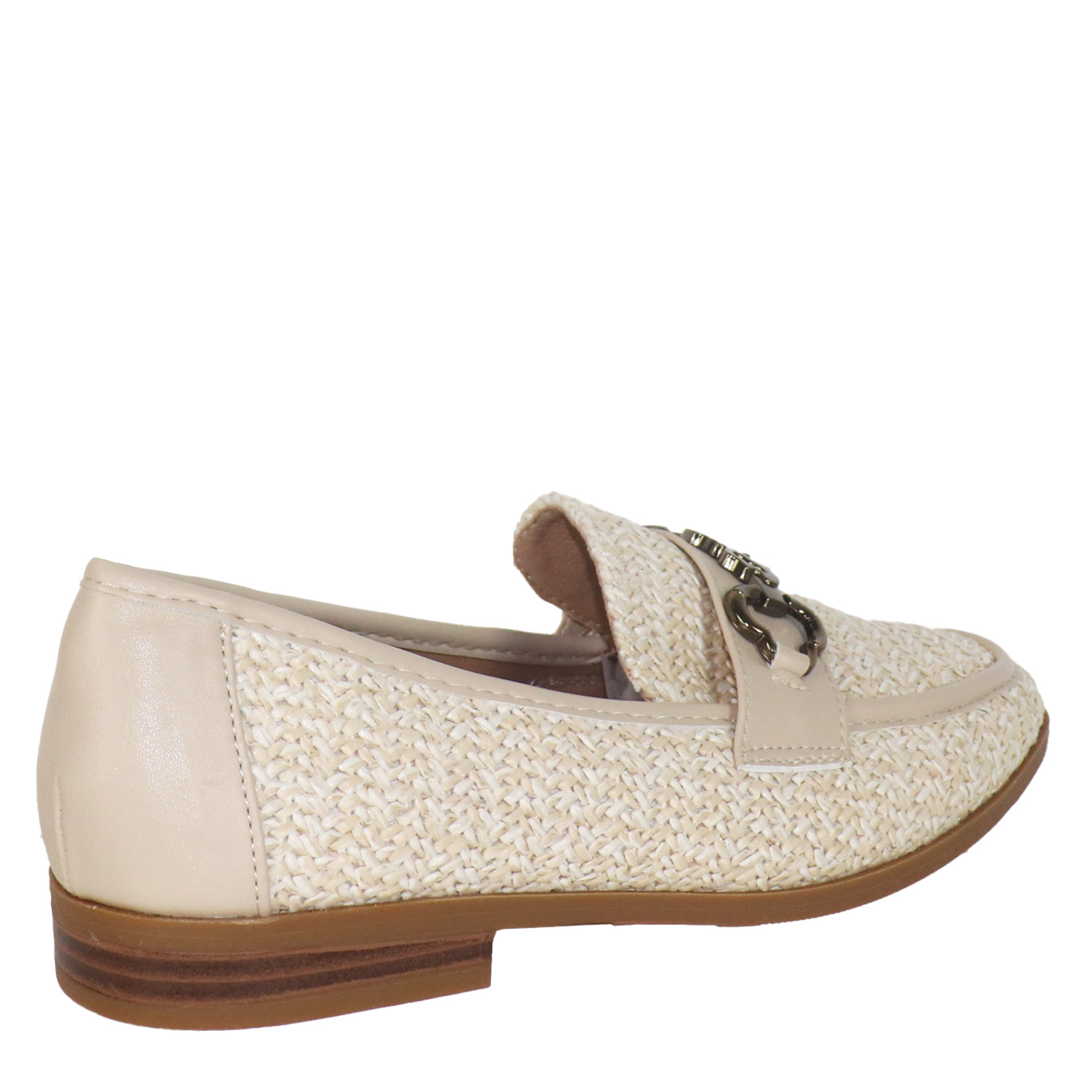 Migato γυναικείο μοκασίνι σε μπεζ χρώμα κατασκευασμένο από ψάθα. Ύψος τακουνιού 2εκ.