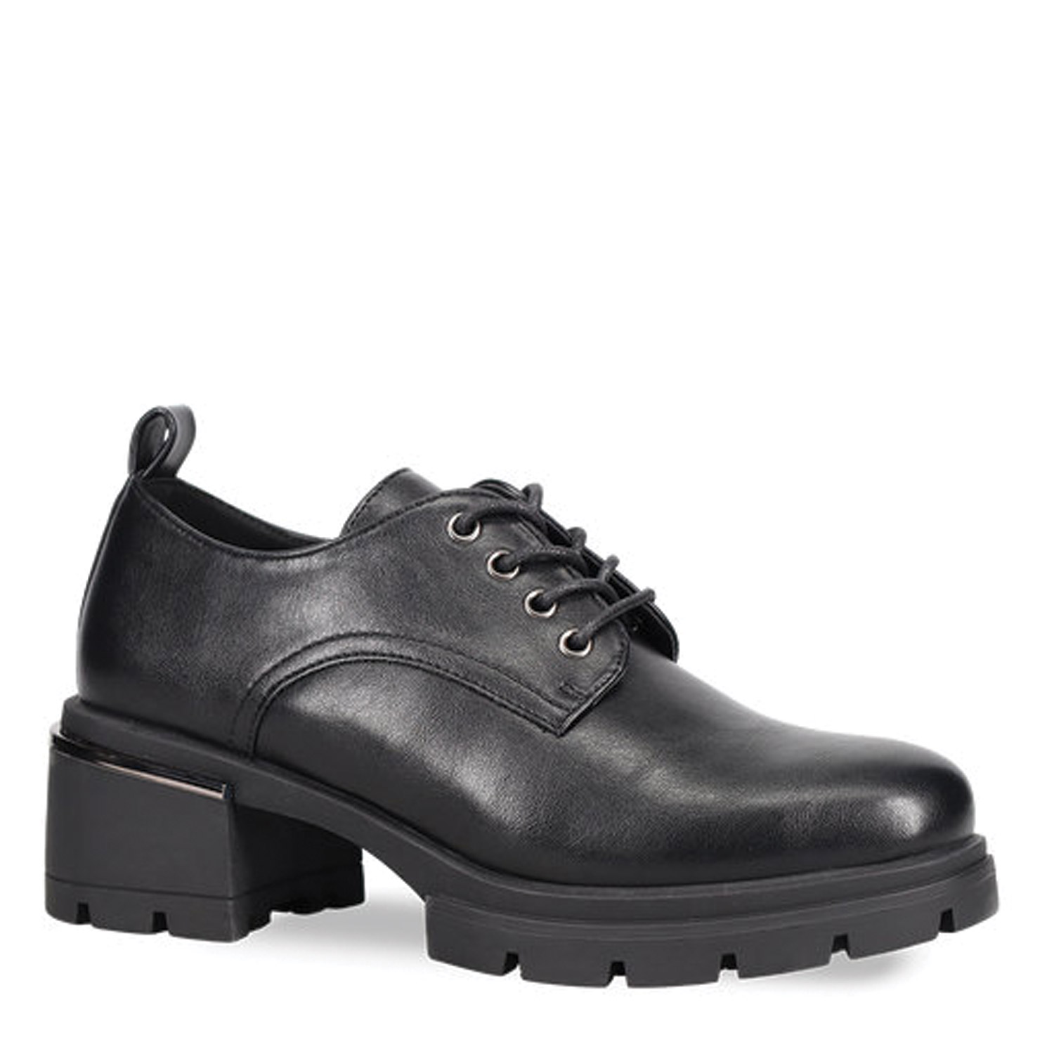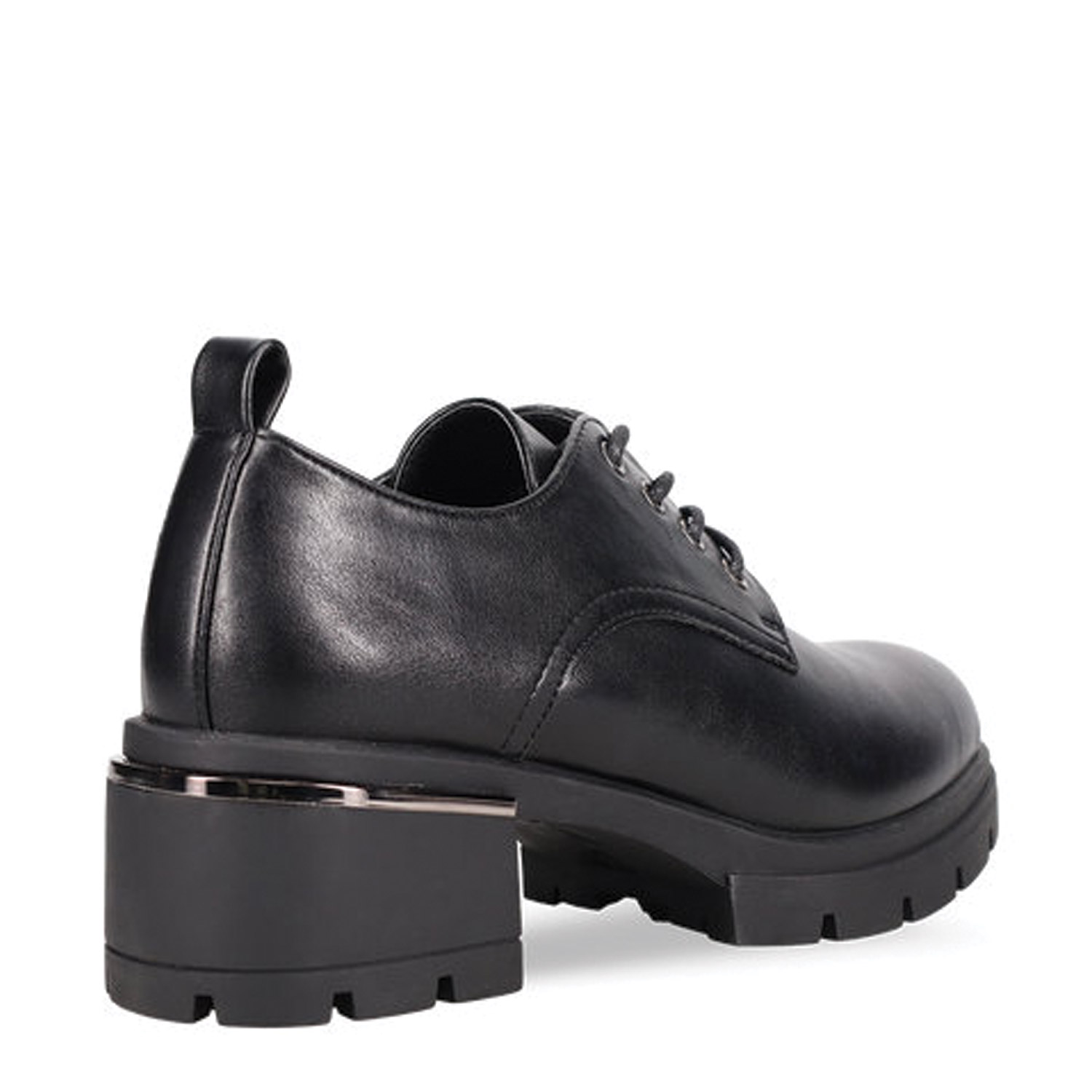 Μαύρο chunky γυναικείο Oxford παπούτσι με χρυσές λεπτομέρειες. Διαθέτει τρακτερωτή σόλα και χοντρό τακούνι. Δένει με κορδόνια.