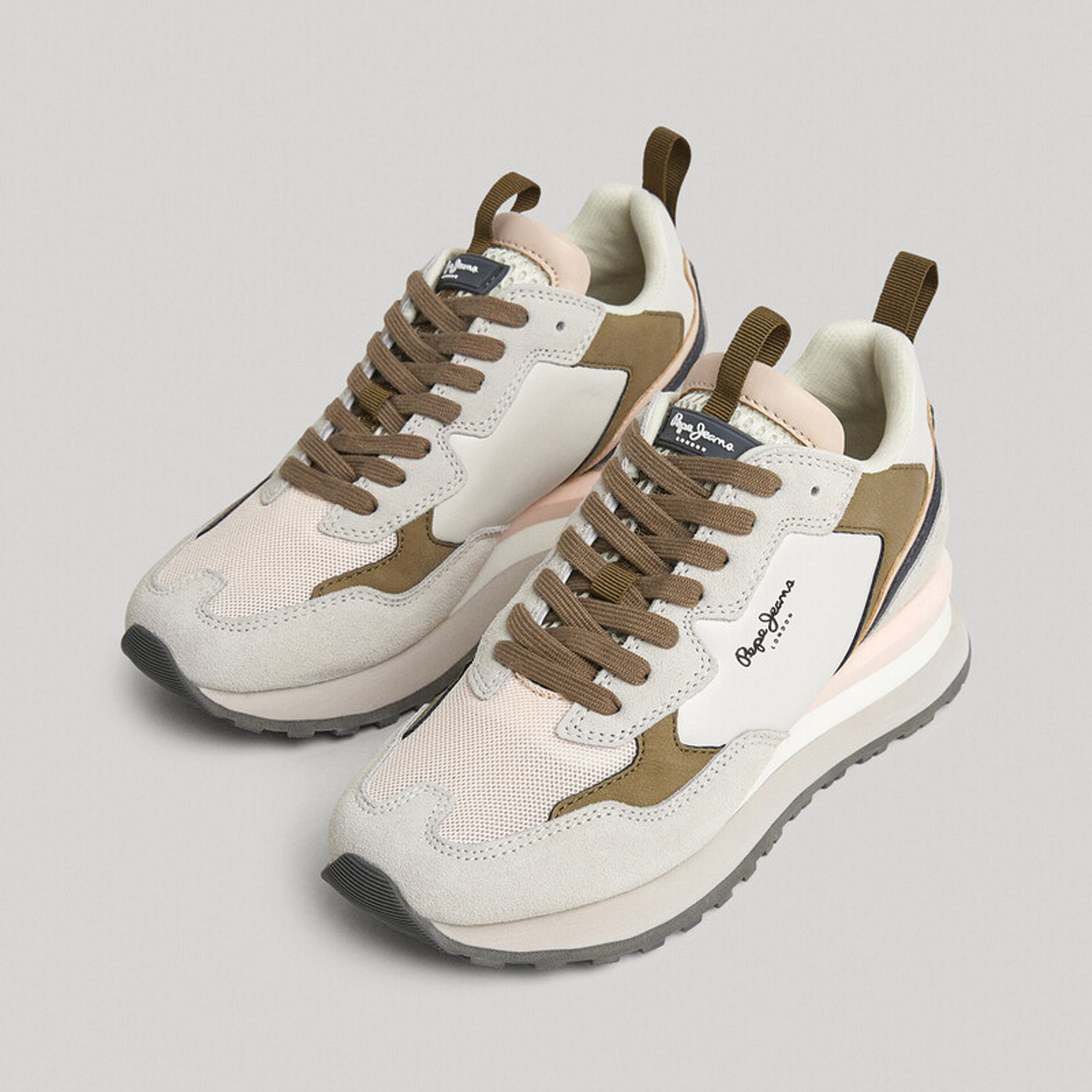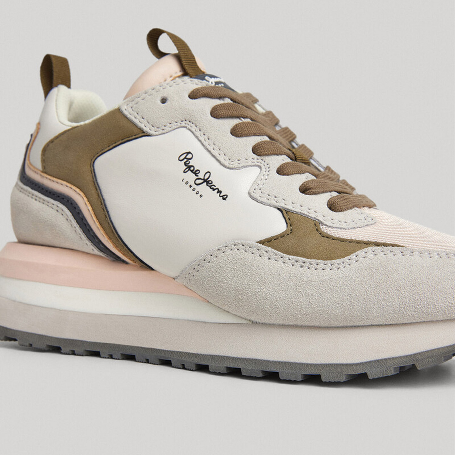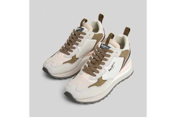 Pepe Jeans γυναικείο sneaker σε μπέζ χρώμα με δερμάτινες λεπτομέρειες και ύψος σόλας 4.5εκ
