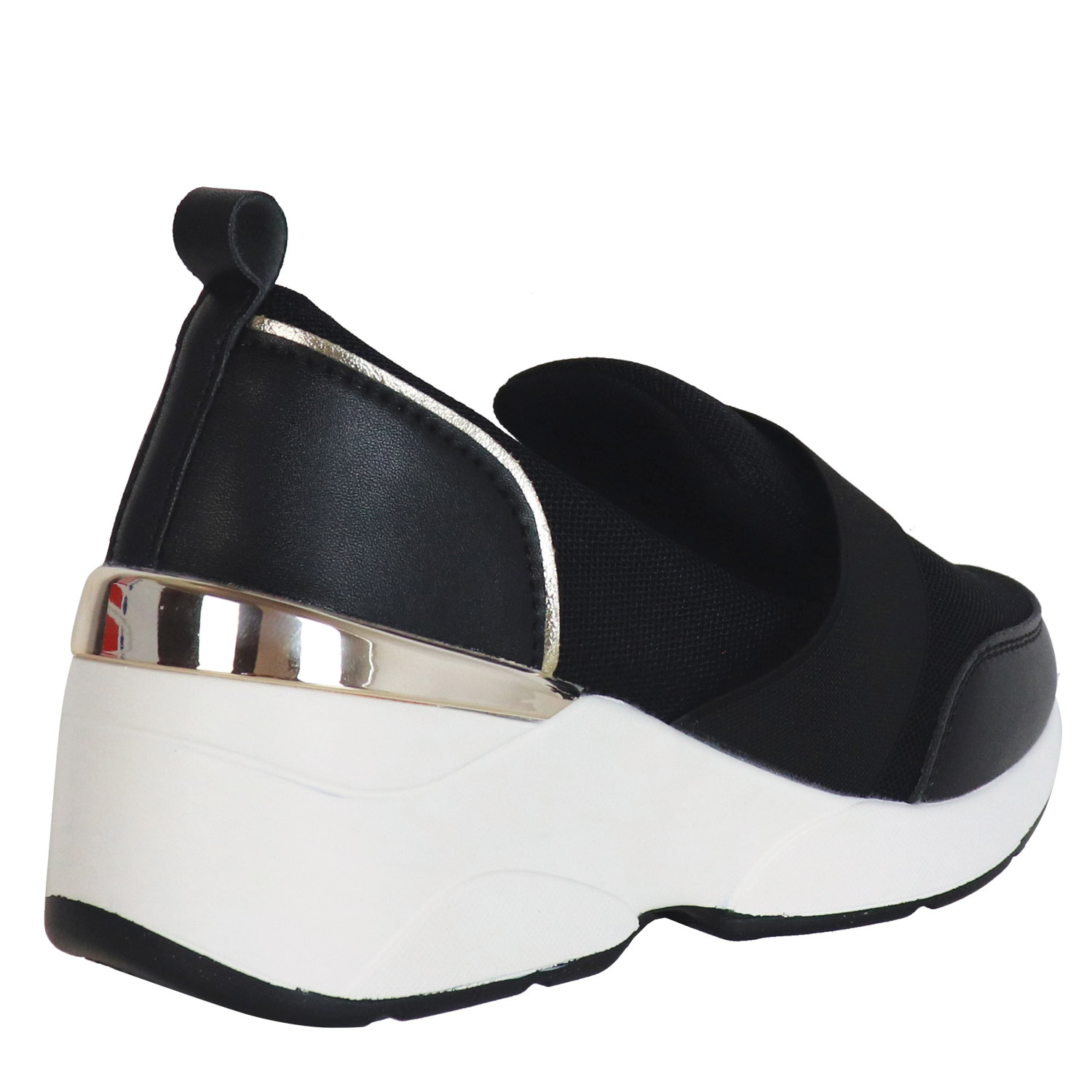 Migato γυναικείο sneaker, σε μαύρο χρώμα, κατασκευασμένο από ύφασμα. Ύψος σόλας 6.5εκ.