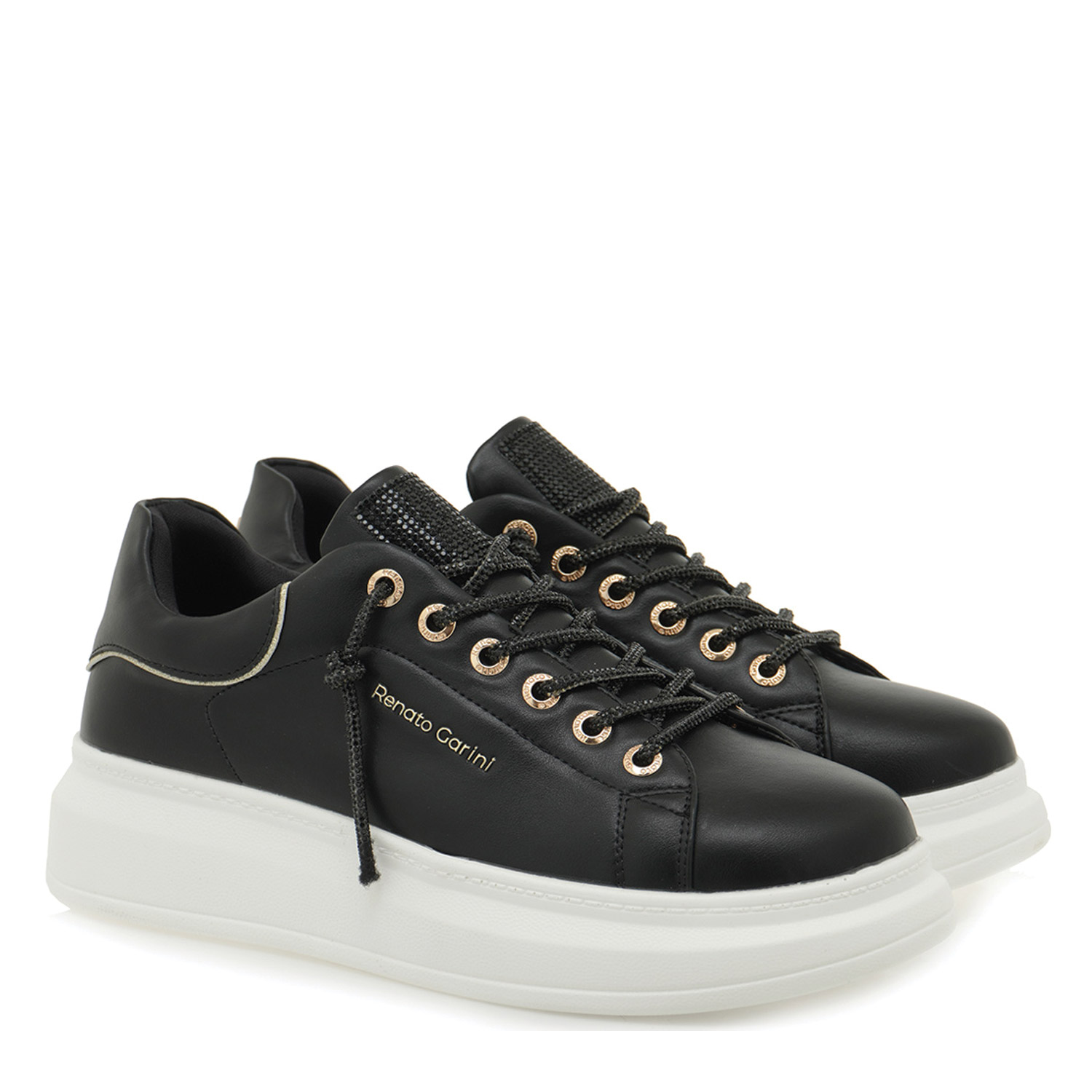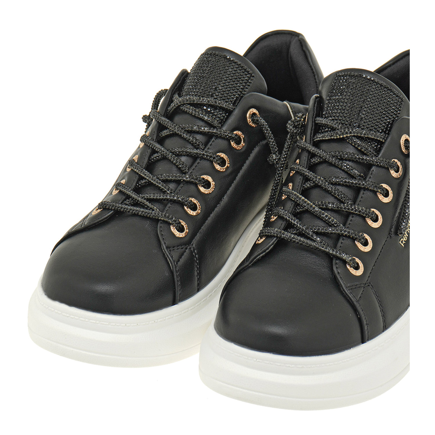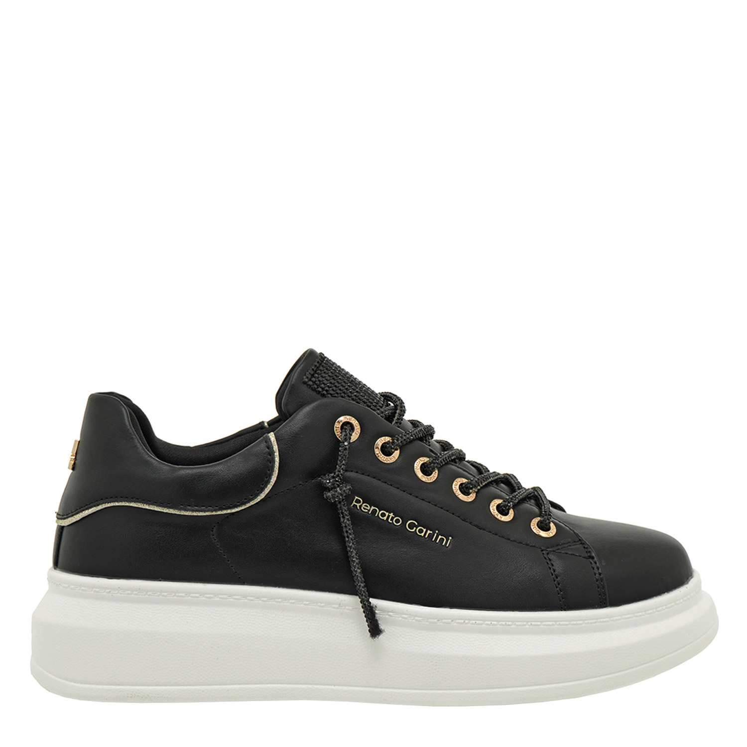 Renato Garini γυναικείο sneaker, σε μαύρο χρώμα, κατασκευασμένο από οικολογικό δέρμα. Ύψος σόλας 4εκ.