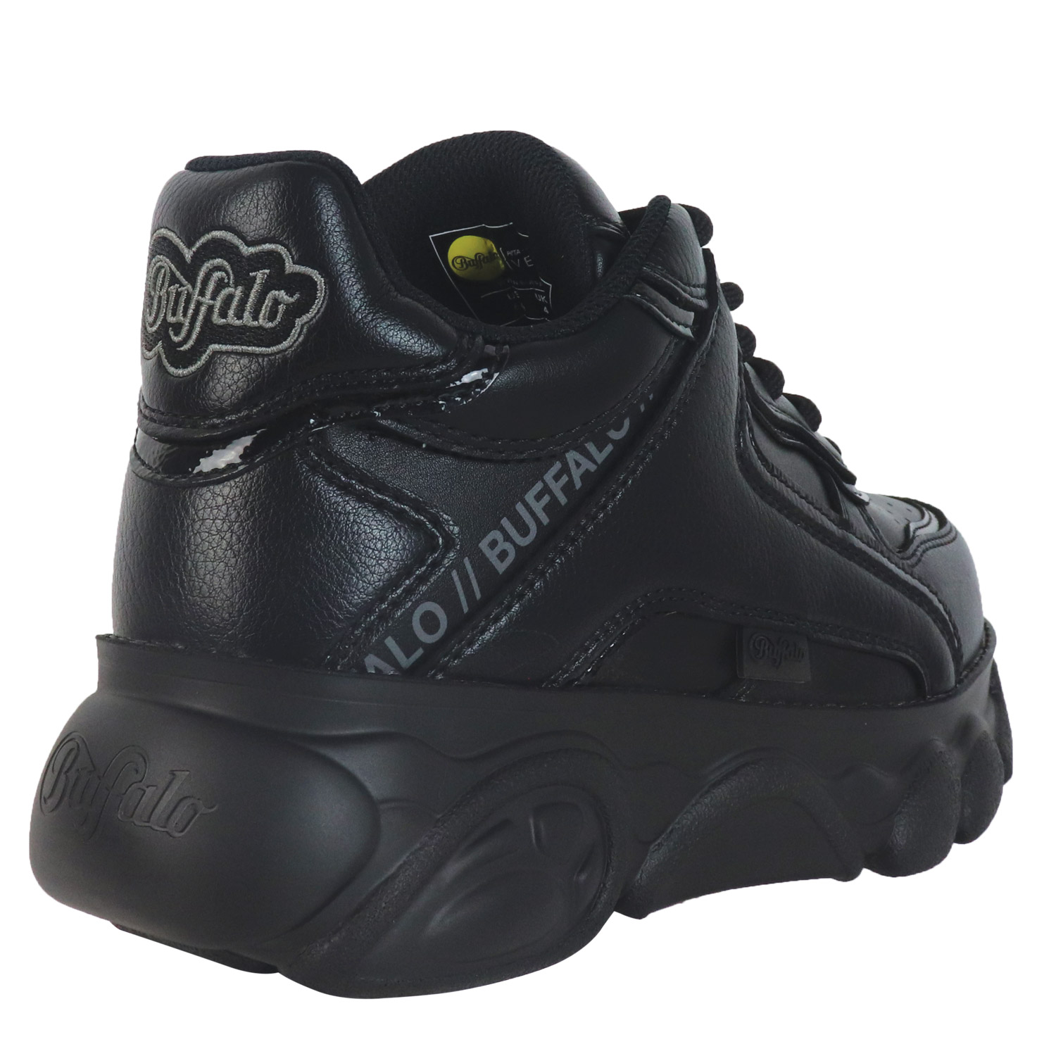 Buffalo γυναικείο sneaker, σε μαύρο χρώμα, κατασκευασμένο από οικολογικό δέρμα. Ύψος σόλας 5εκ.