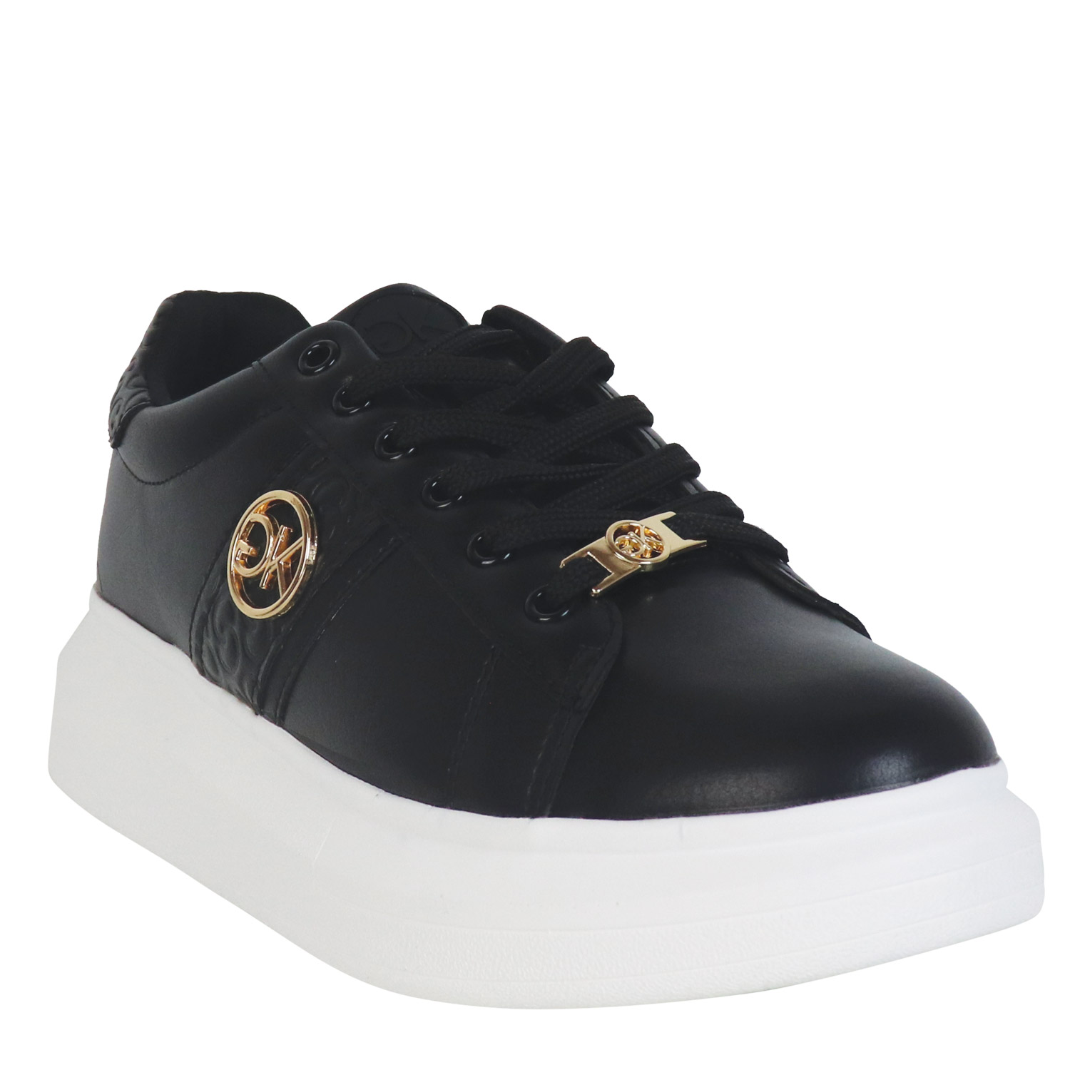 Gianna Kazakou γυναικείο sneaker, σε μαύρο χρώμα, κατασκευασμένο από οικολογικό δέρμα. Ύψος σόλας 4.5εκ.