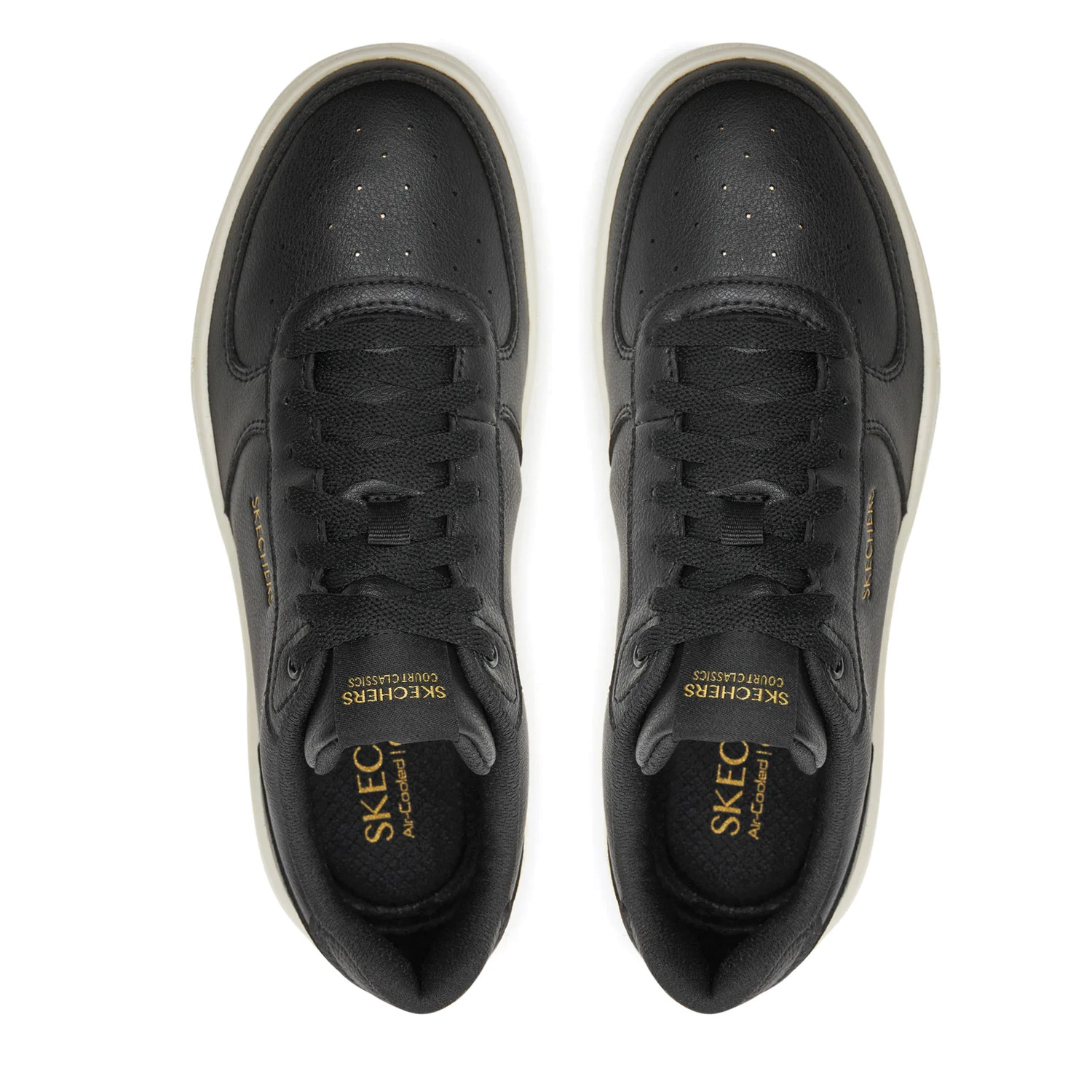 Skechers γυναικείο sneaker, σε μαύρο χρώμα, κατασκευασμένο από οικολογικό δέρμα, με ανατομικό πάτο. Ύψος σόλας 4εκ.