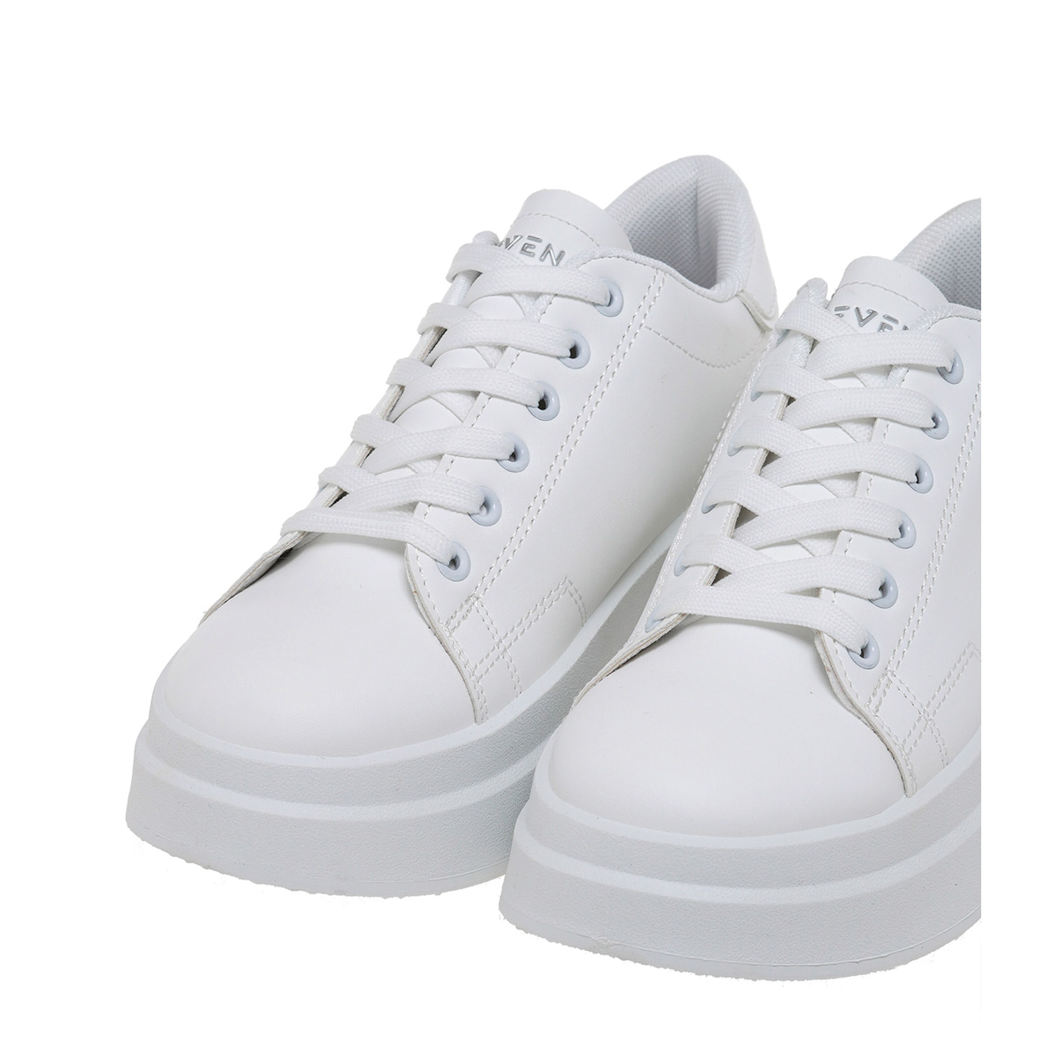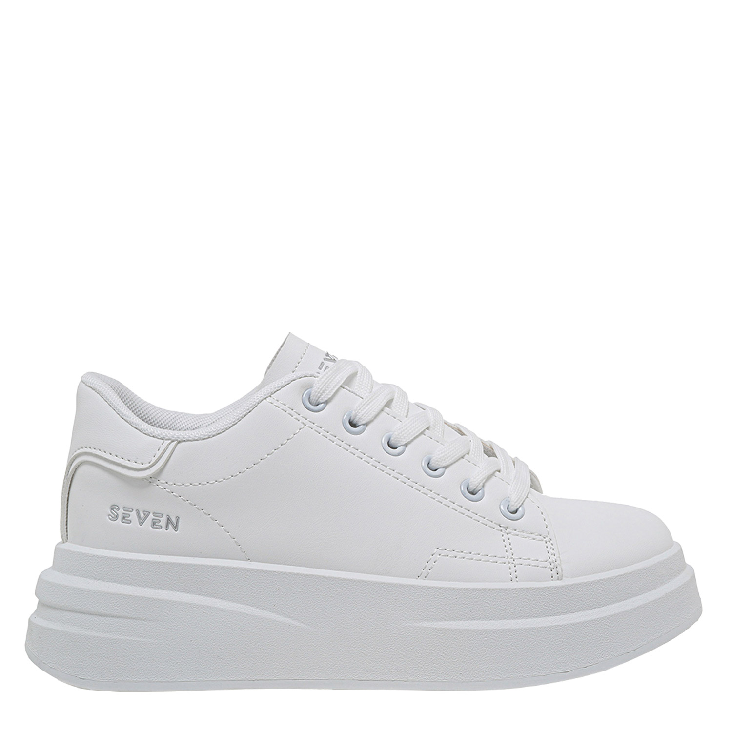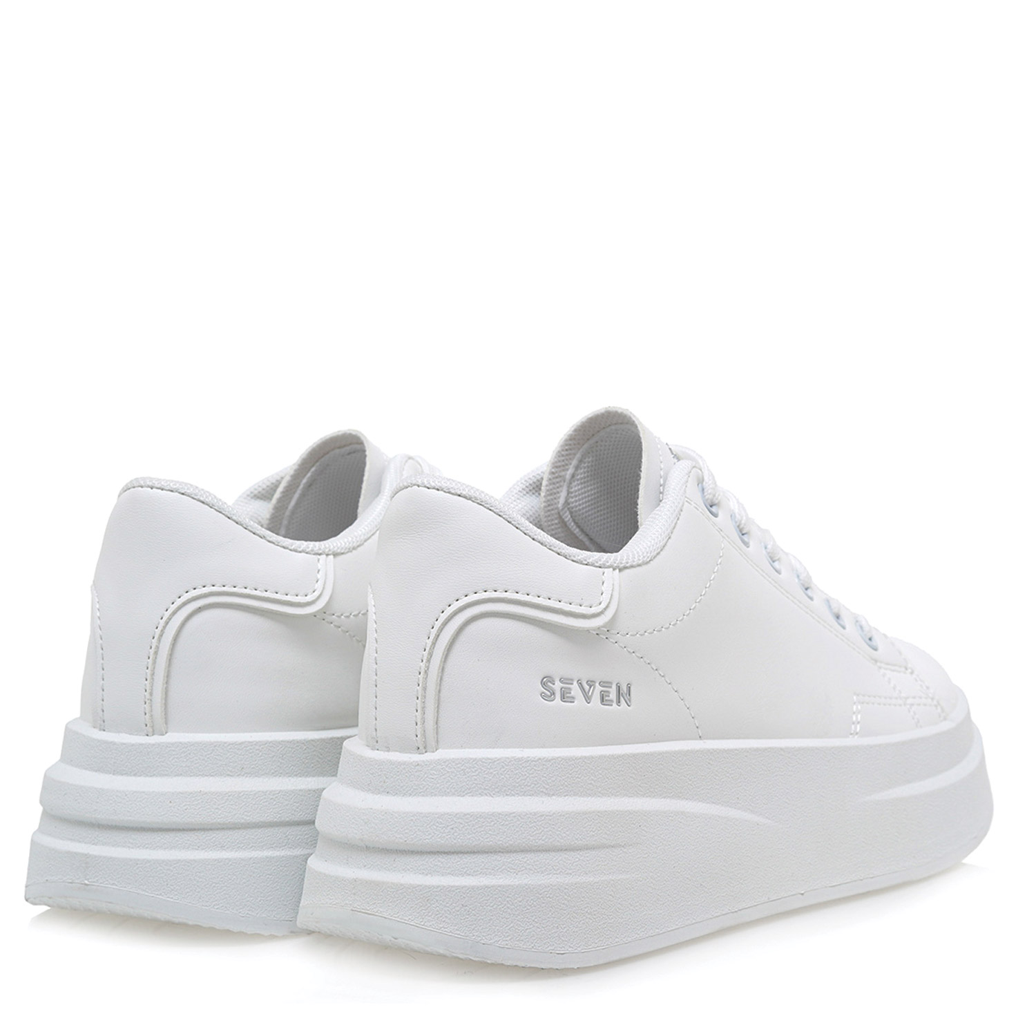 Seven γυναικείο sneaker, σε λευκό χρώμα, κατασκευασμένο από οικολογικό δέρμα. Ύψος σόλας 4.5εκ.