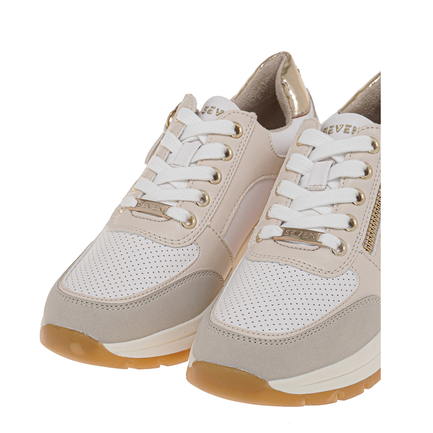 Seven γυναικείο sneaker, σε λευκό-πλατίνα, κατασκευασμένο από οικολογικό δέρμα. Ύψος σόλας 6εκ.
