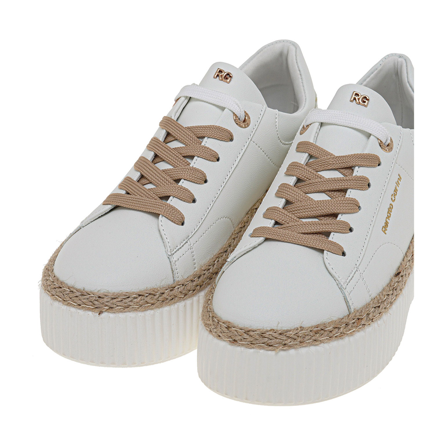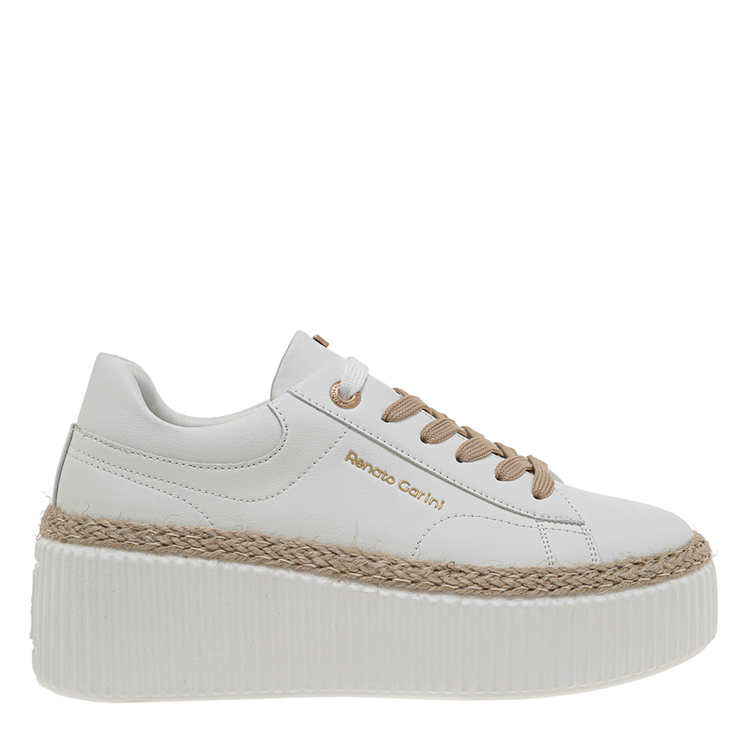 Renato Garini γυναικείο sneaker, σε λευκό χρώμα, κατασκευασμένο από οικολογικό δέρμα. Ύψος σόλας 6.5εκ.
