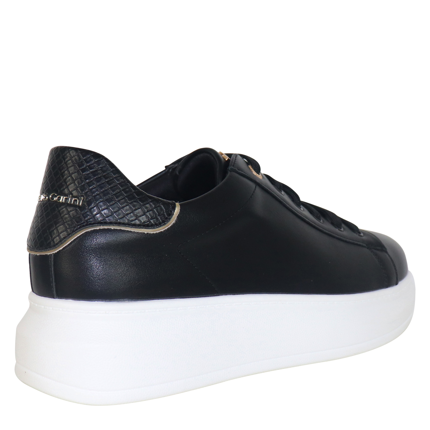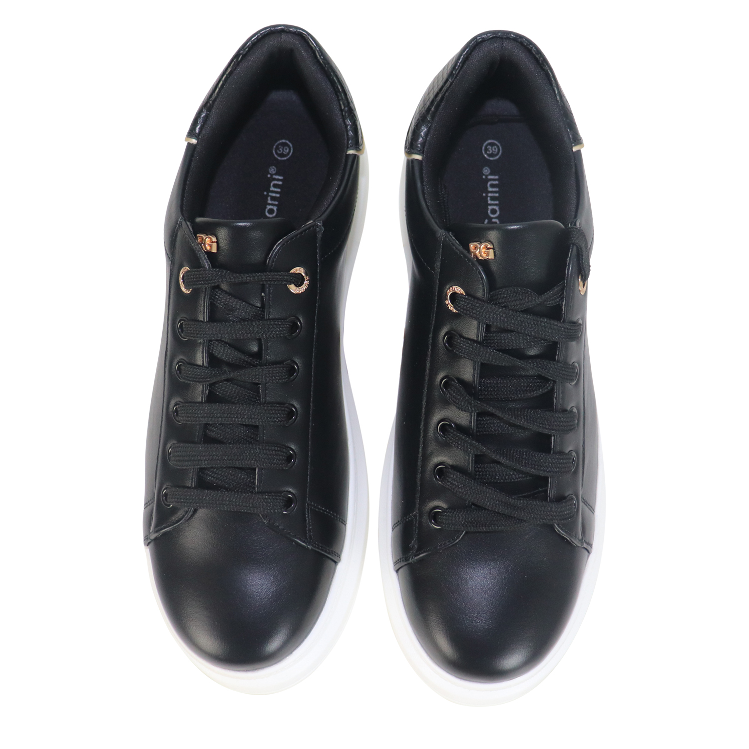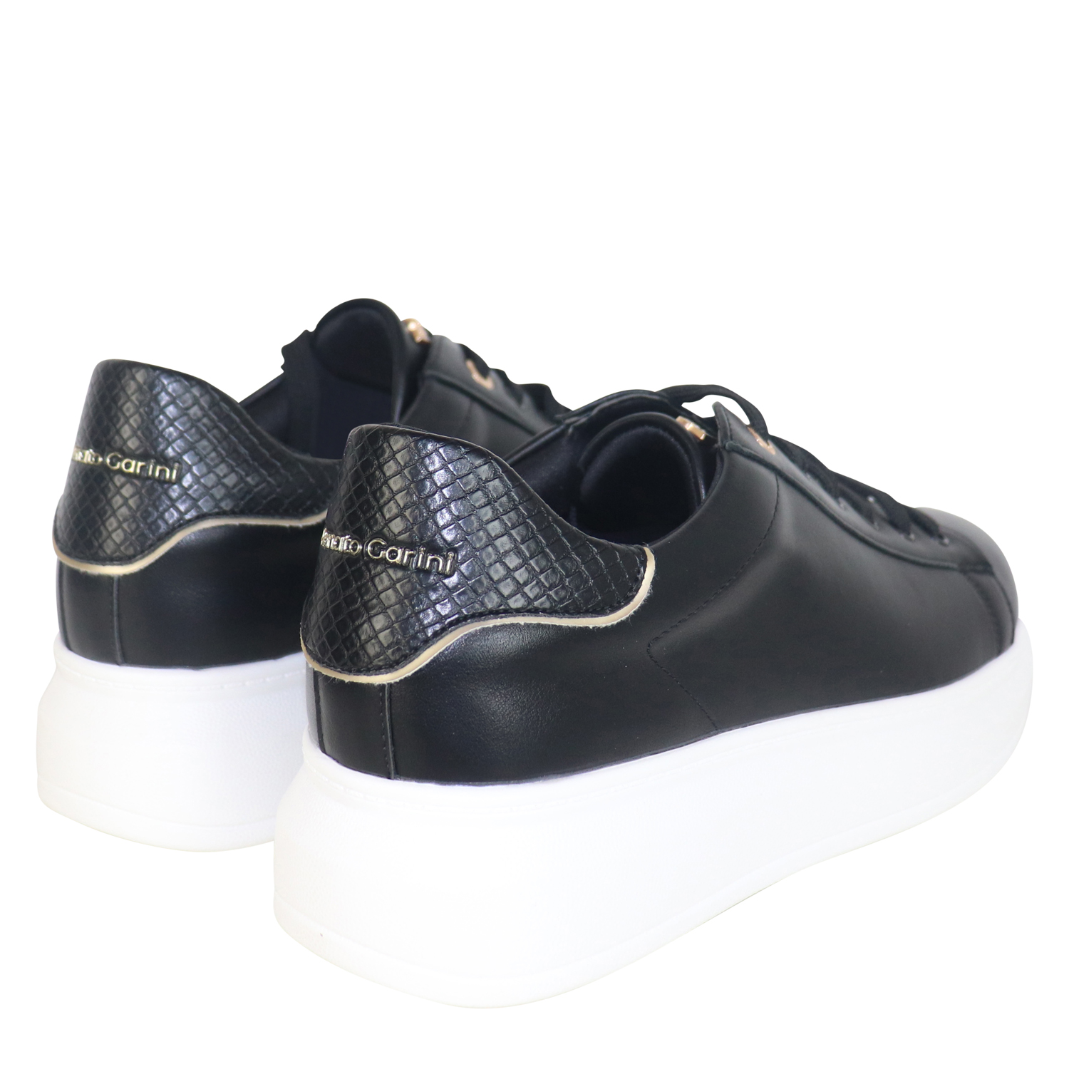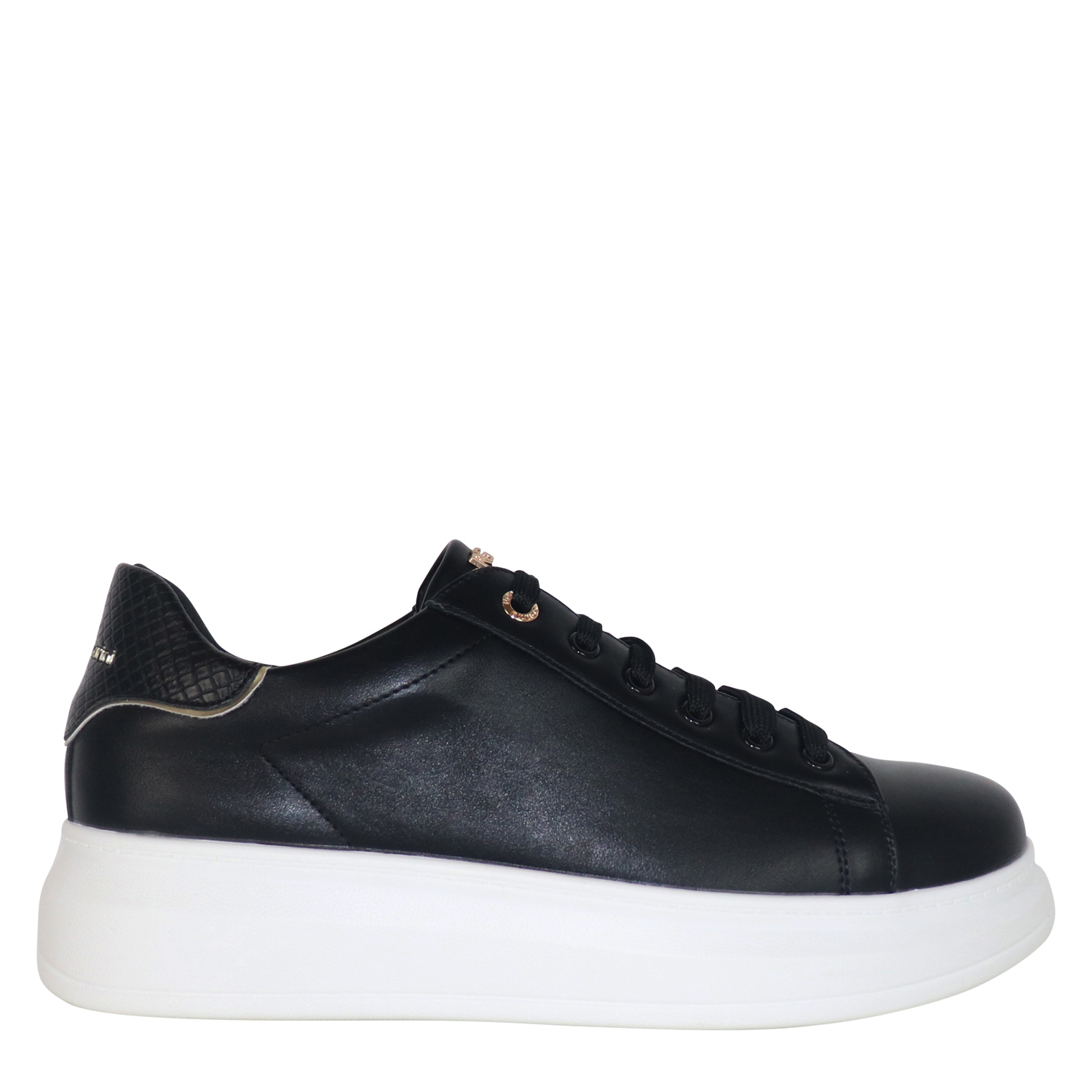 Renato Garini γυναικείο sneaker, σε μαύρο χρώμα, κατασκευασμένο από οικολογικό δέρμα. Ύψος σόλας 4εκ.