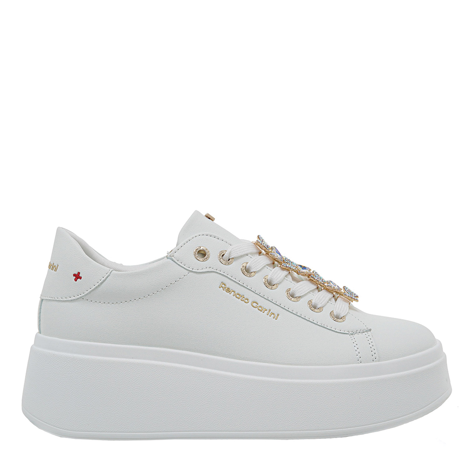 Renato Garini γυναικείο sneaker, σε λευκό χρώμα, κατασκευασμένο από οικολογικό δέρμα. Ύψος σόλας 5.5εκ.