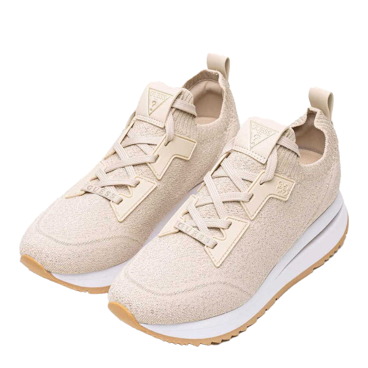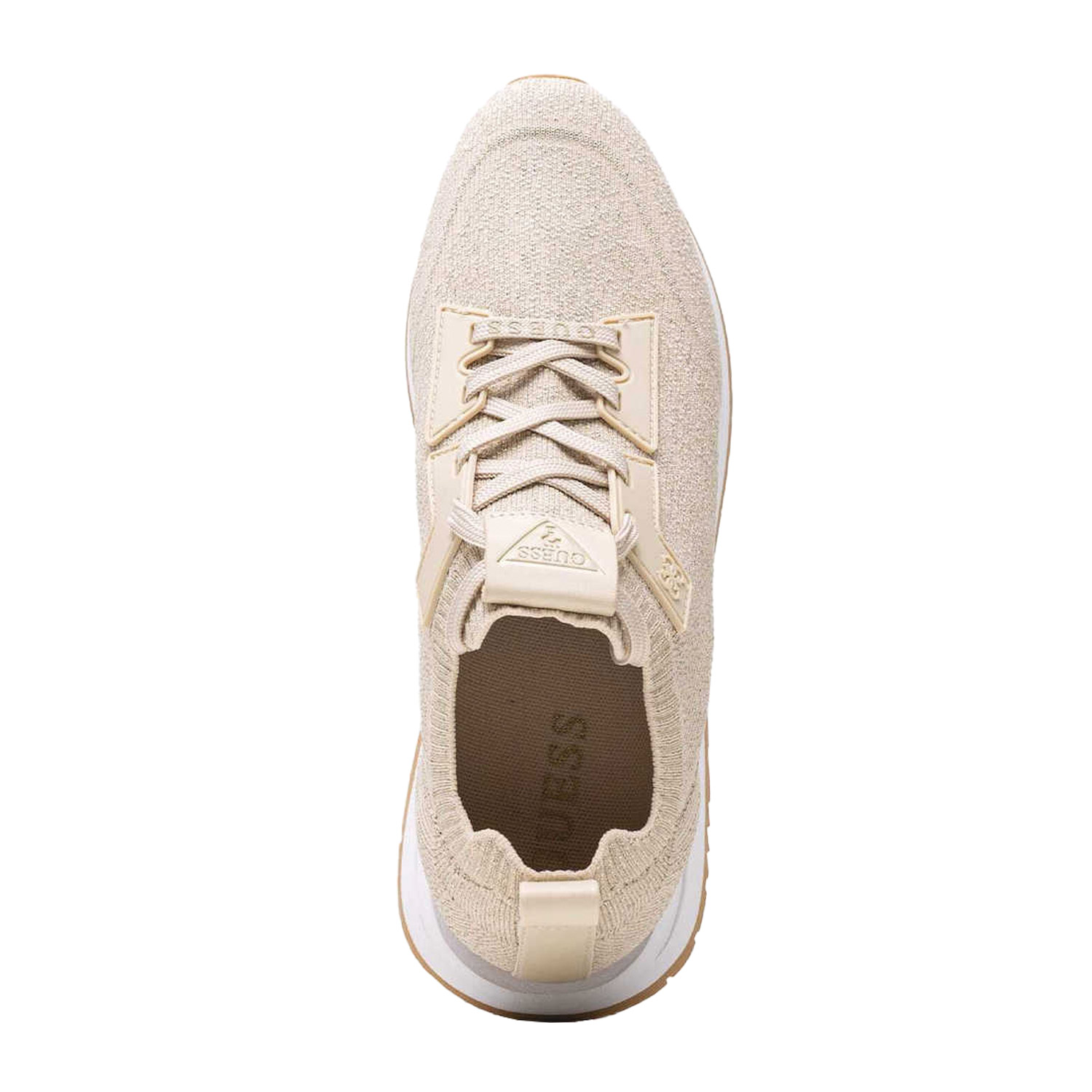 Guess γυναικείο sneaker, σε μπεζ χρώμα, κατασκευασμένο από ύφασμα. Ύψος σόλας 3εκ.