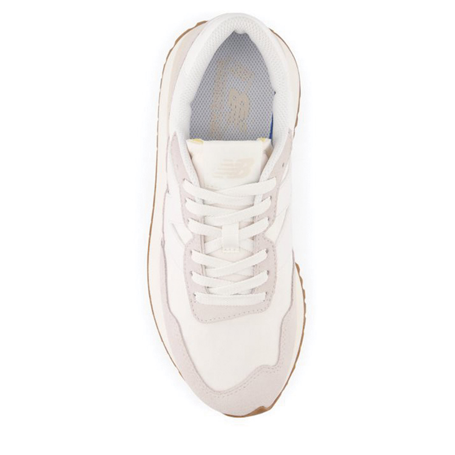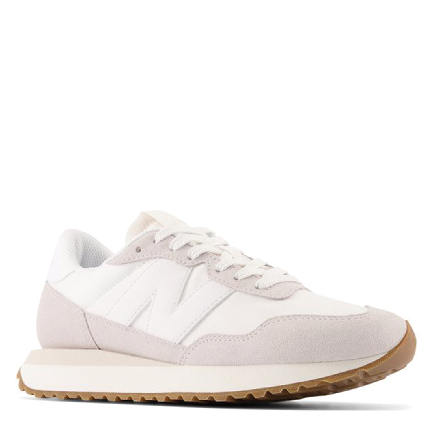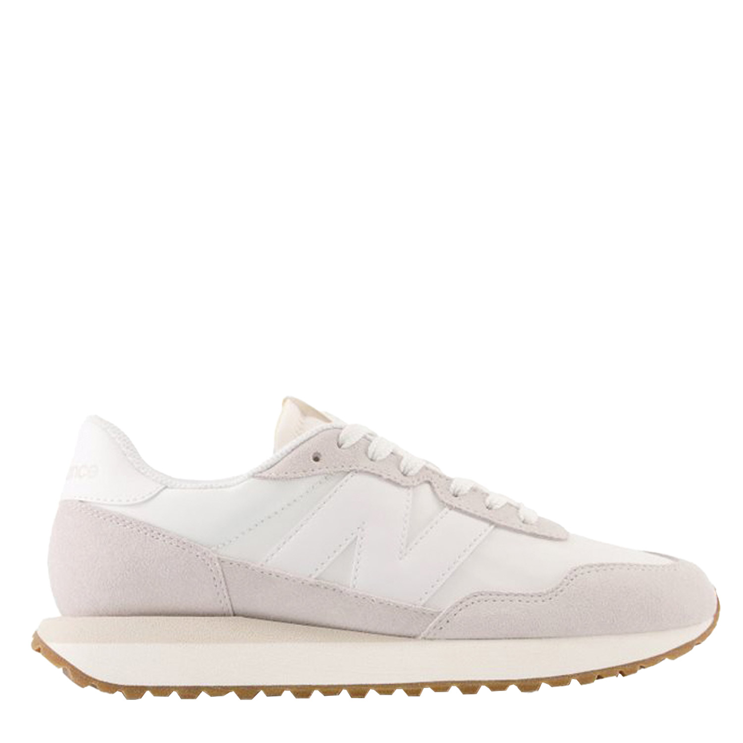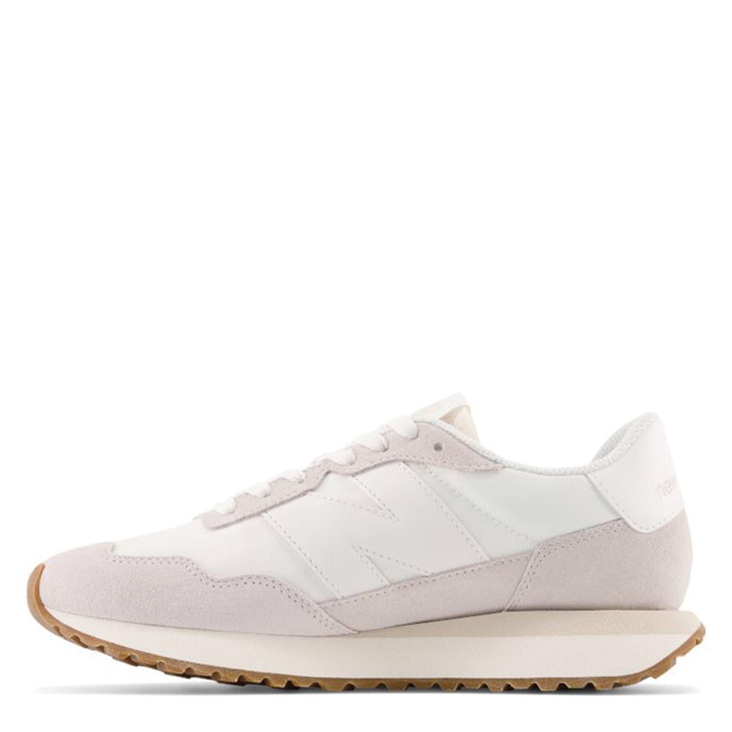 New Balance 237 γυναικείο sneaker, σε λευκό-γκρι χρώμα, κατασκευασμένο από ύφασμα και καστόρι. Ύψος σόλας 2.5εκ.